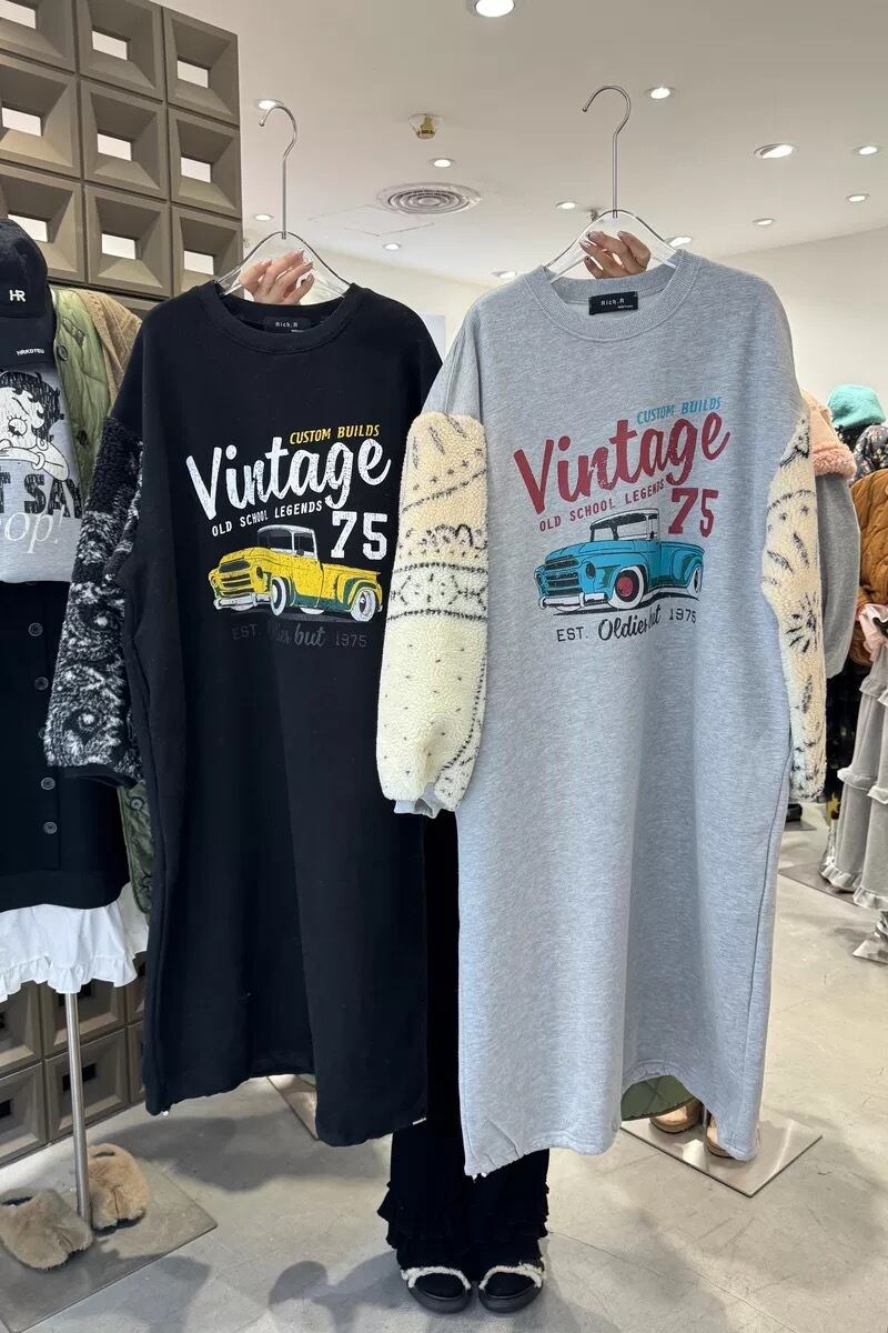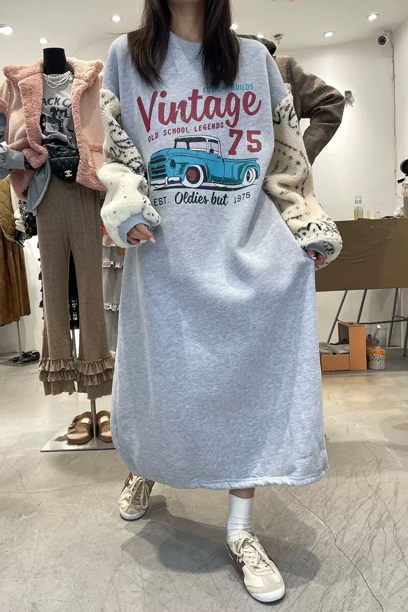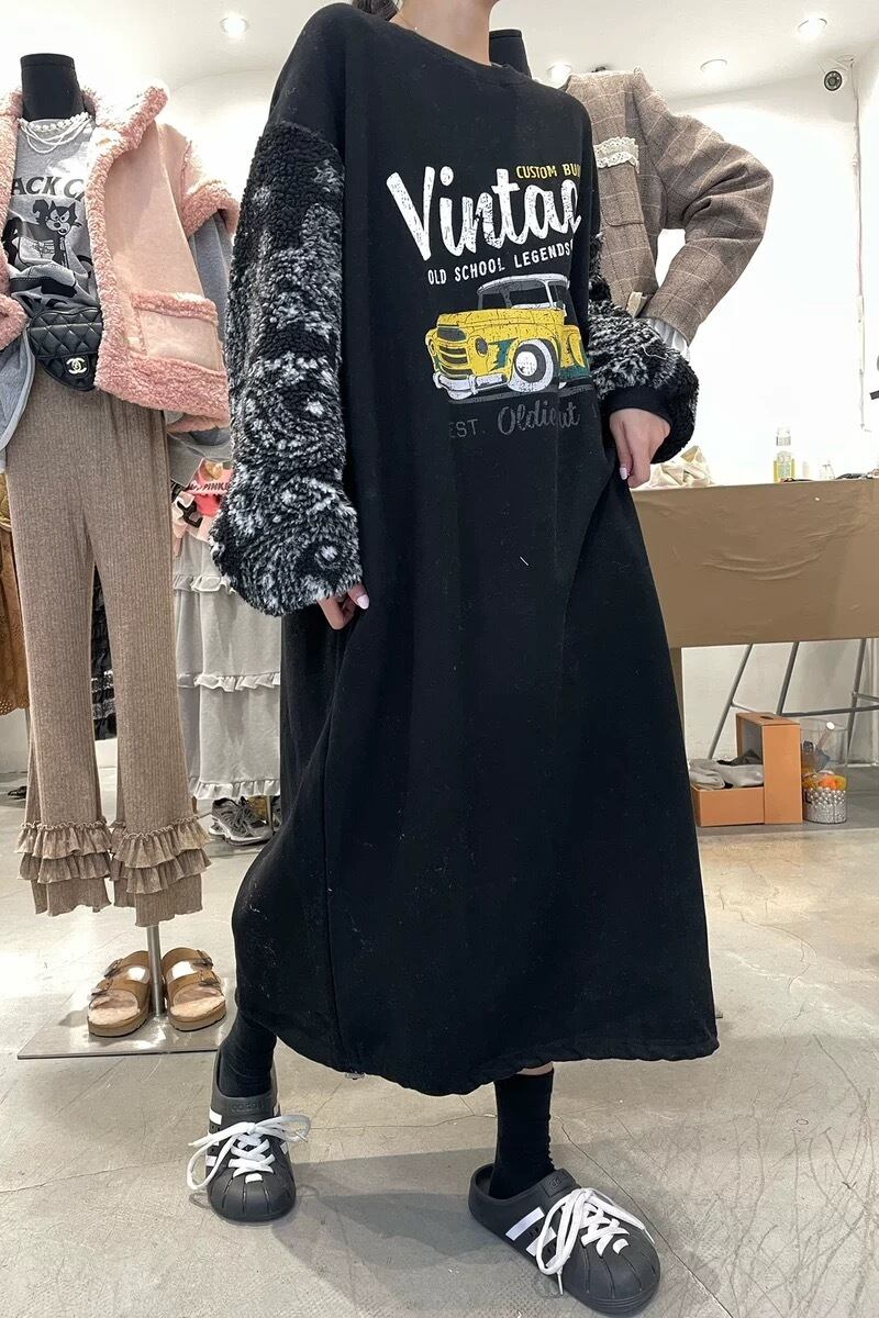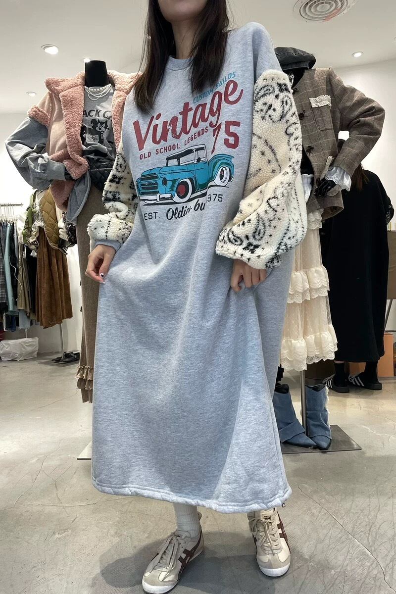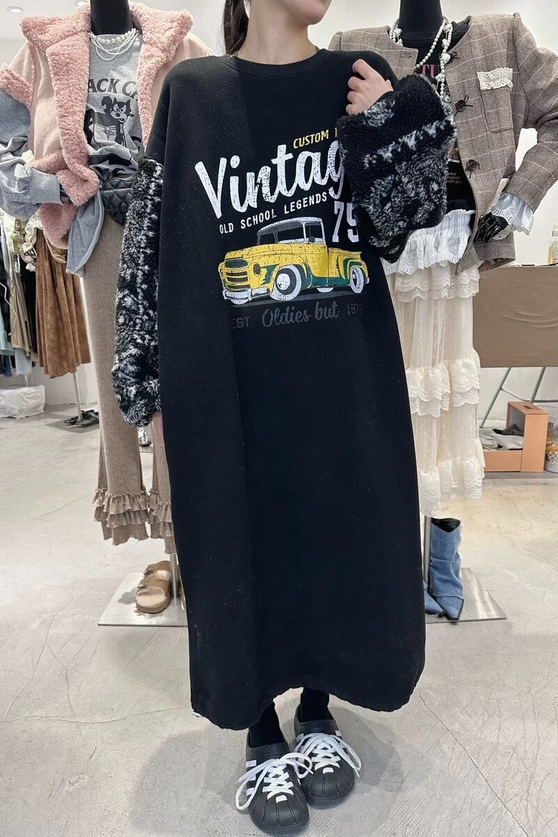 トレーナー スウェット ワンピース 車 グレー ネイビー 柄 カジュアル トレーナー