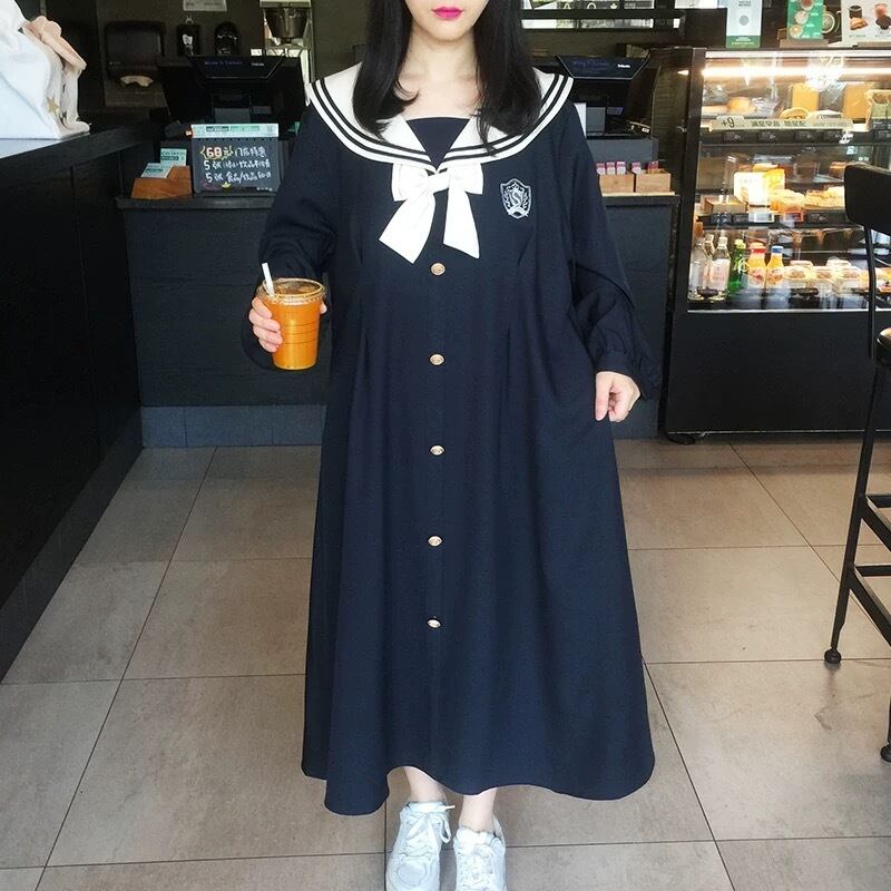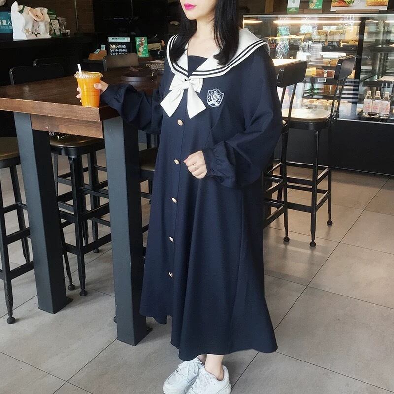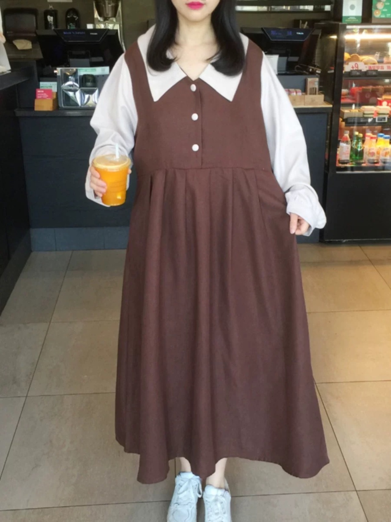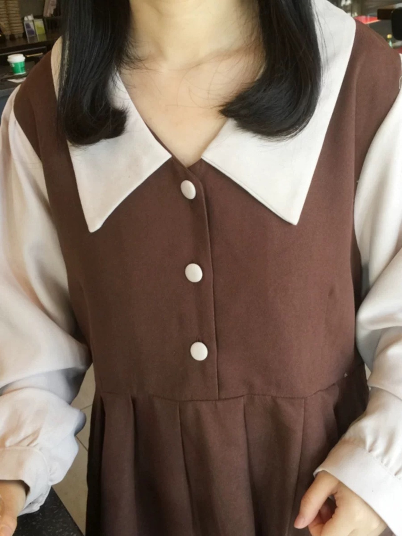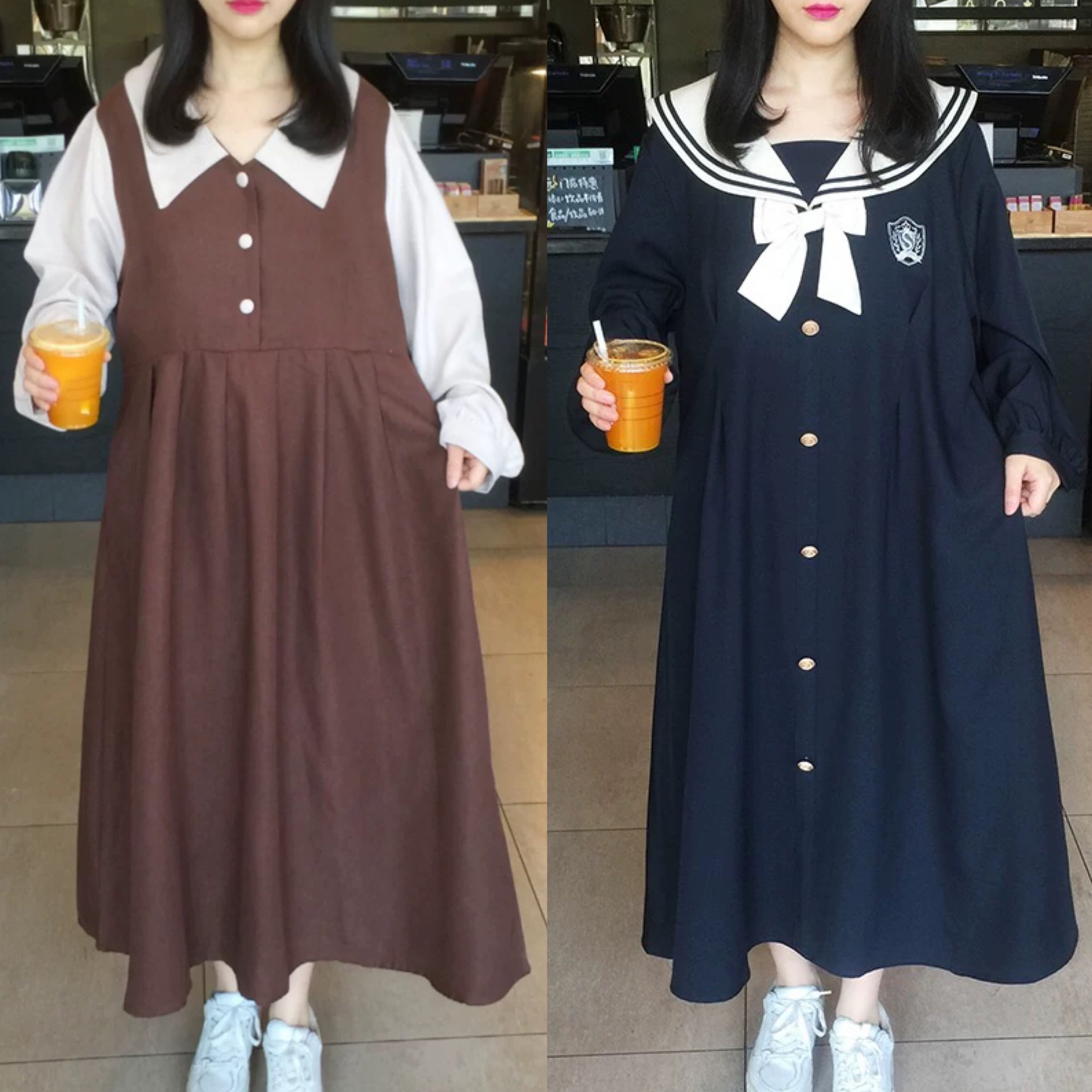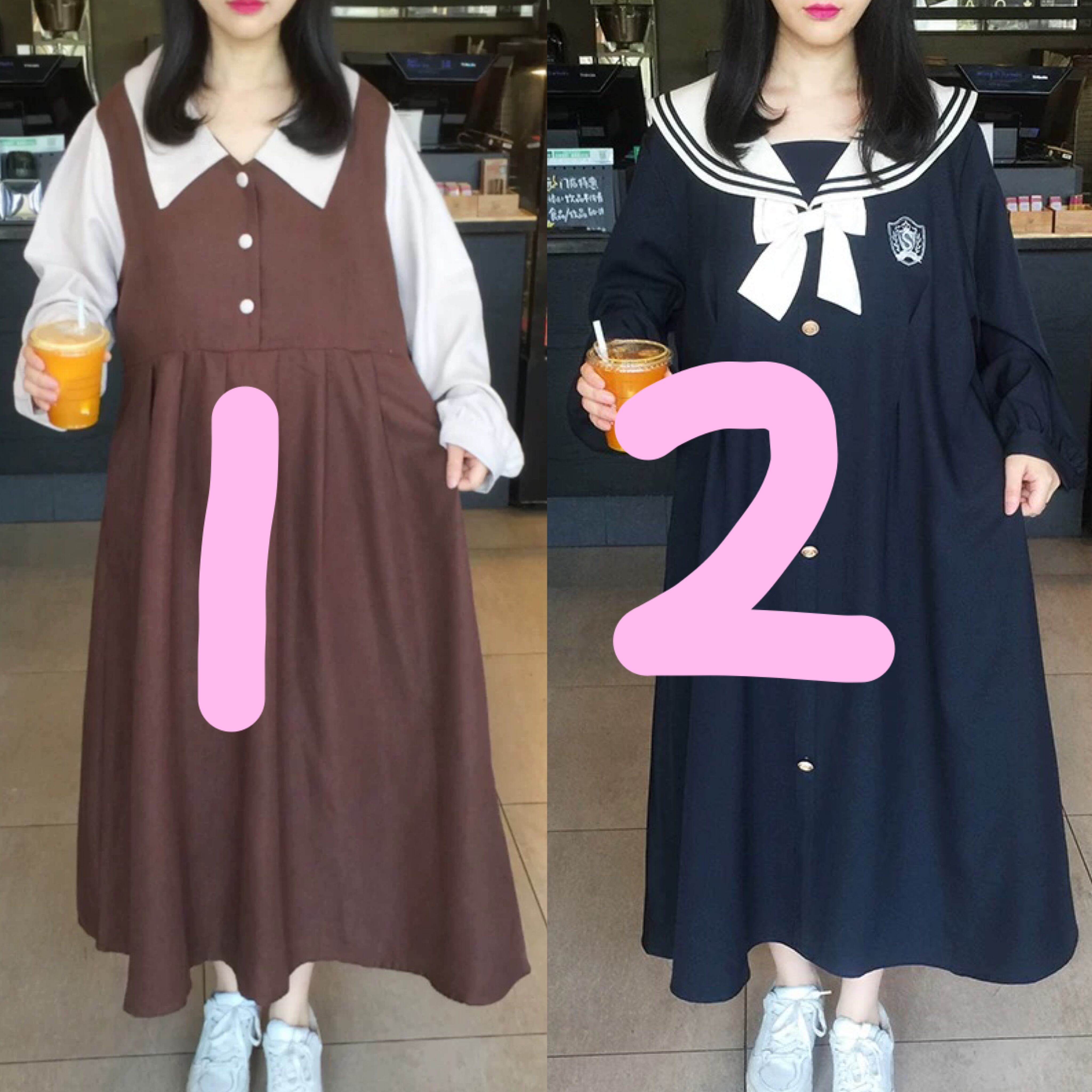 ワンピース カジュアル オーバーサイズ ゆったり 茶色 ネイビー スクール 制服 ブラウス XL