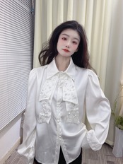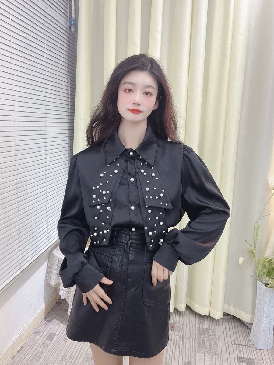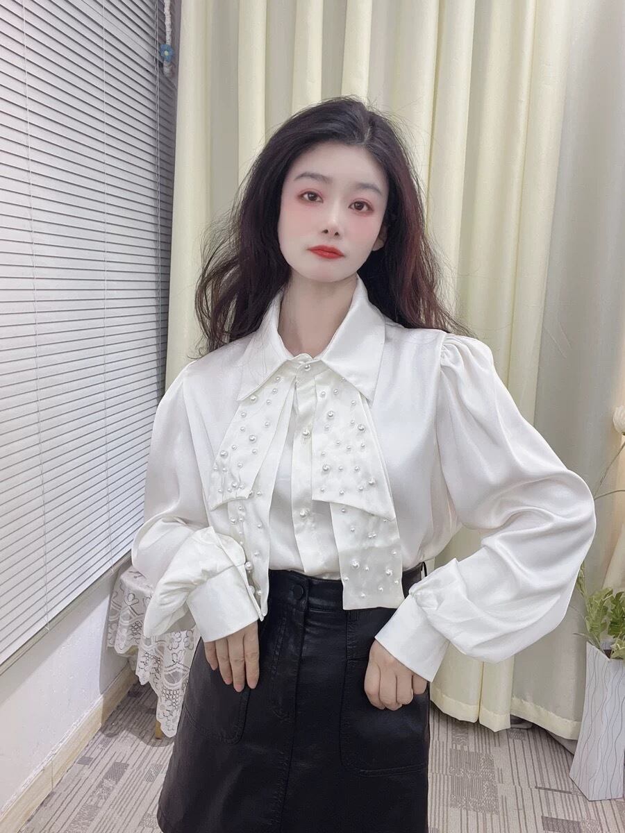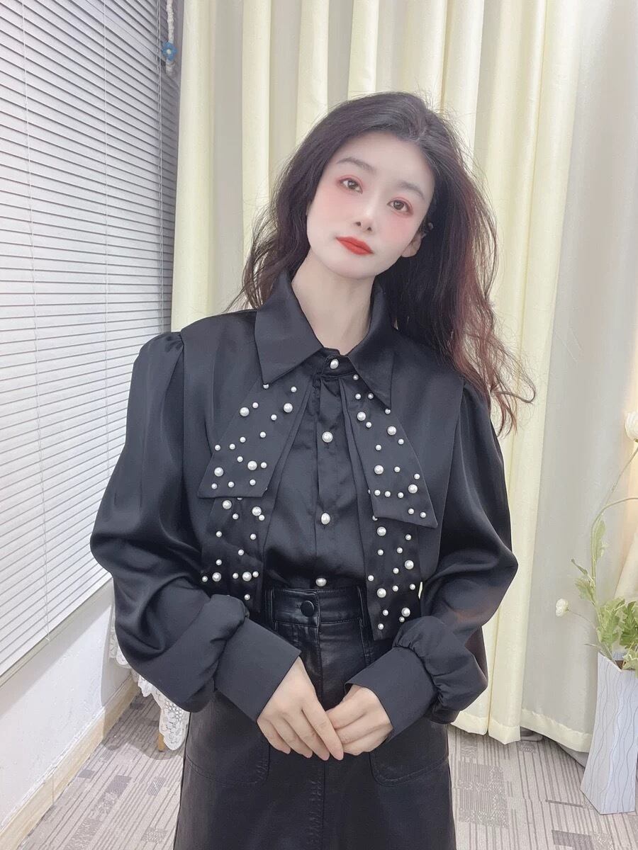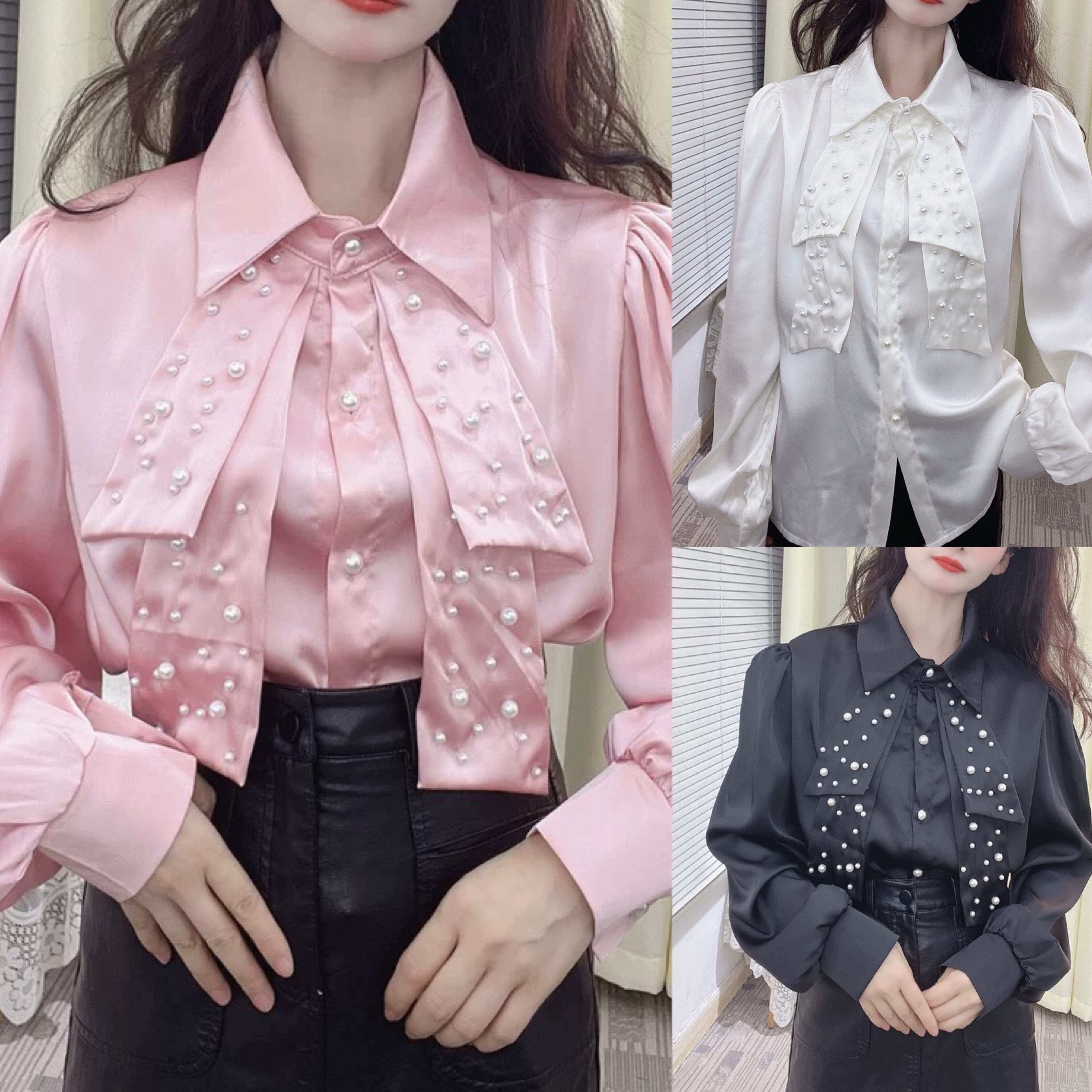 ブラウス リボン 白 ピンク 黒 パール トップズ エレガント
