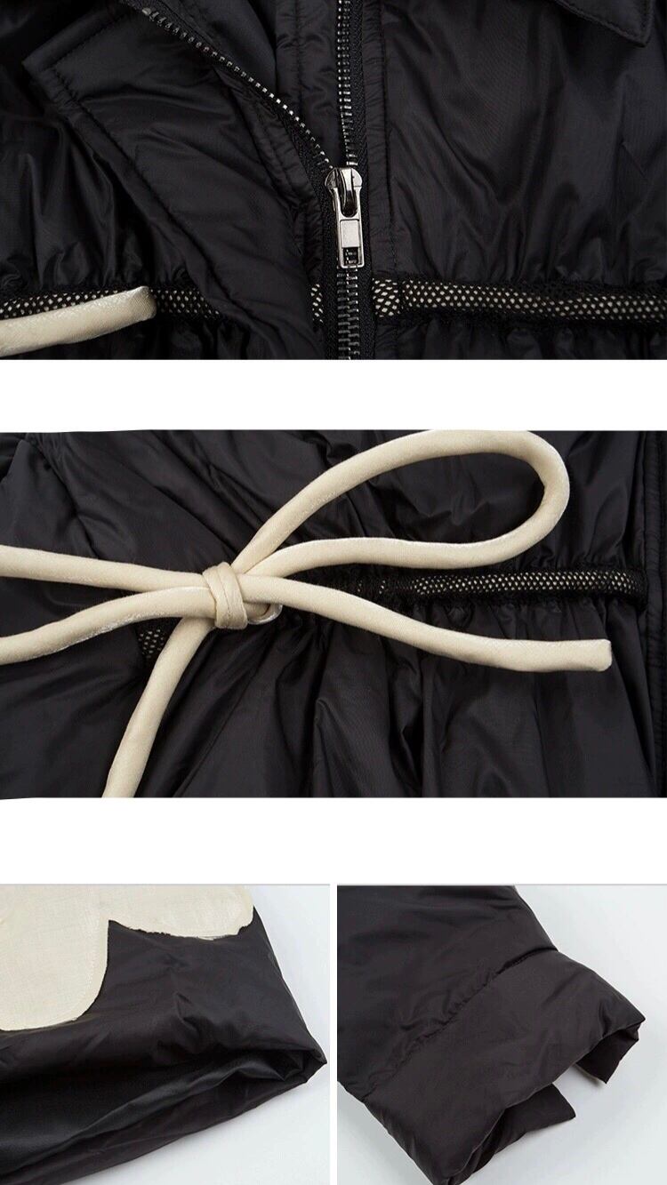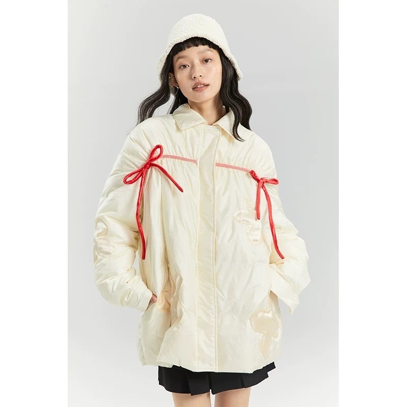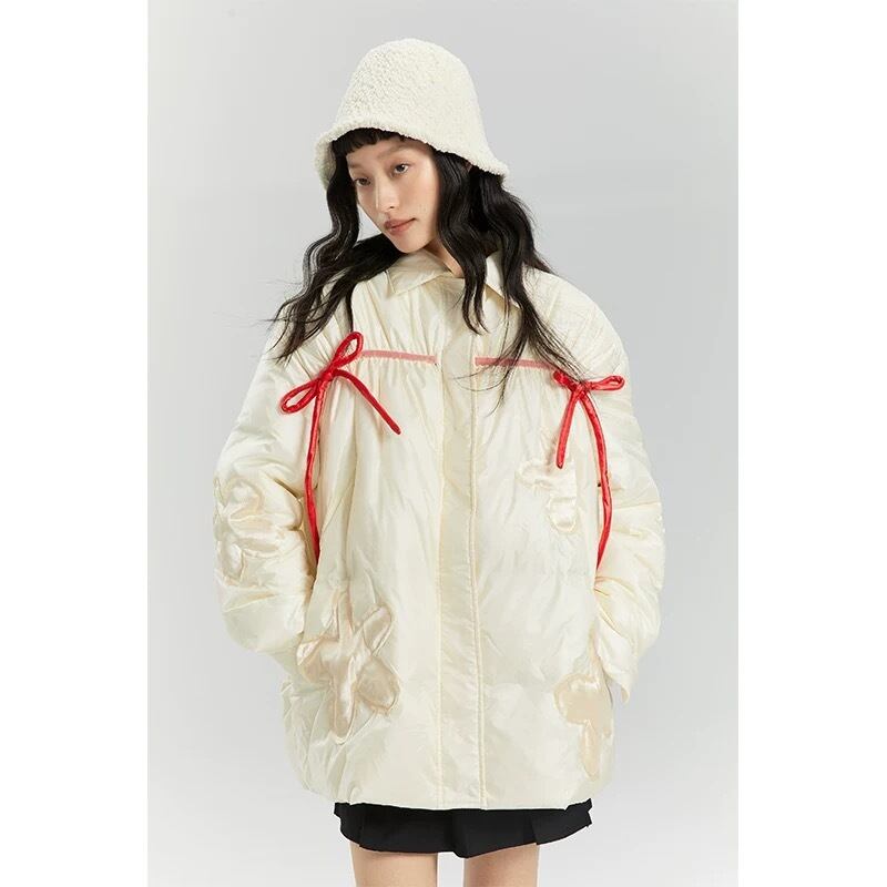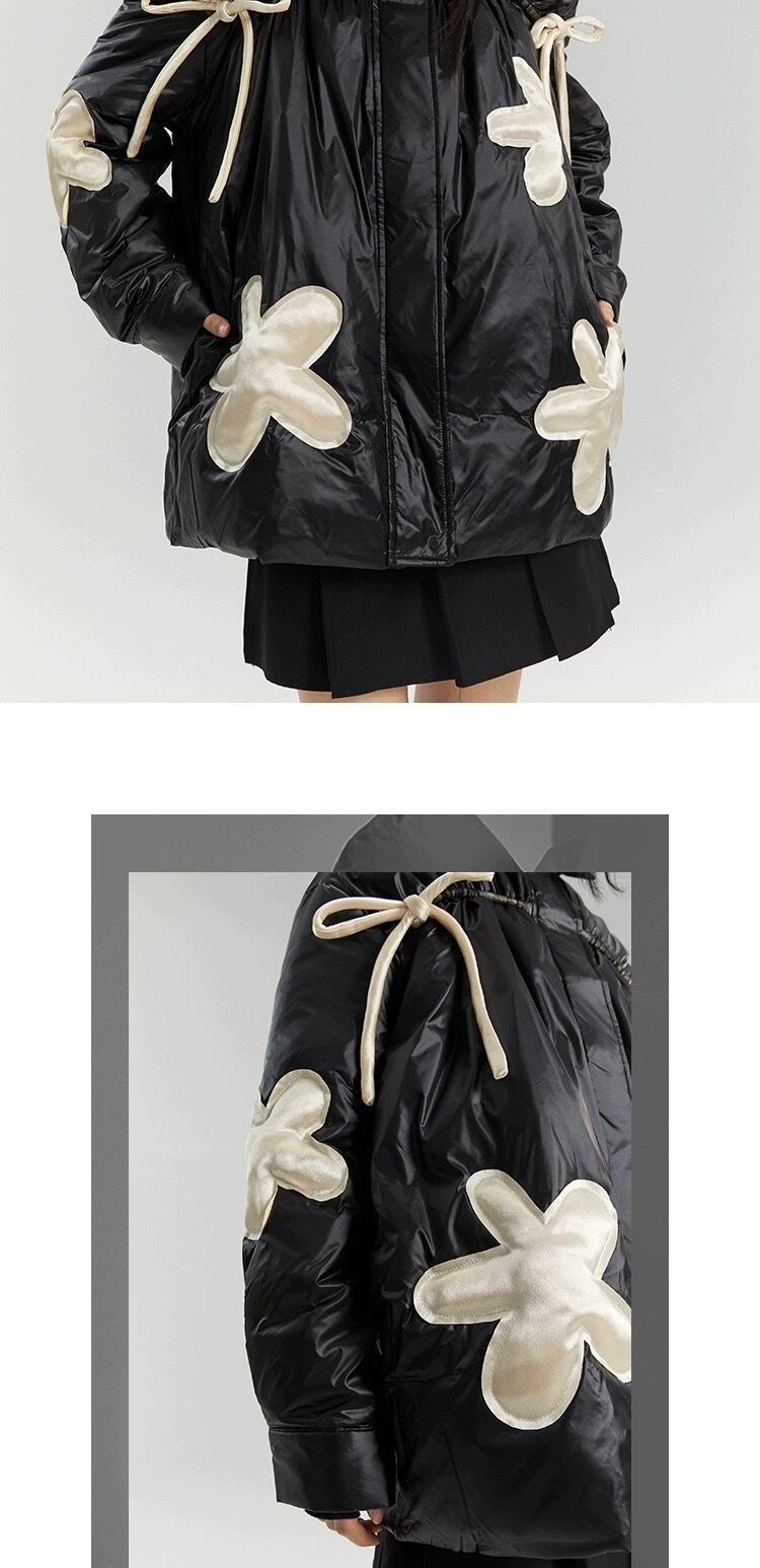 アウター ジャケット ダウン 黒 白 フラワー ダウンコート アウター ジャケット リボン
