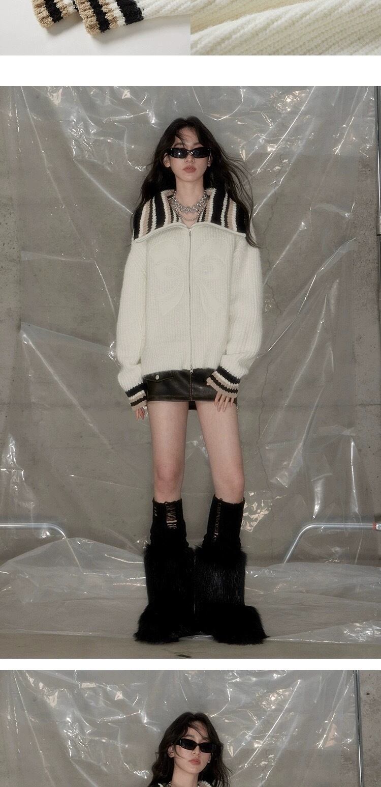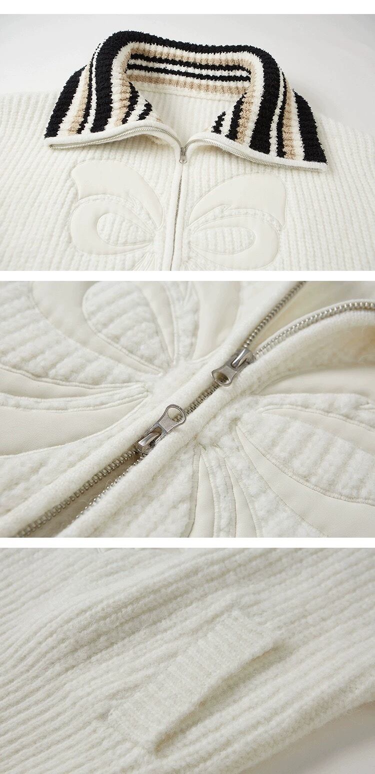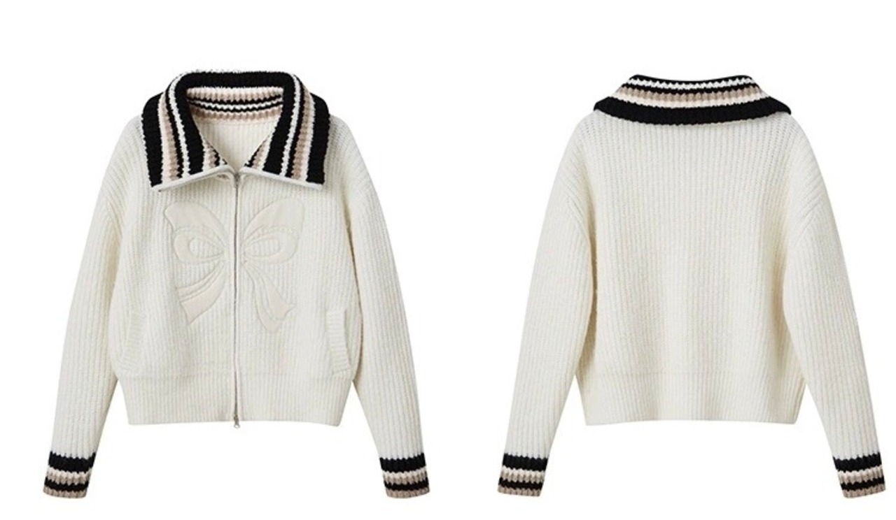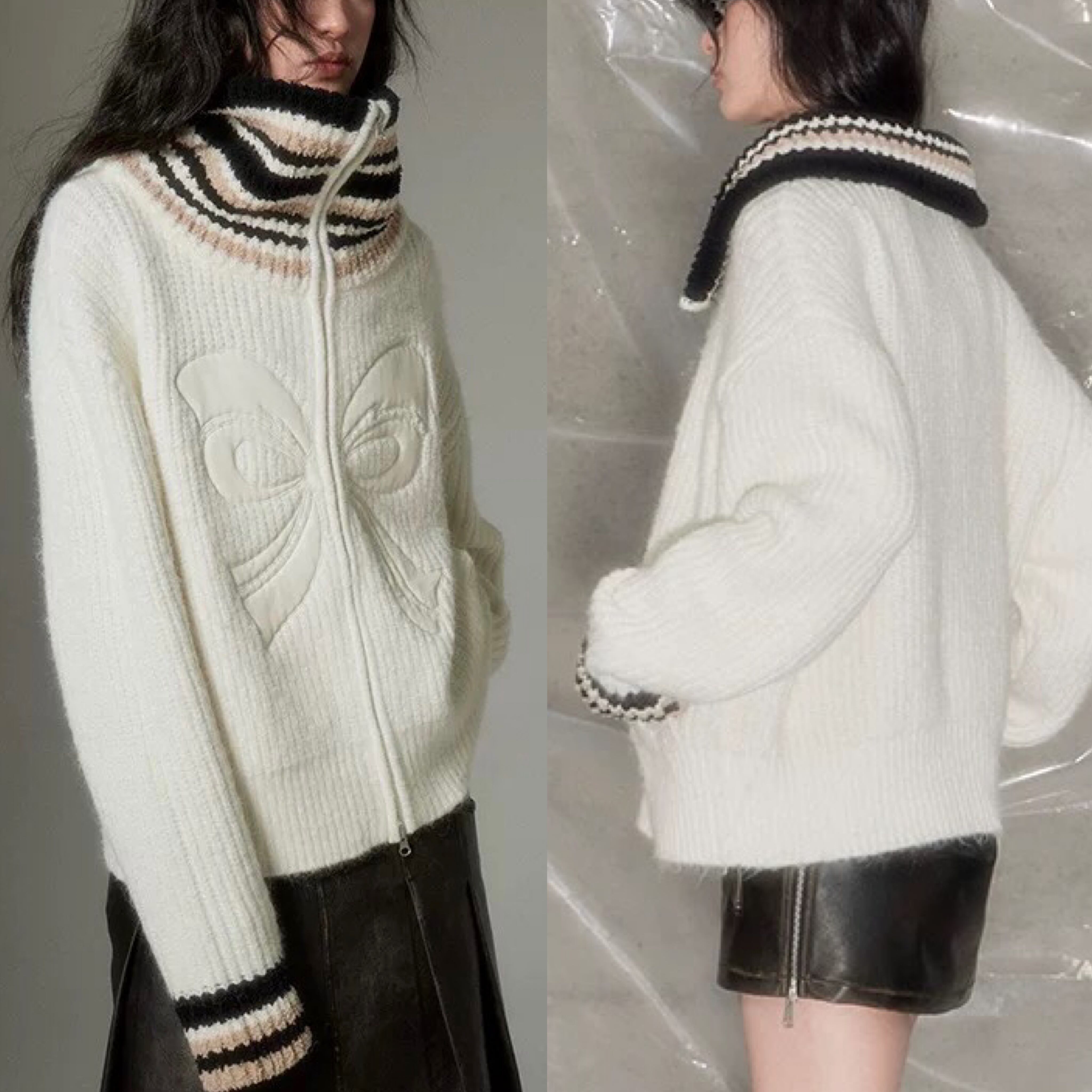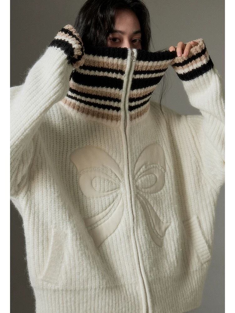 ニット リボン 白 カーディガン ジャケット アウター コート ハイネック セーター