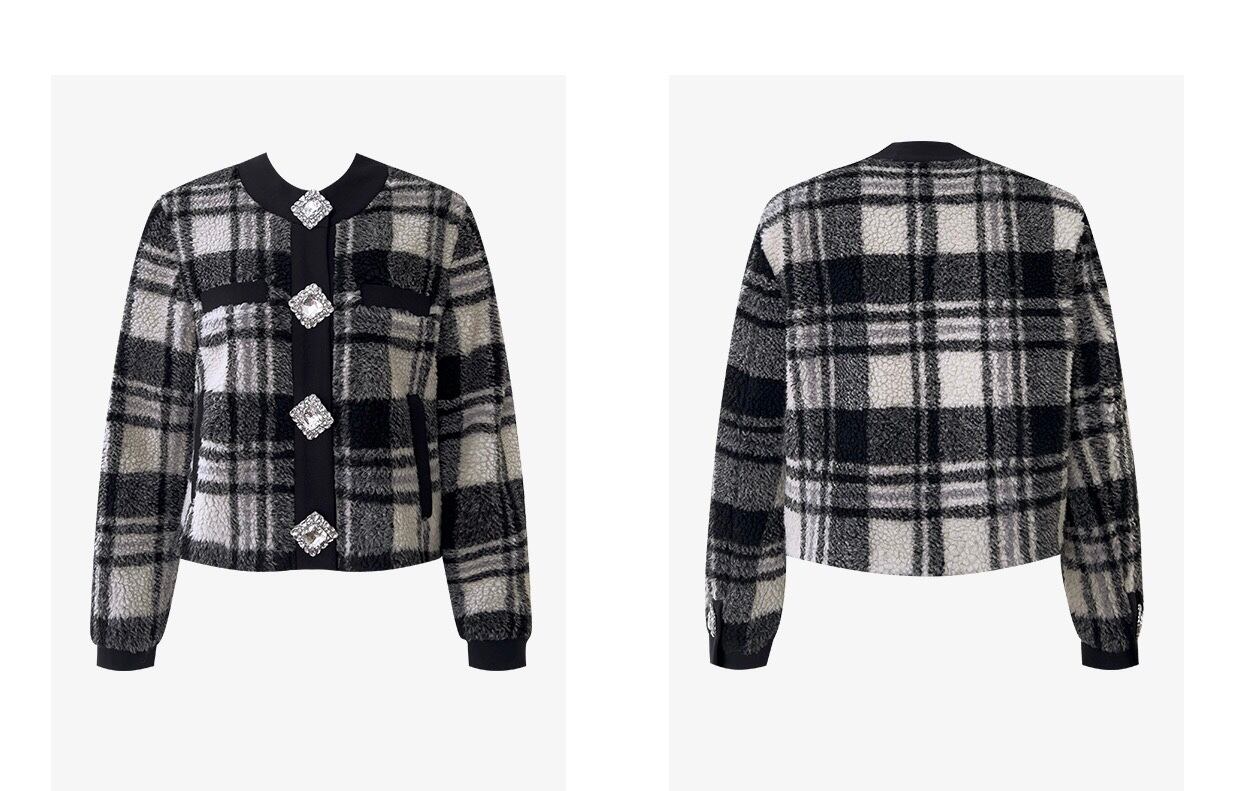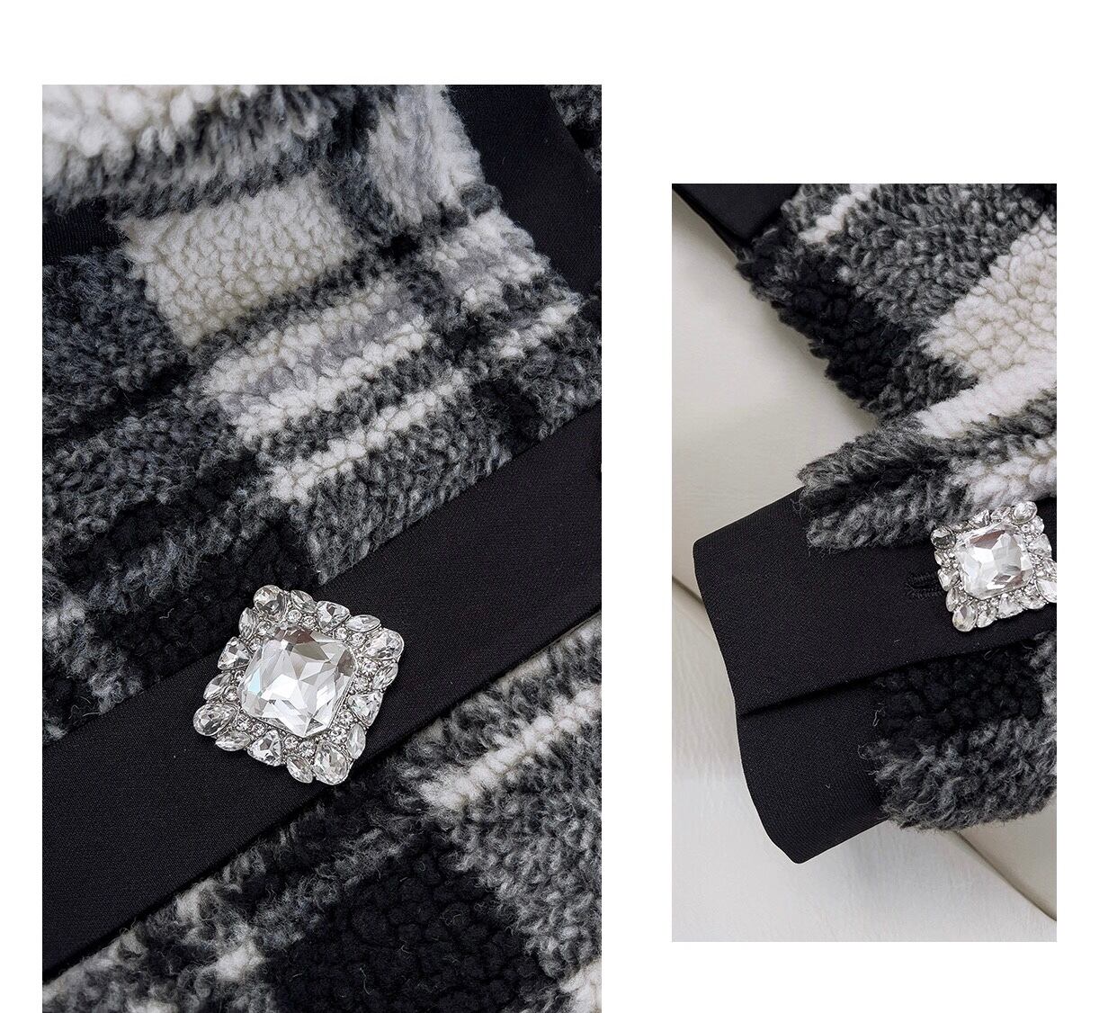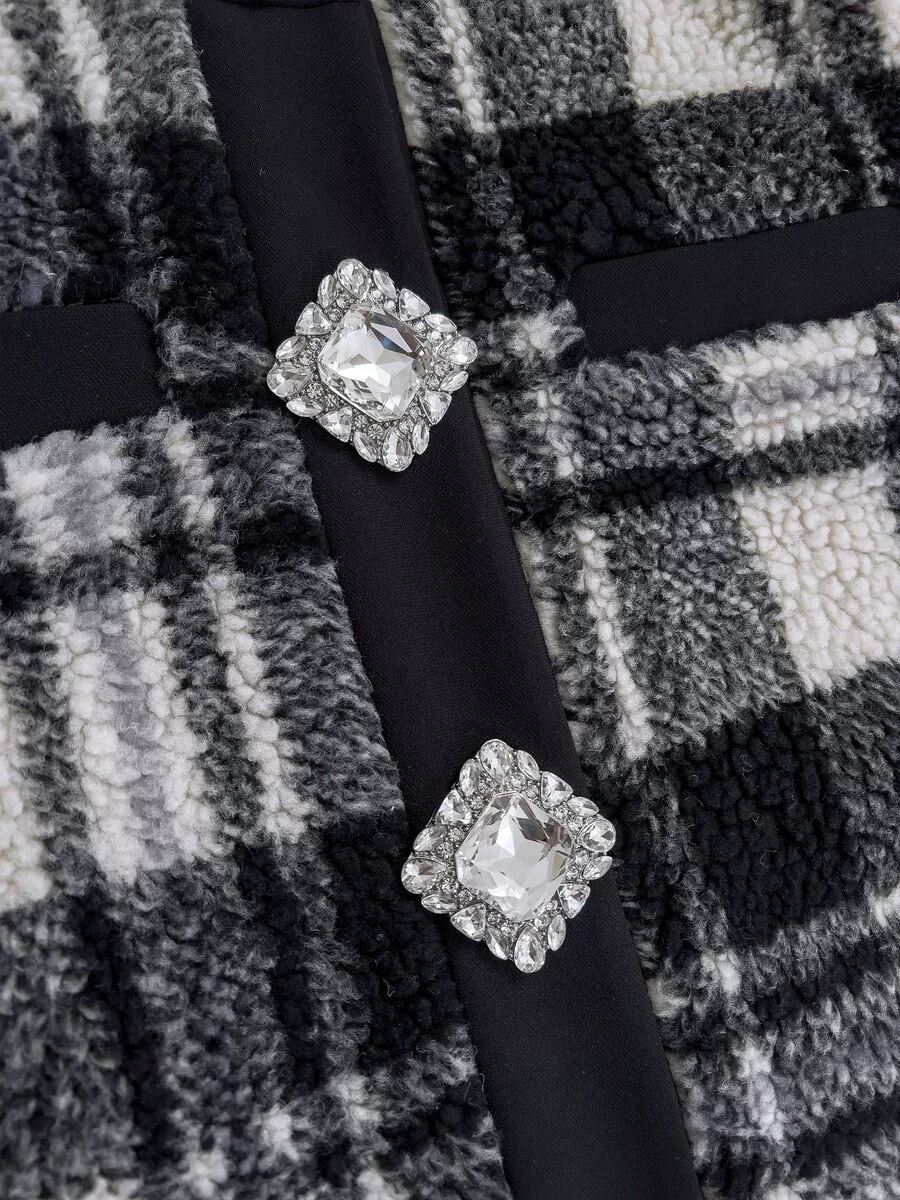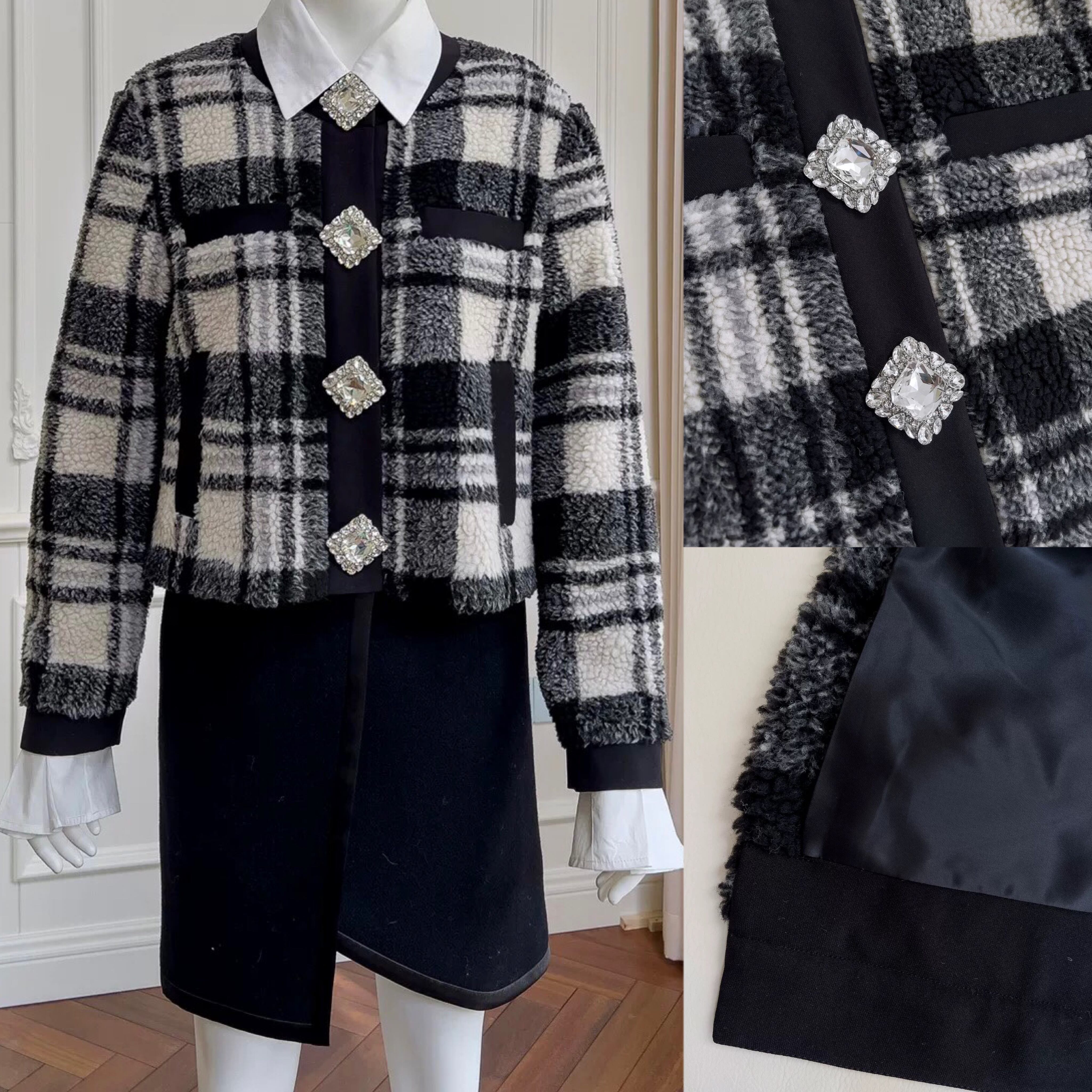 ジャケット スーツ チェック 黒 コート アウター エレガント 白 ラインストーン