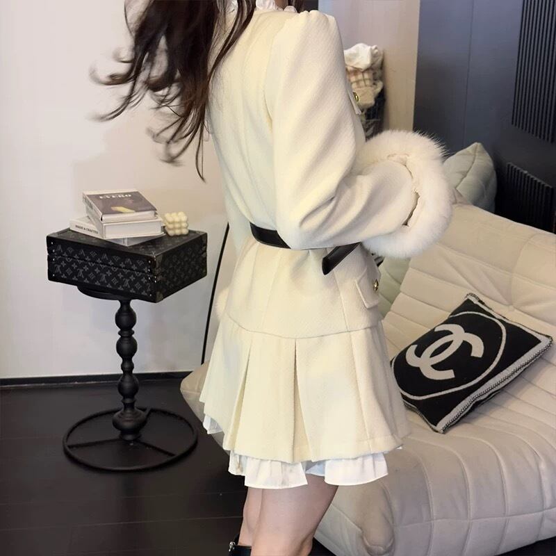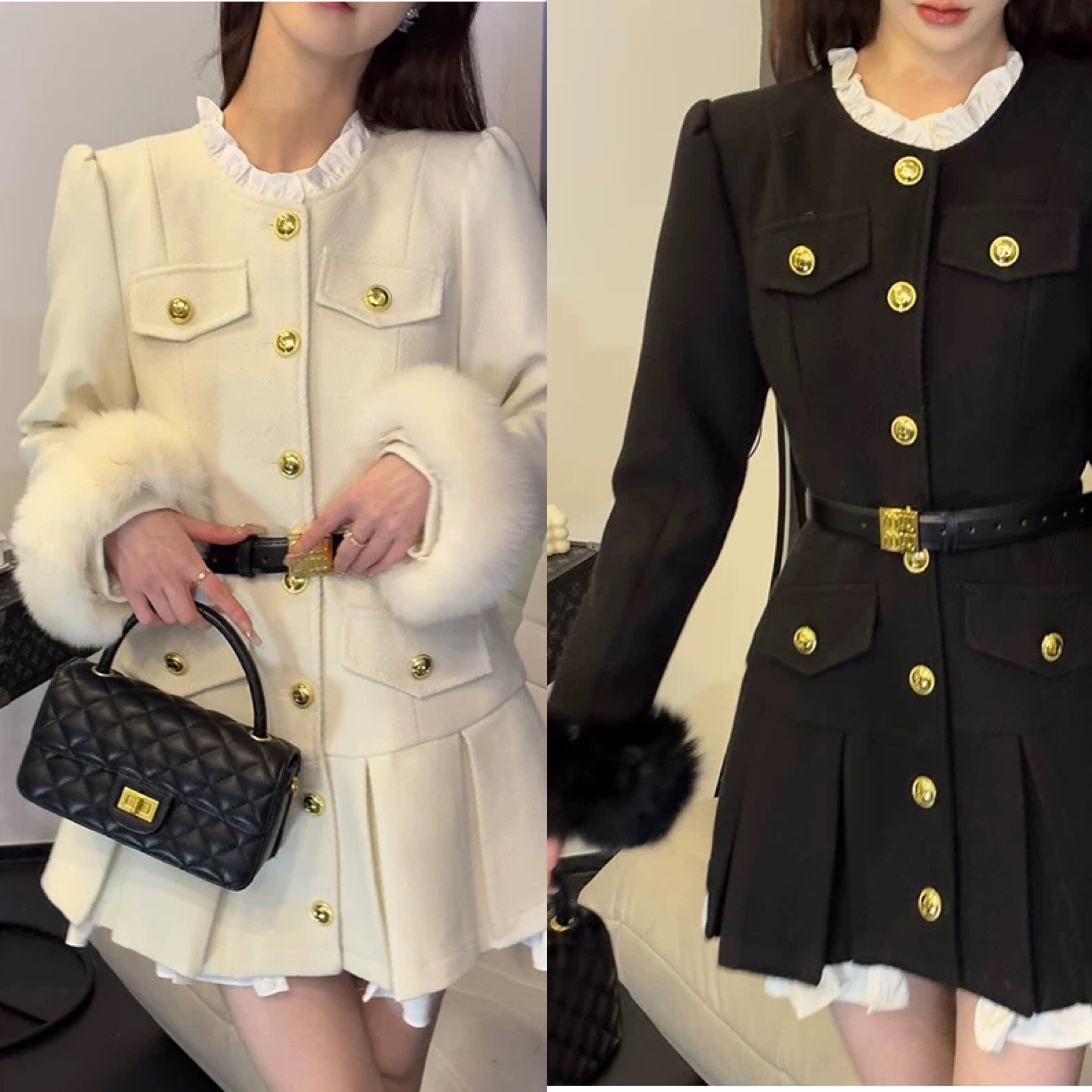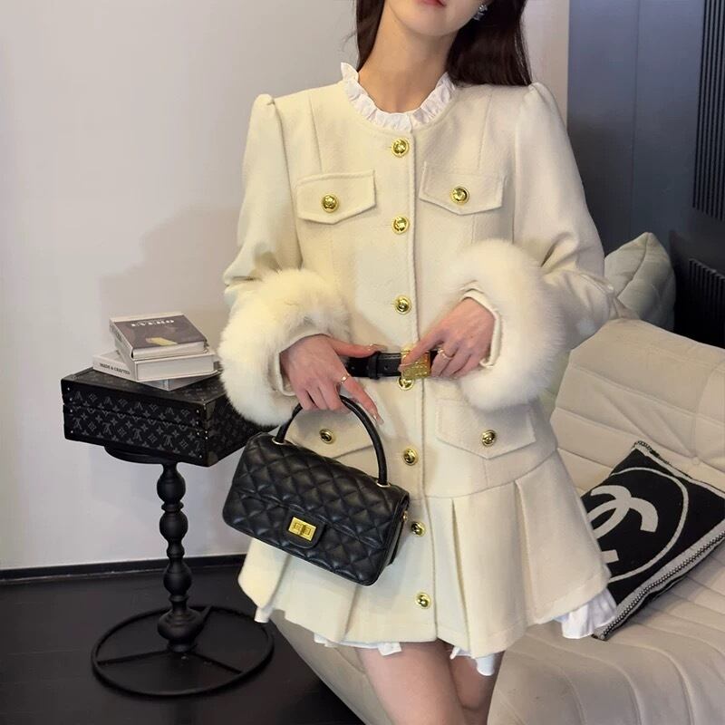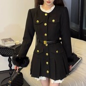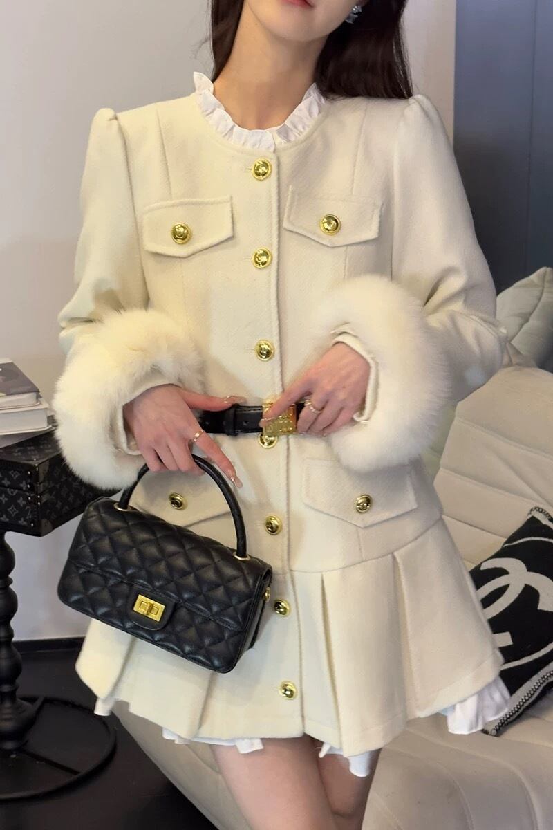 ワンピース コート ファー 白 ジャケット 黒 プリーツ コート