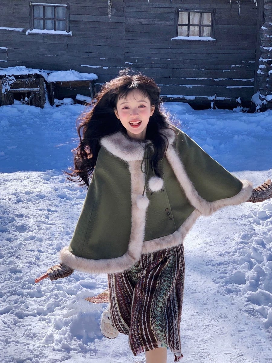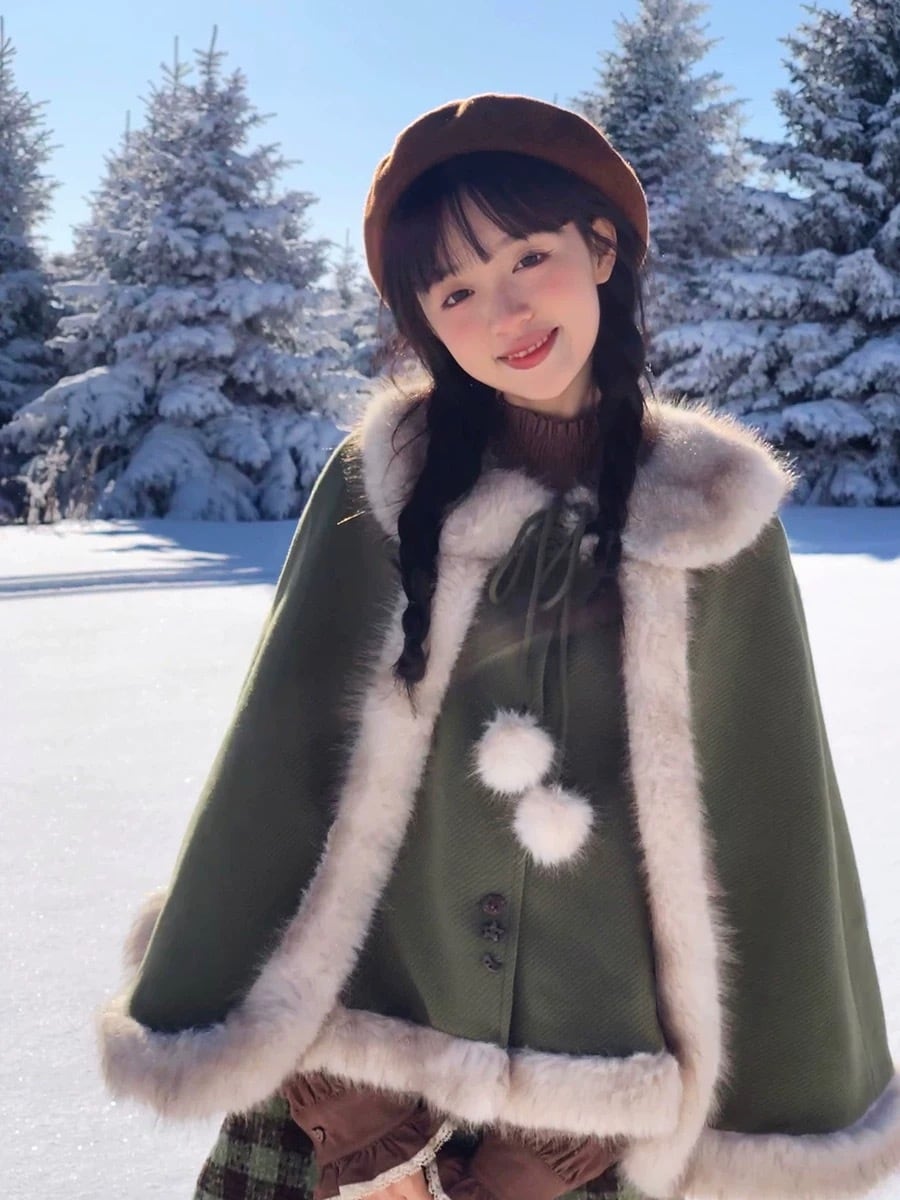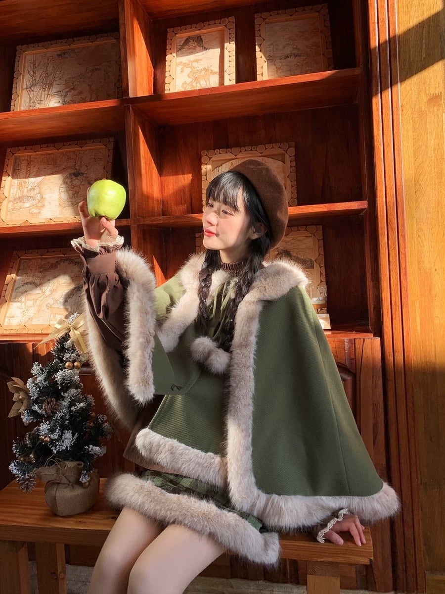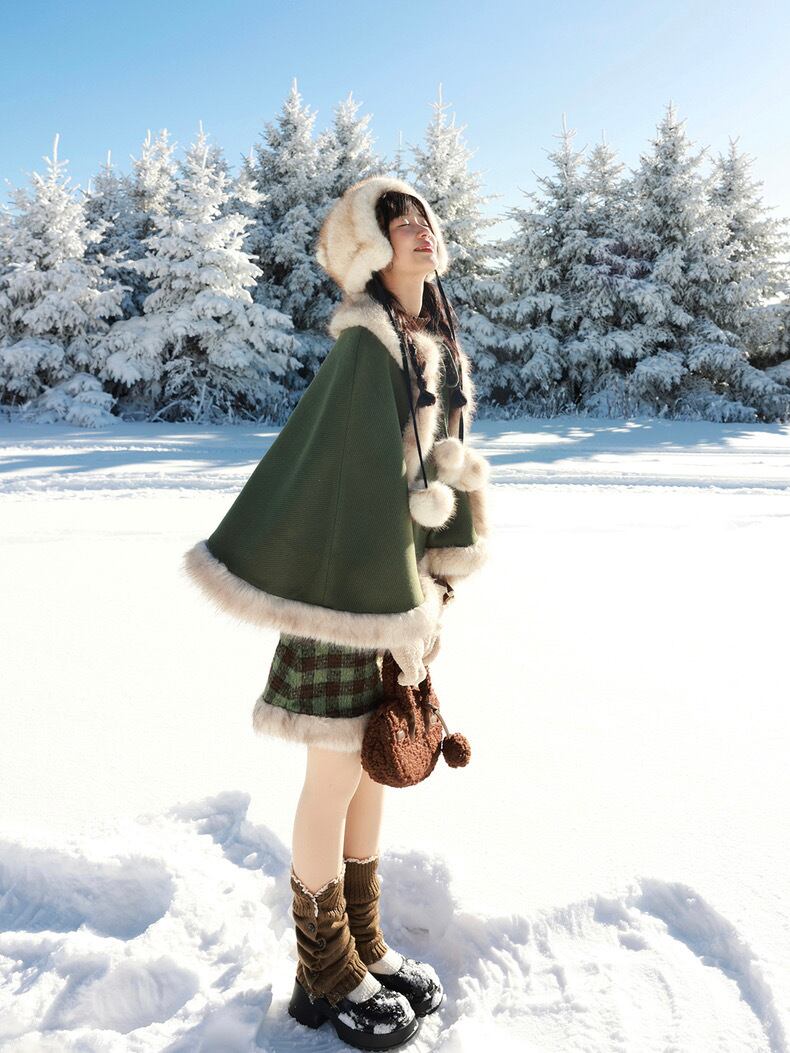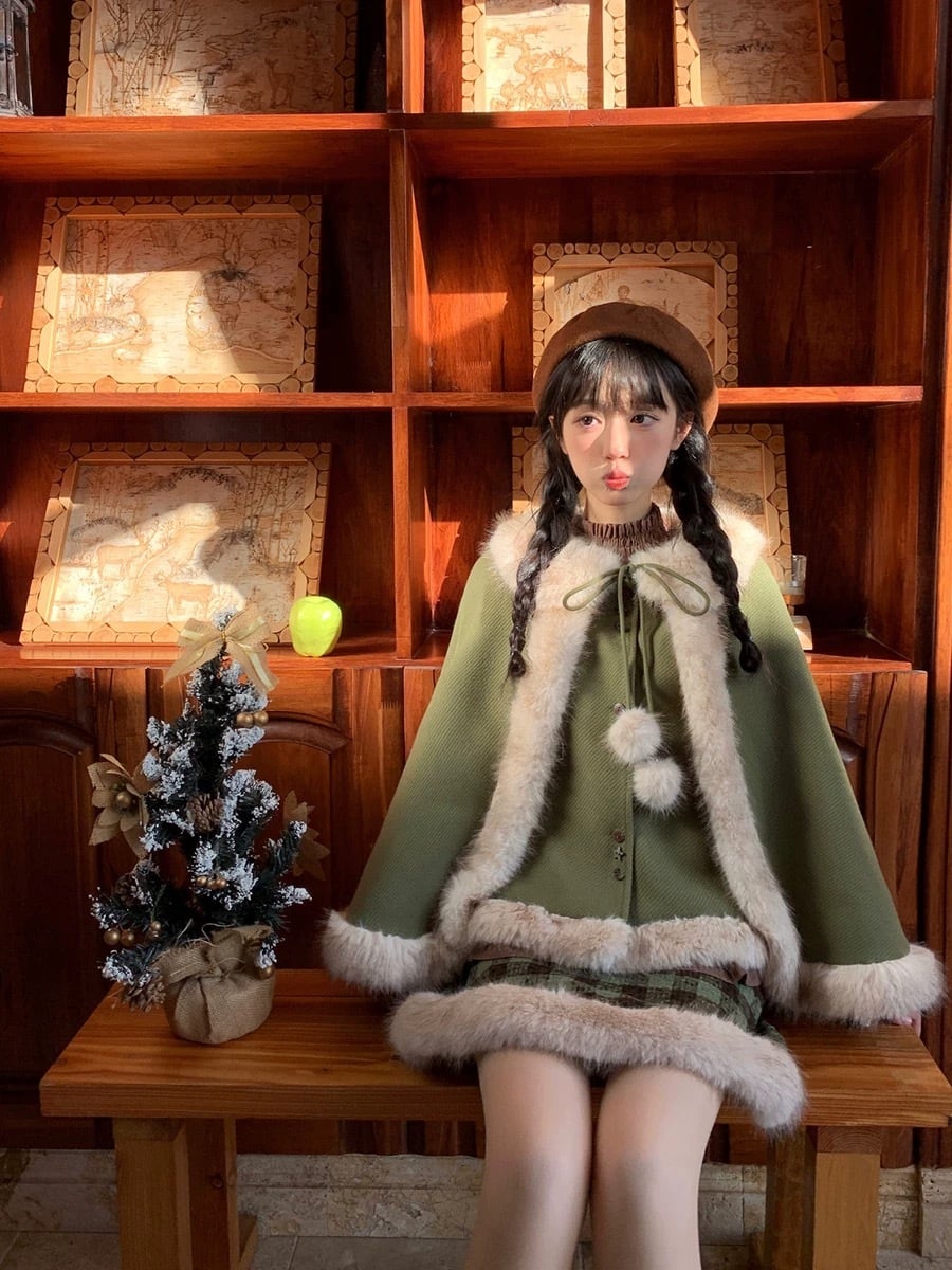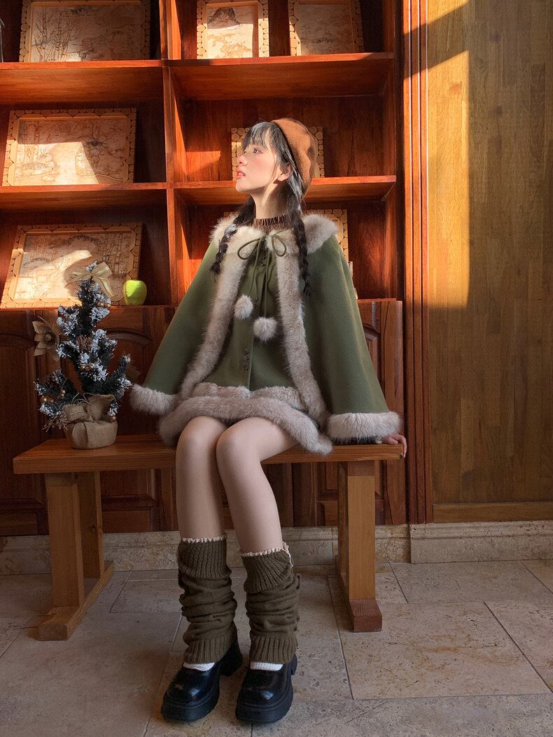 アウター ジャケット コート マント 緑 ファー リボン ワンピース ポンチョ グリーン