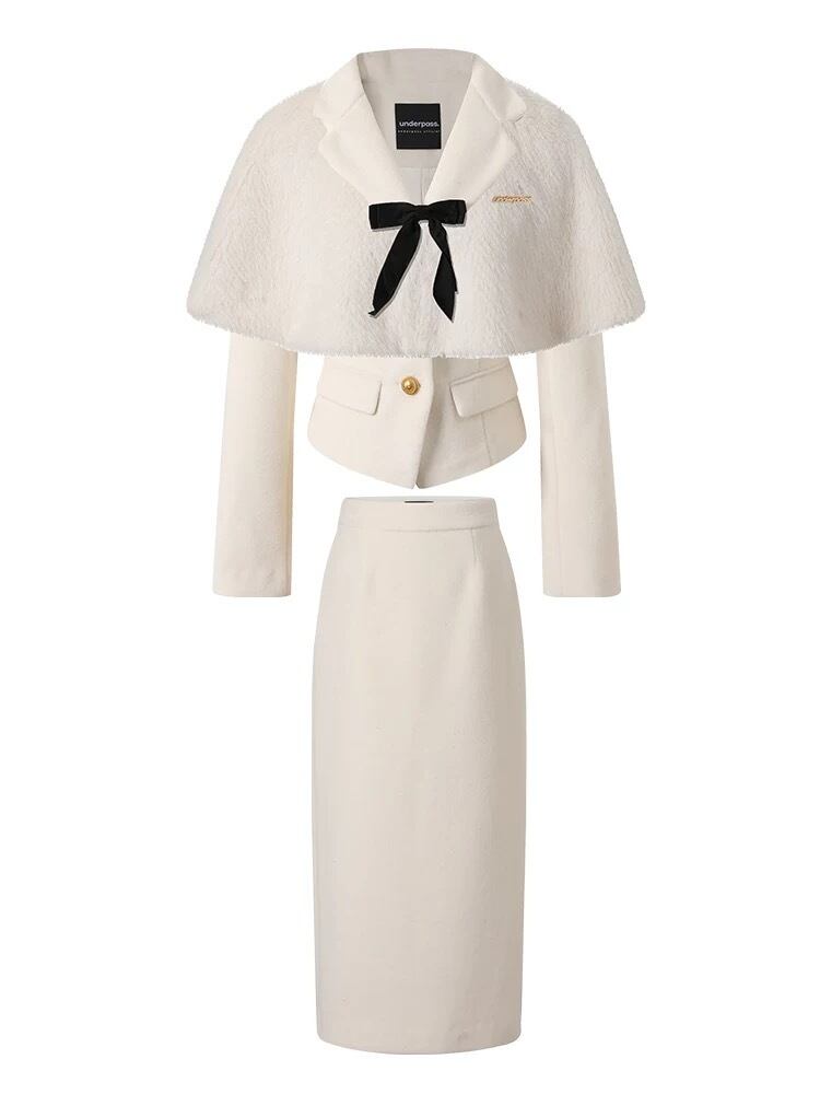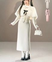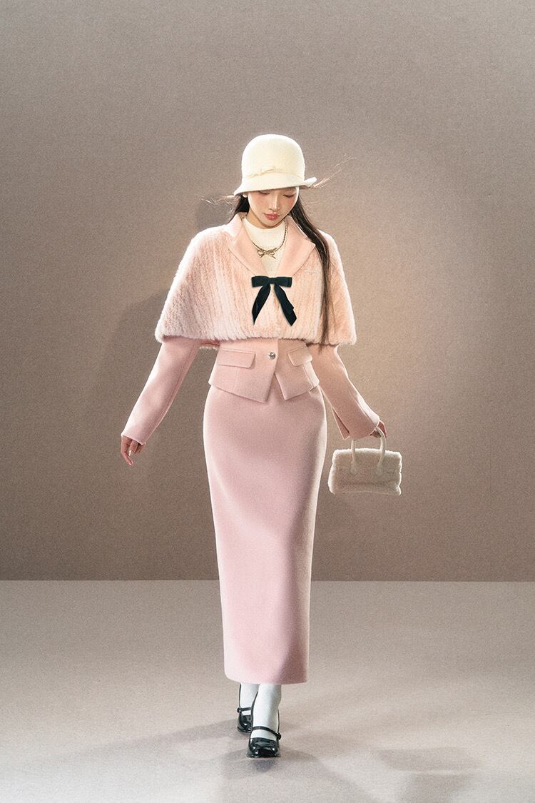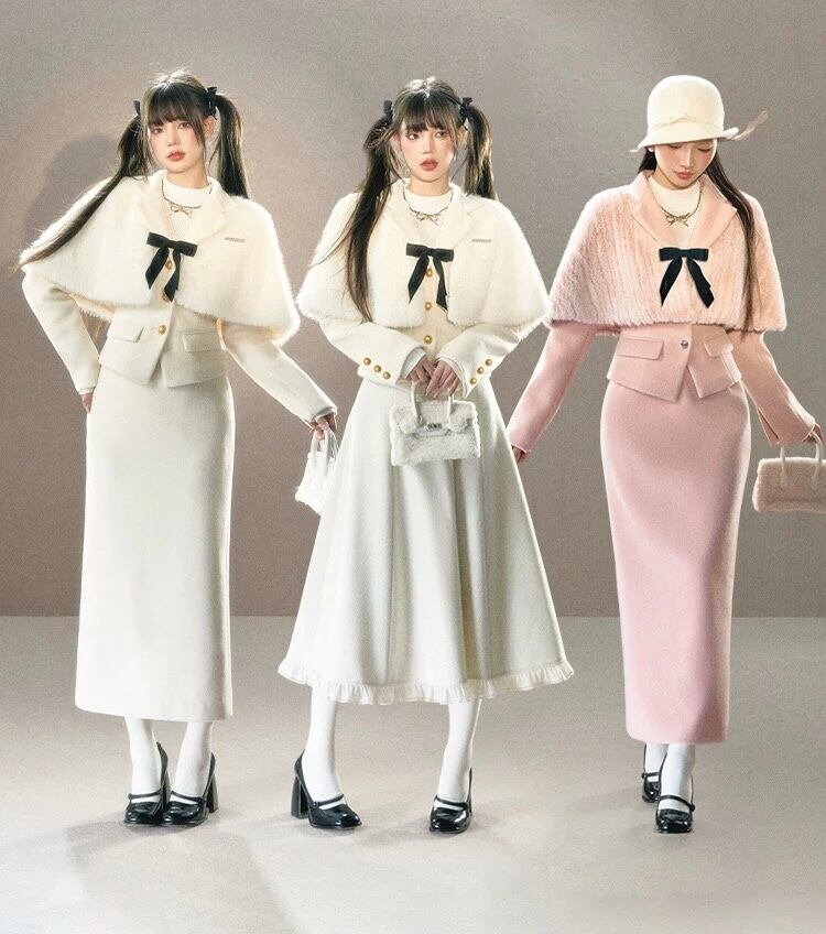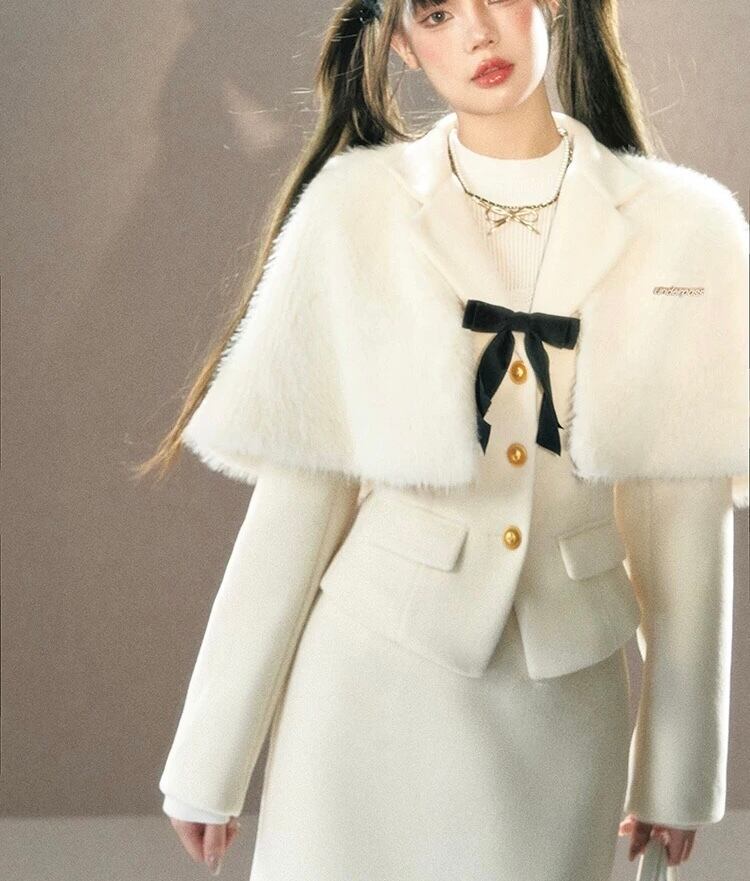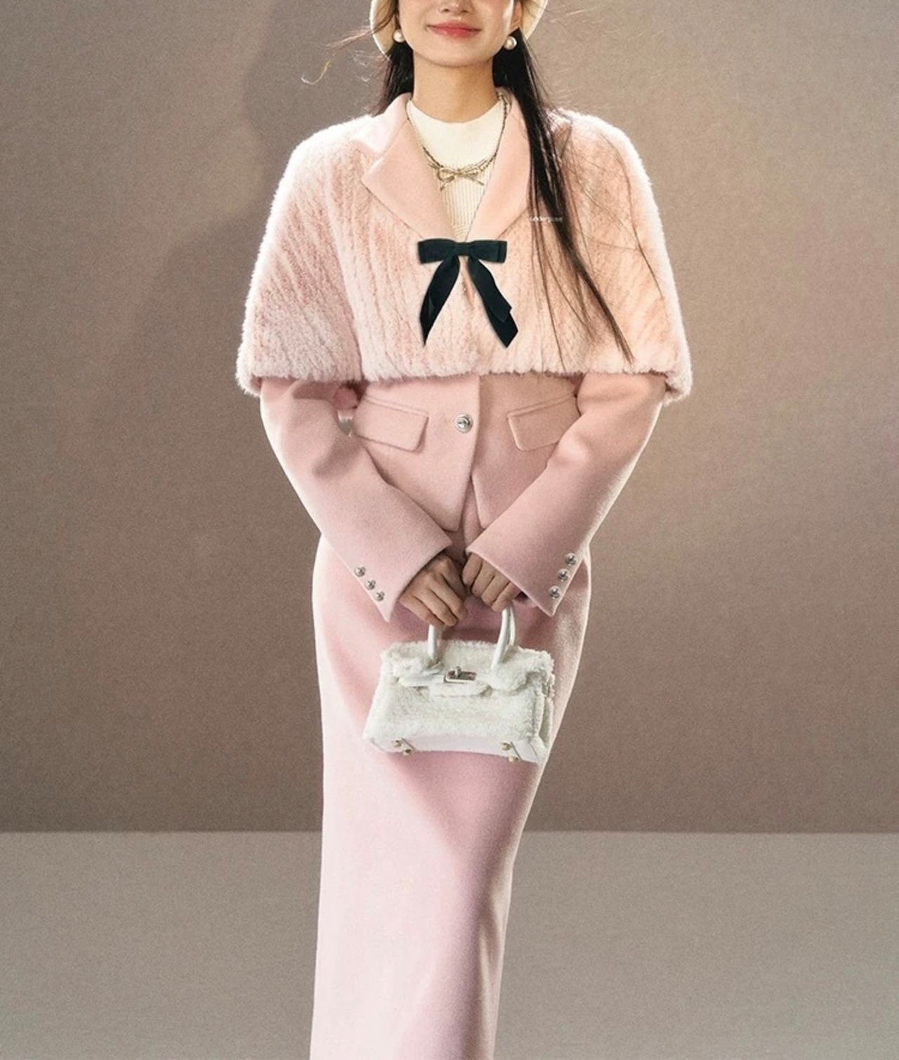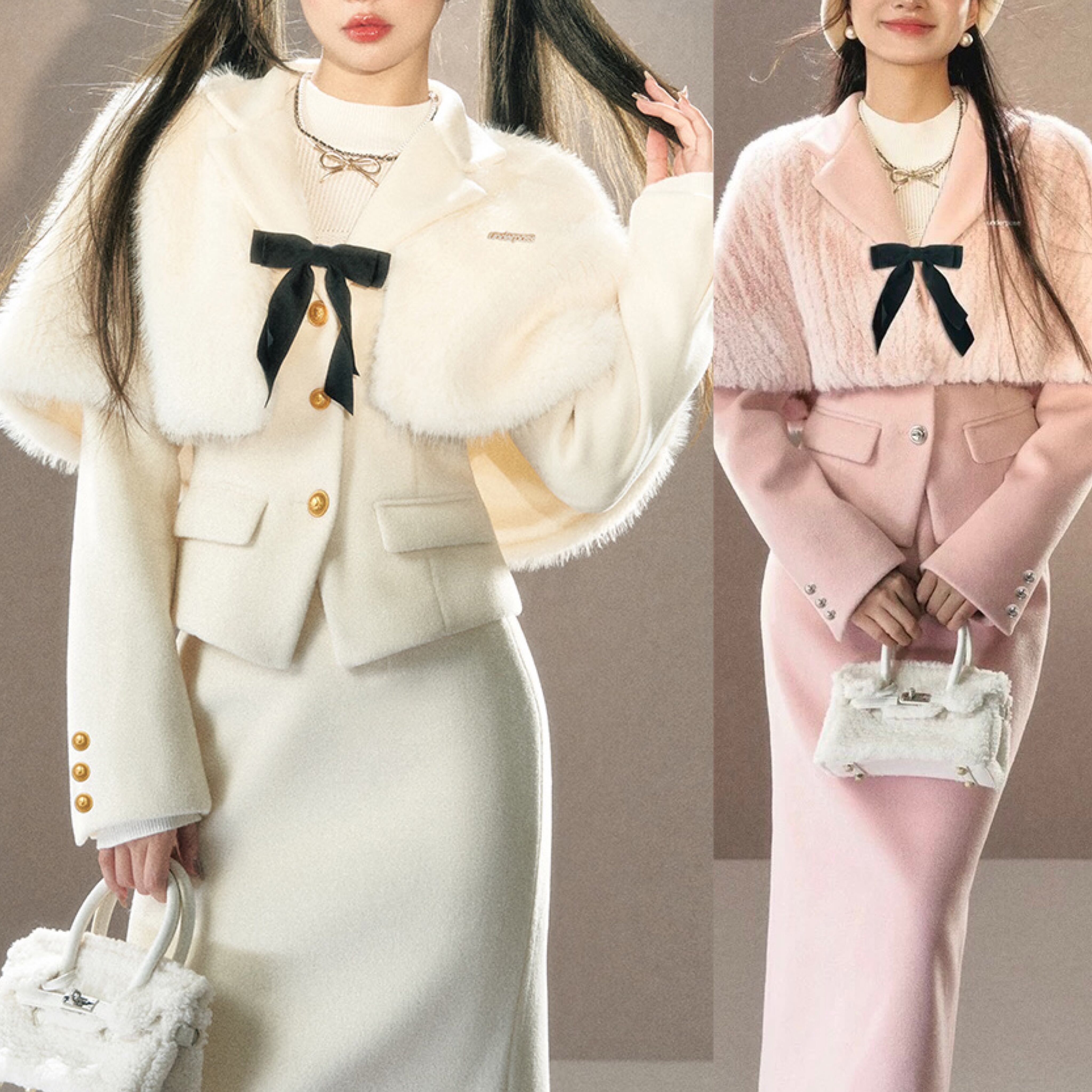 【ジャケット】ファー コート マント お嬢様 カーディガン アウター ピンク 白 ホワイト リボン ショール