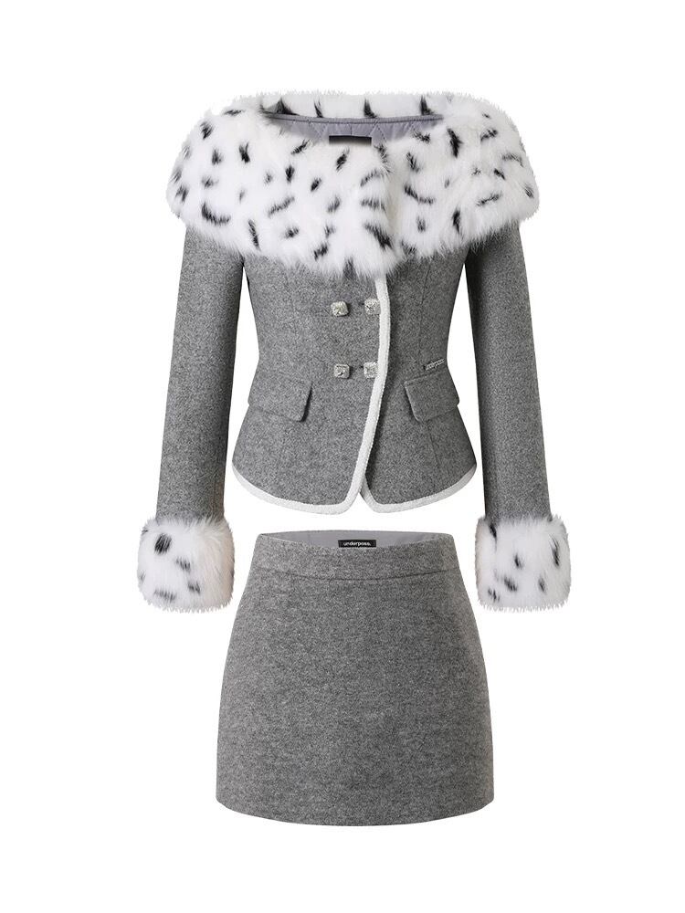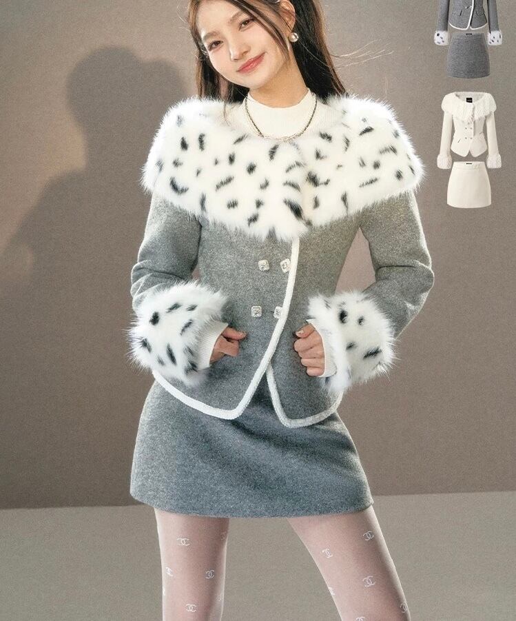 【ジャケット】グレー ホワイト 白 コート カーディガン ジャケット アウター カーディガン お嬢様 ファー
