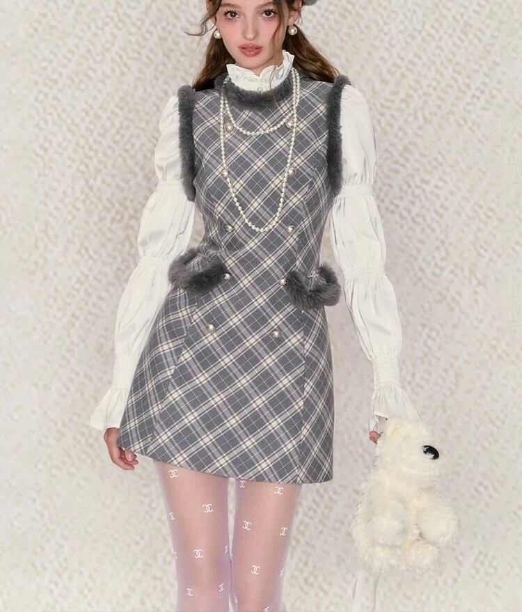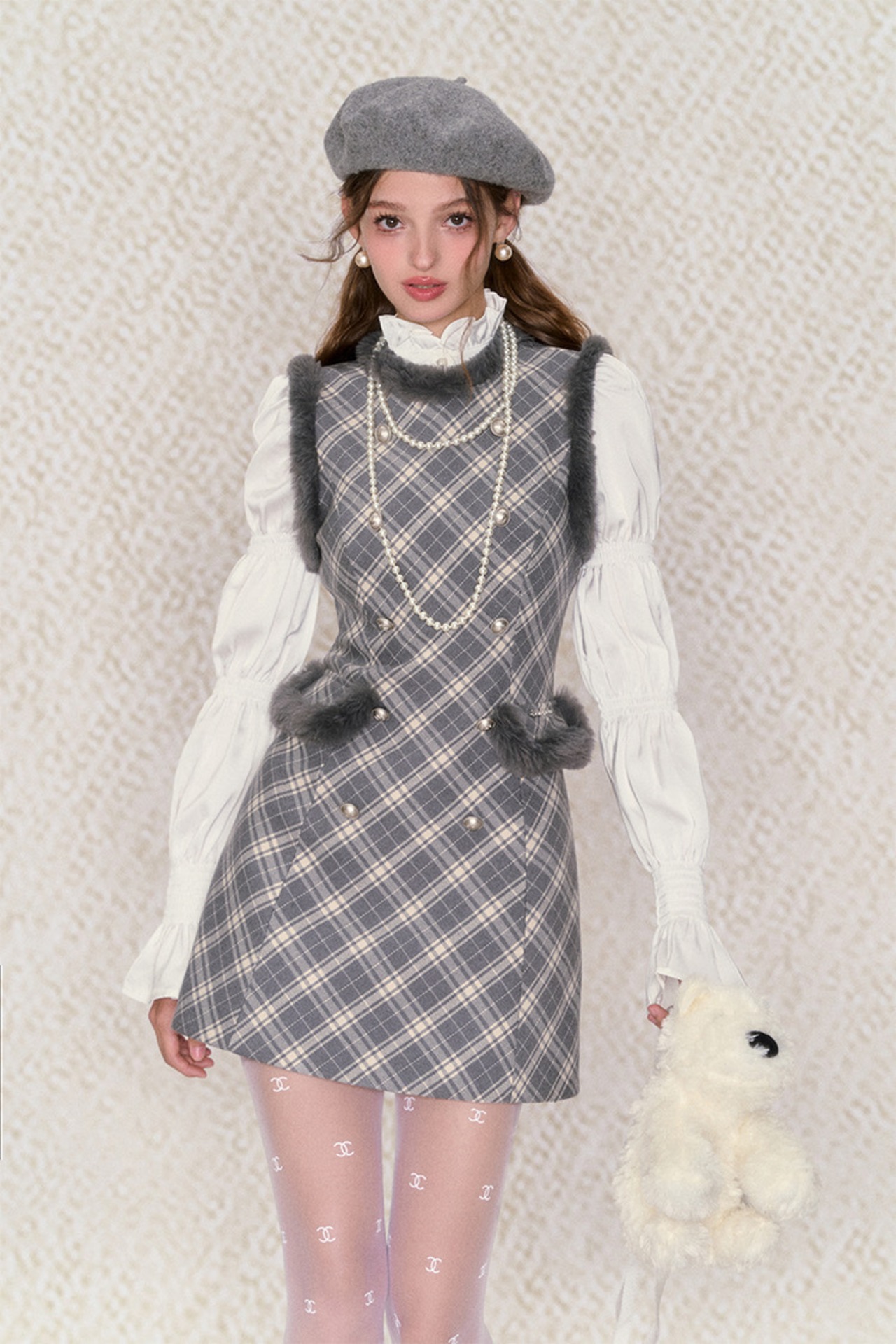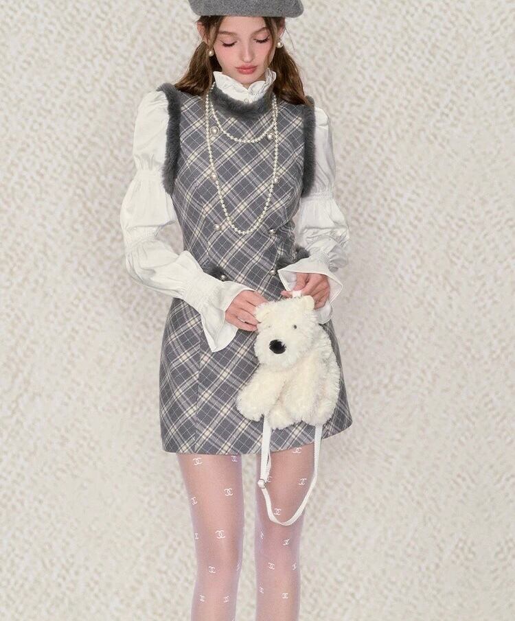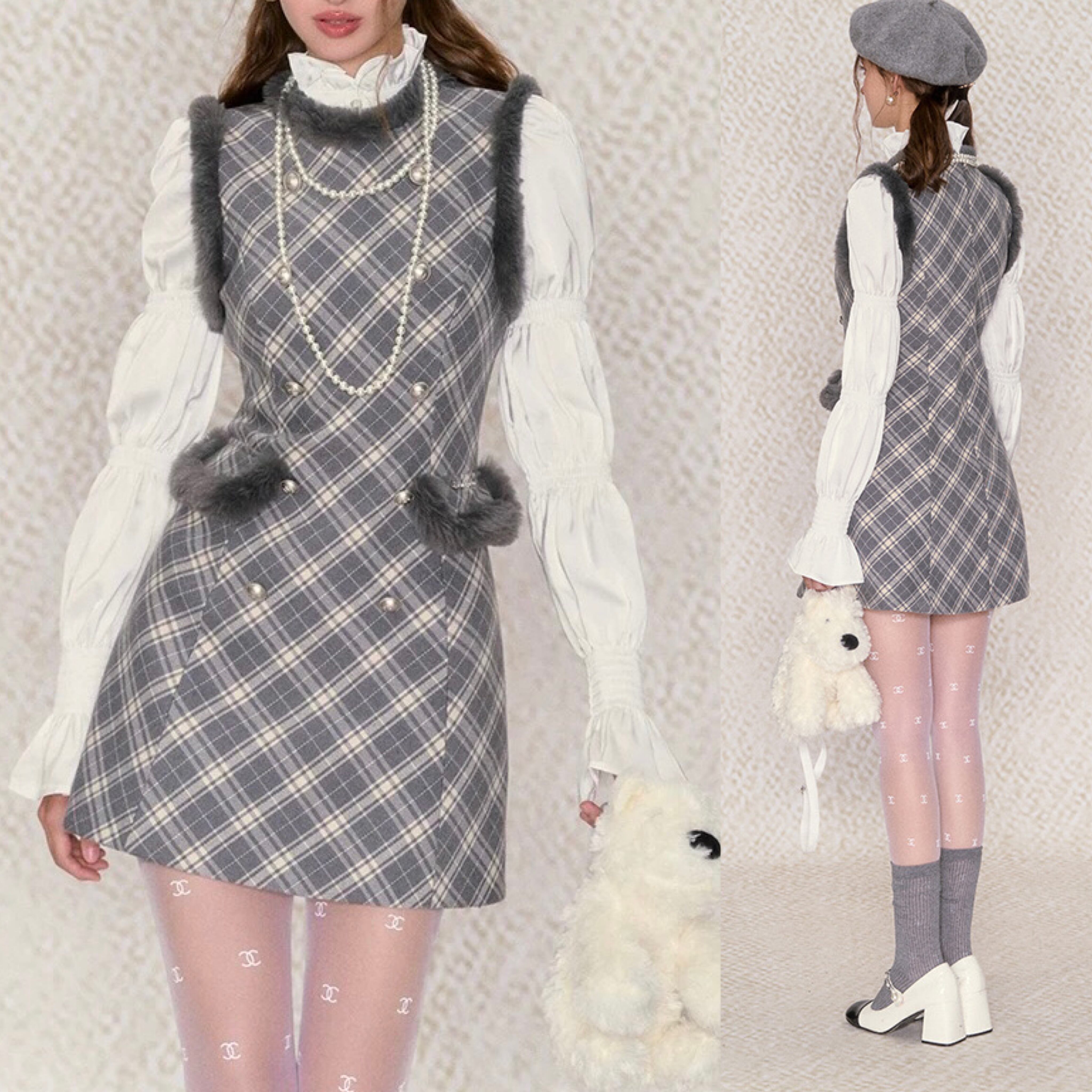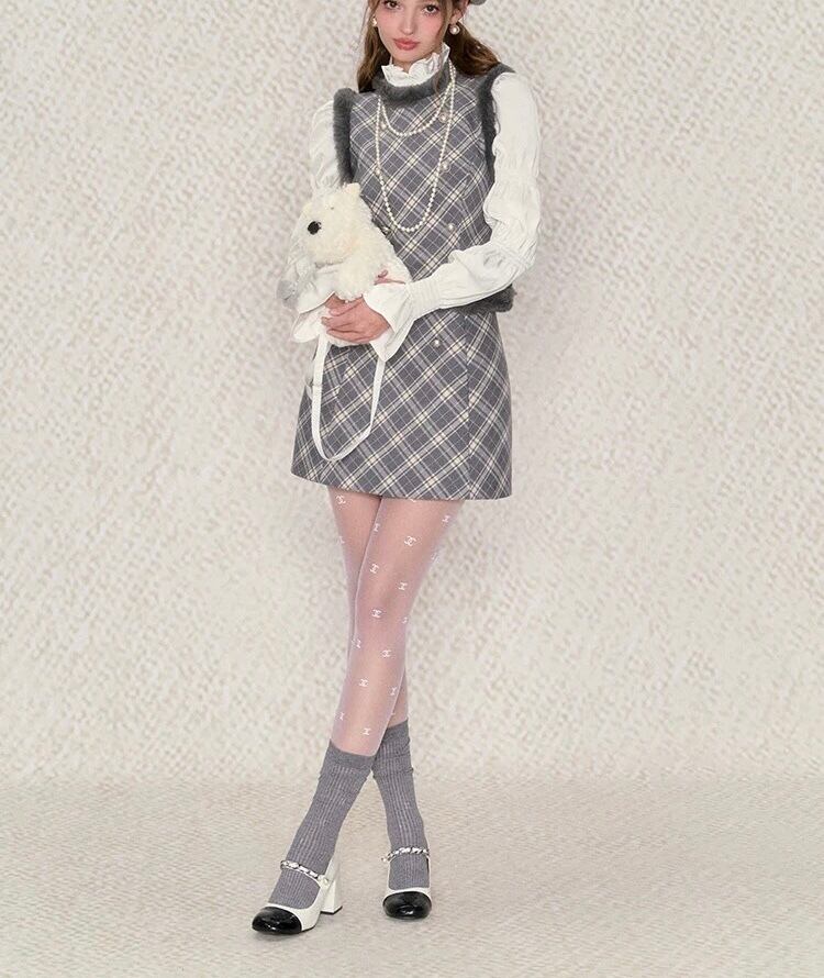 チェック グレー ワンピース スカート ガーリー お嬢様 可愛い エレガント スカート