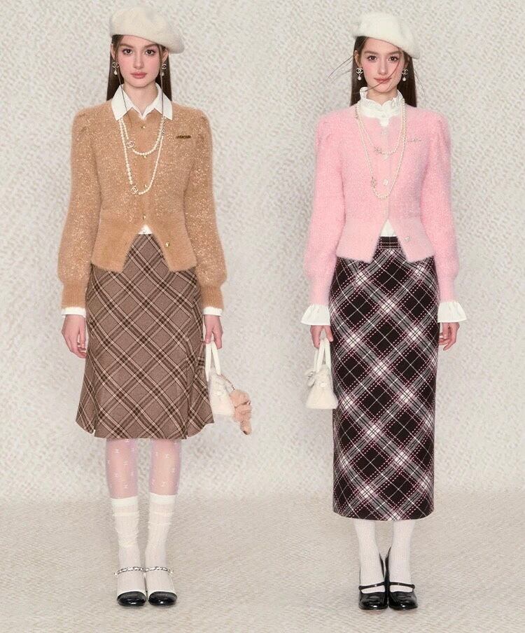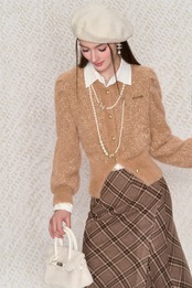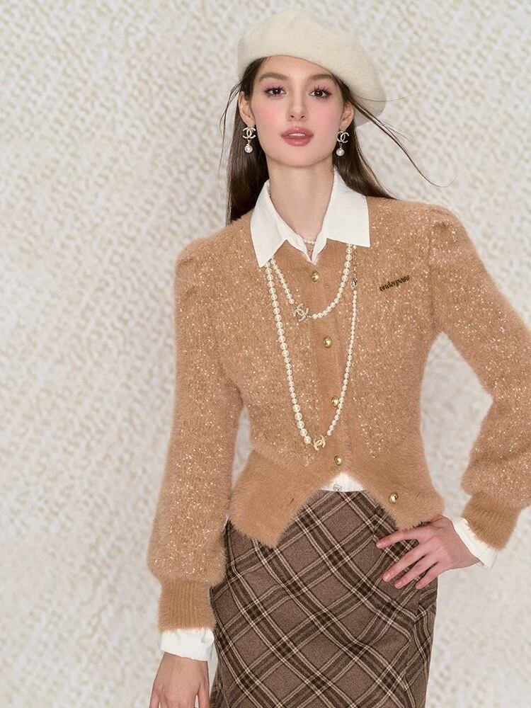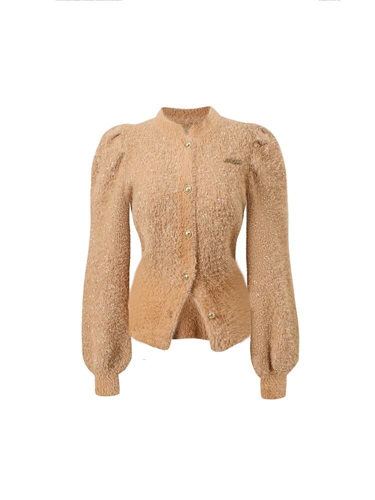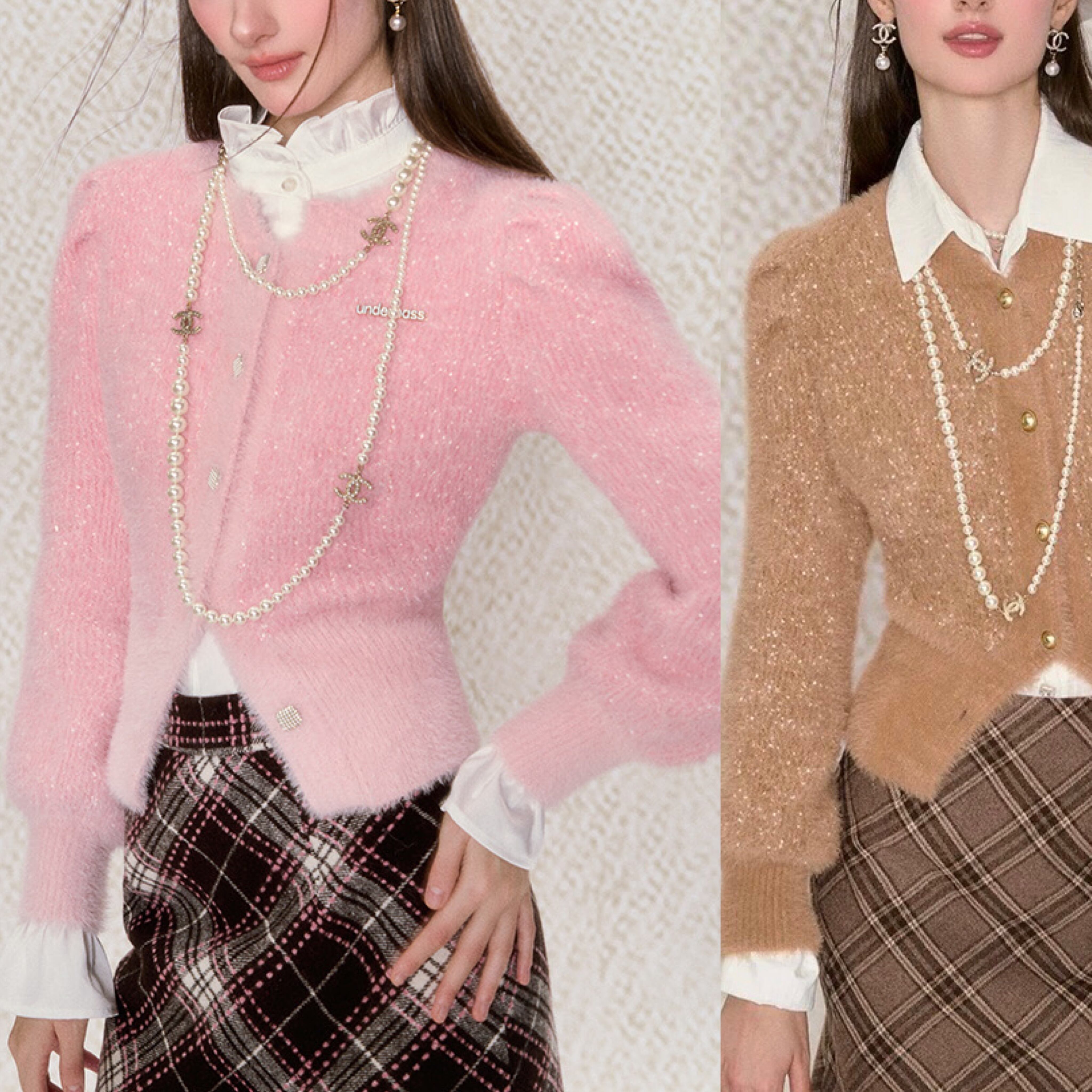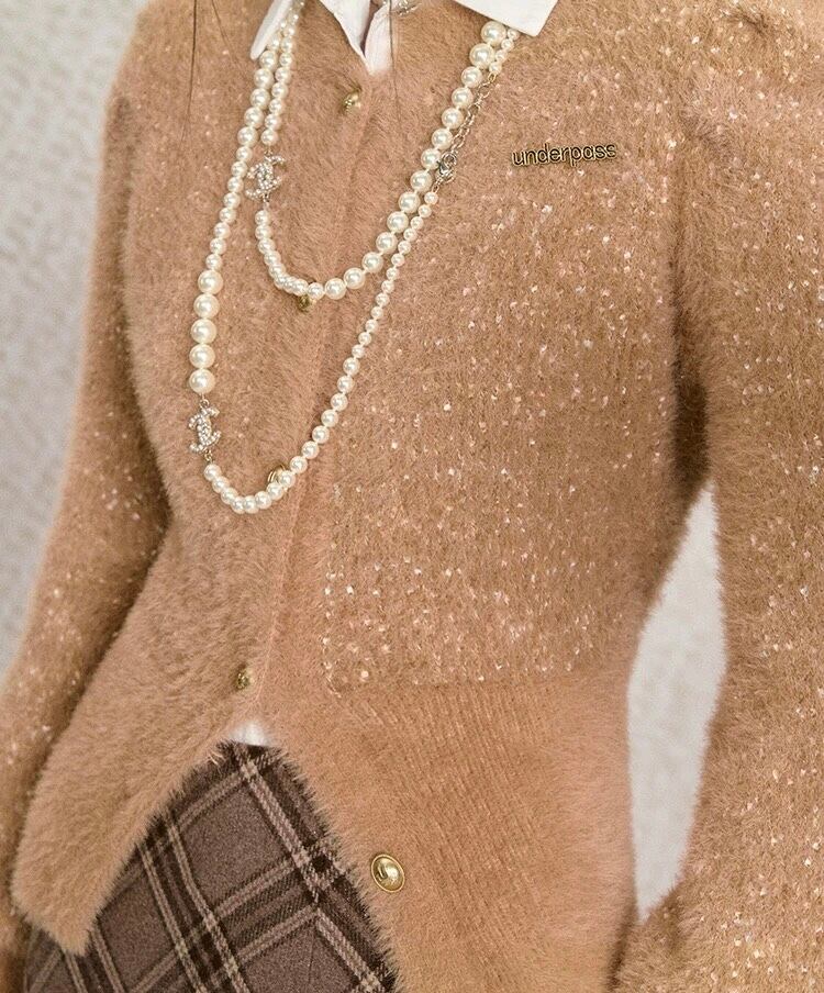 カーディガン ベージュ 茶色 キャラメル ピンク ラメ セーター ニット アウター コート