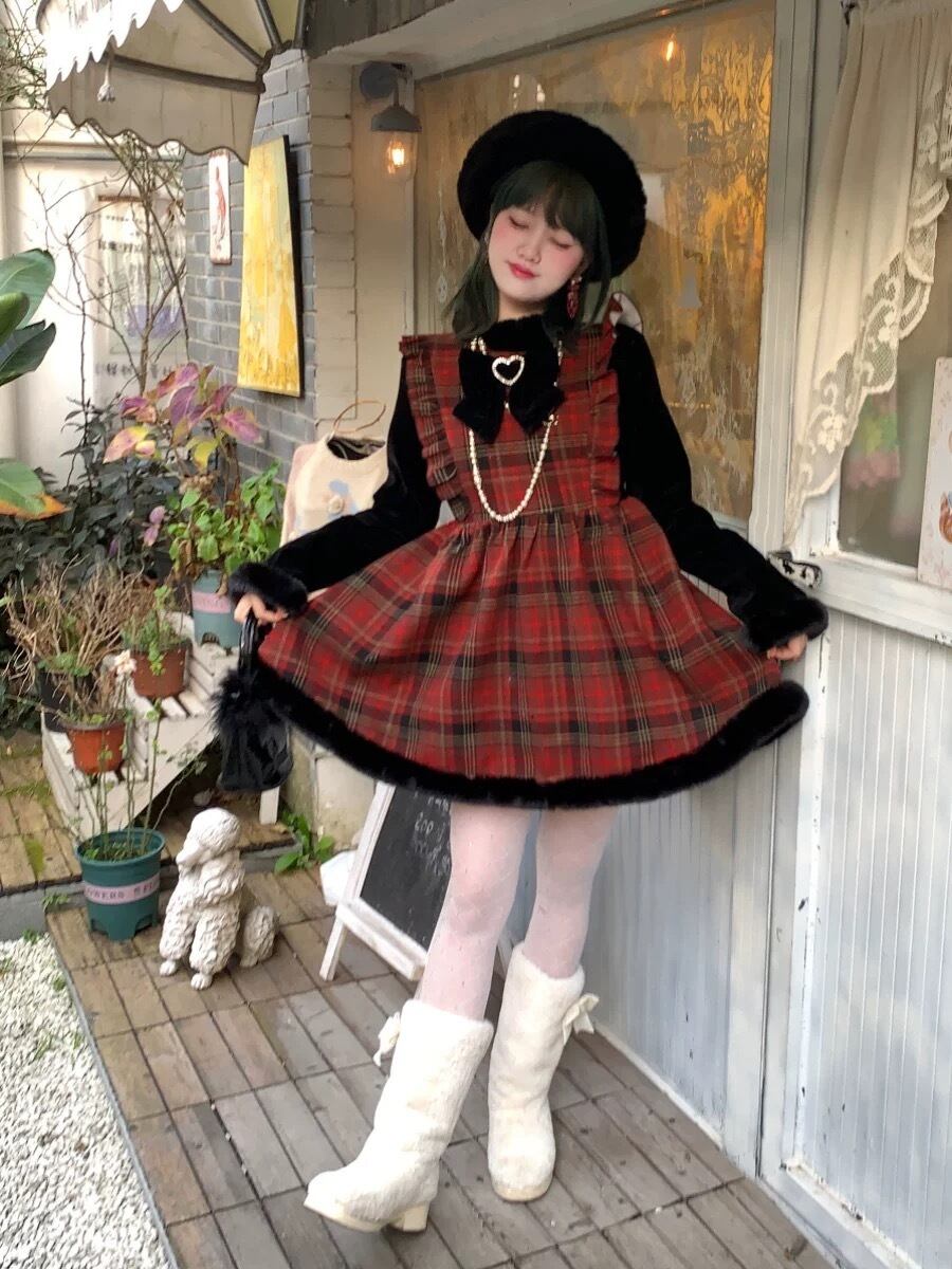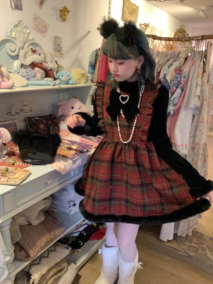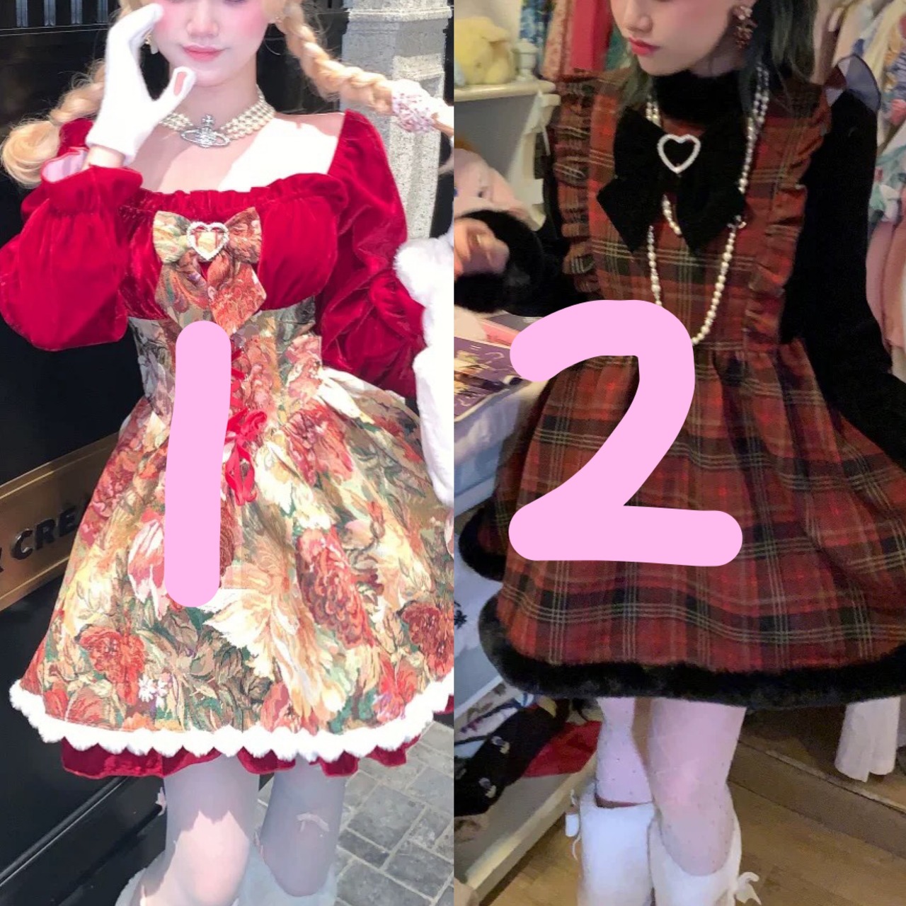 ワンピース ガーリー 可愛い ブラウス チェック 赤 ピンク ドレス 花柄