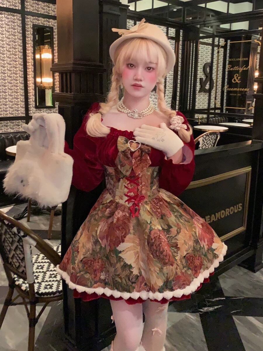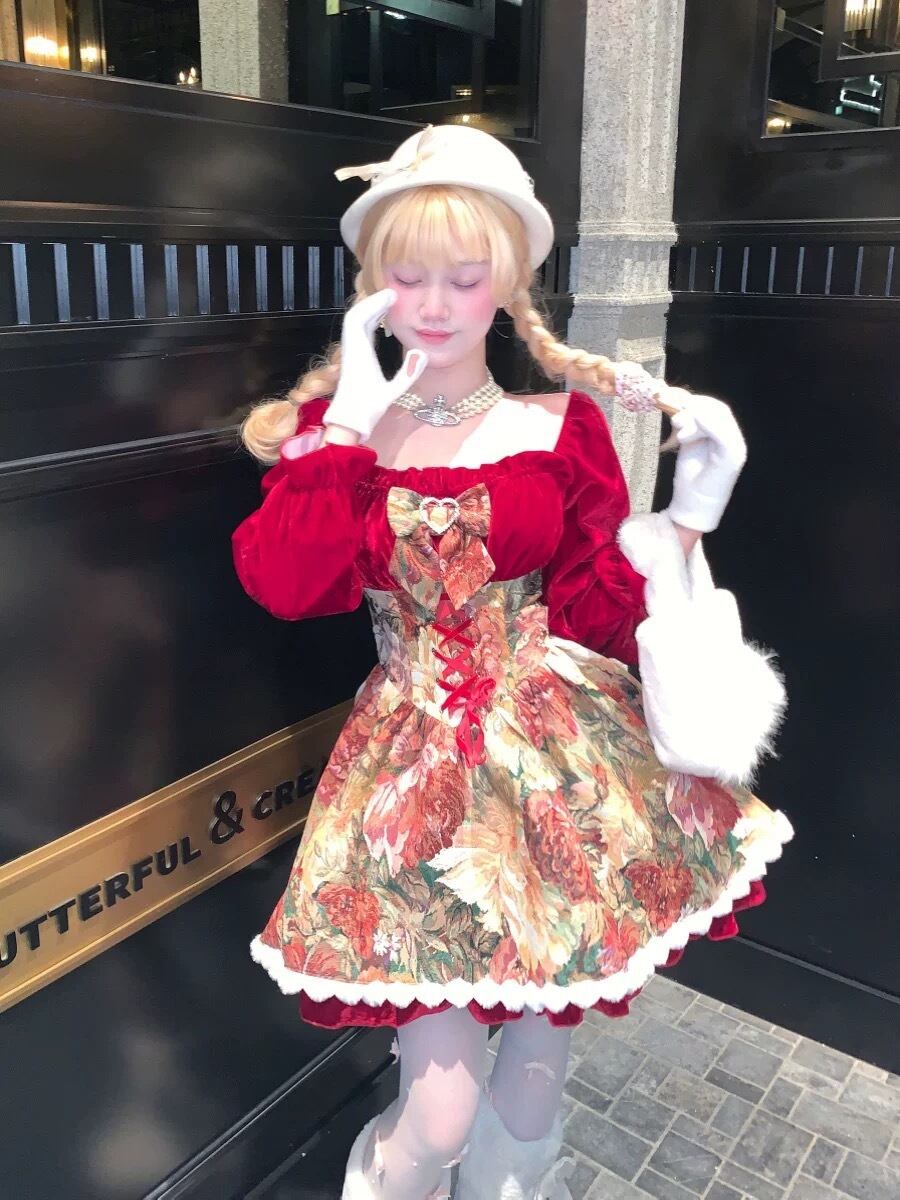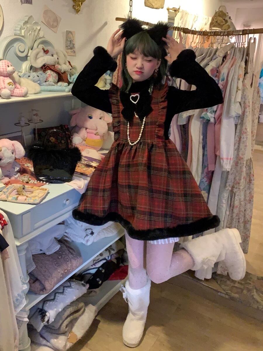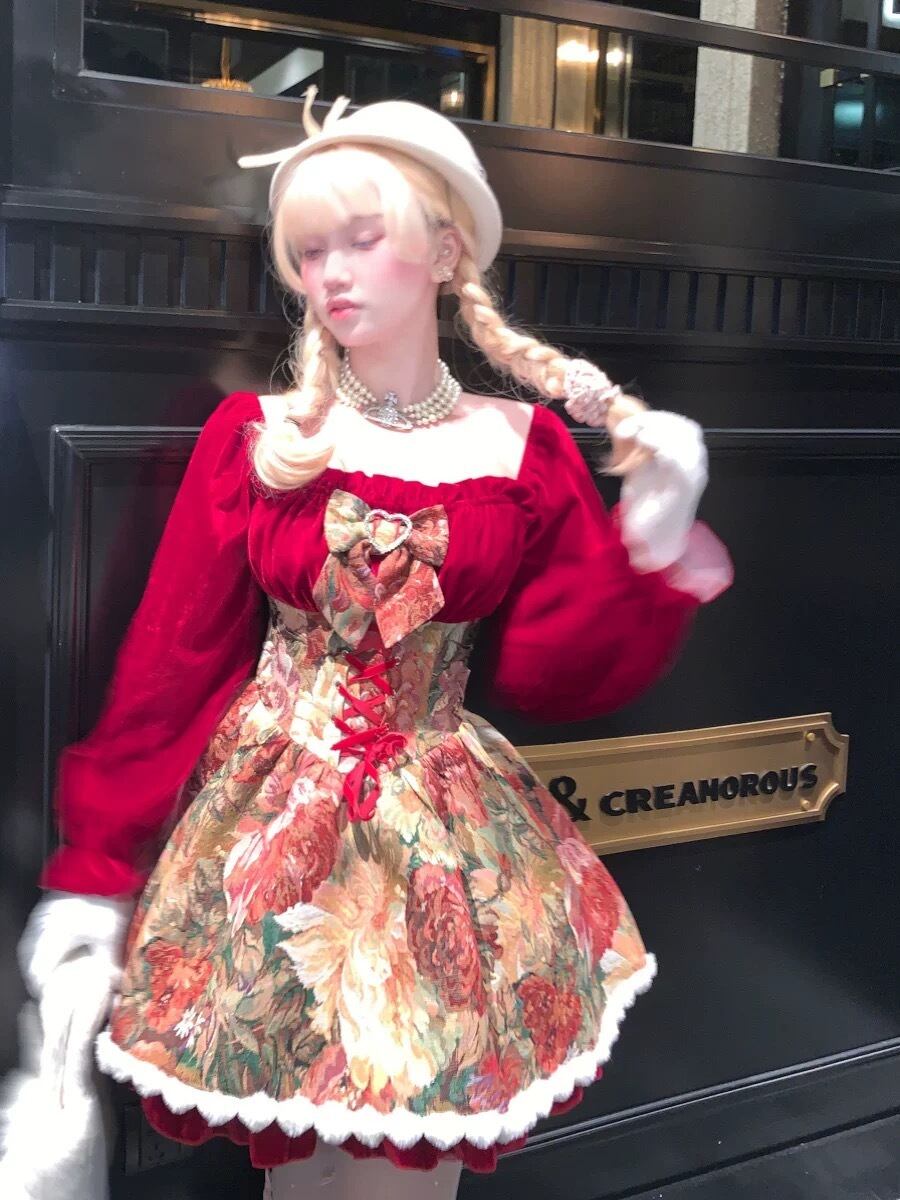 ワンピース ガーリー 可愛い ブラウス チェック 赤 ピンク ドレス 花柄