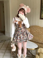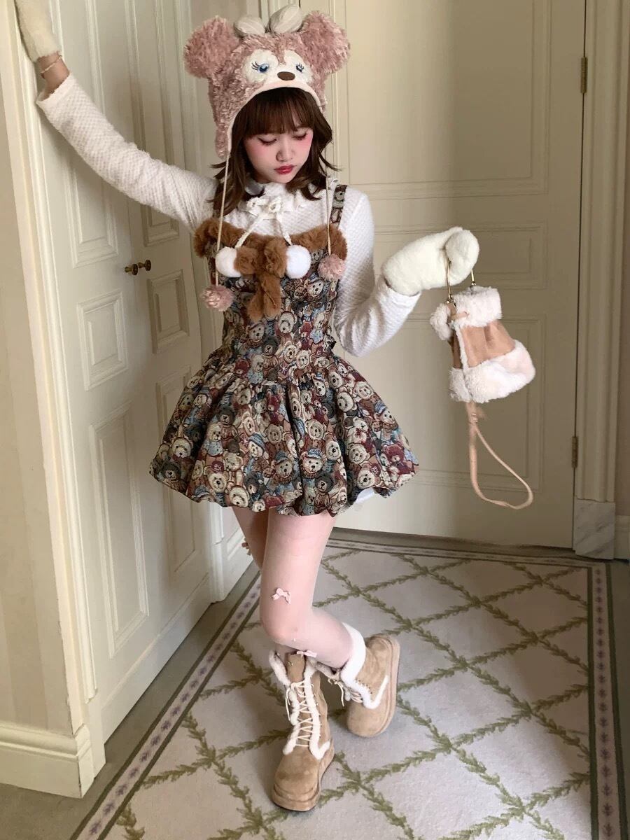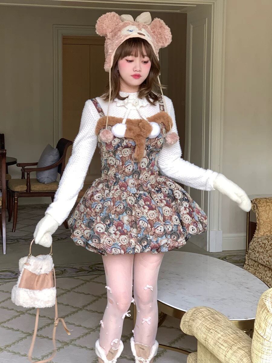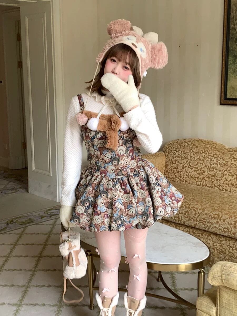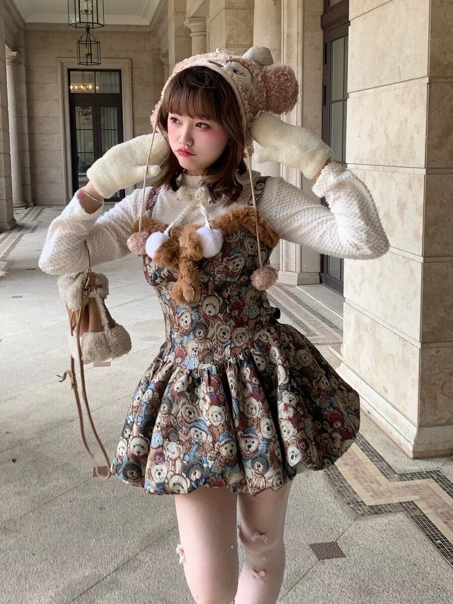 くま 茶色 ワンピース キャミソール 水色 リボン ガーリー 可愛い 姫 ドレス