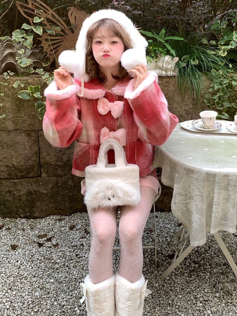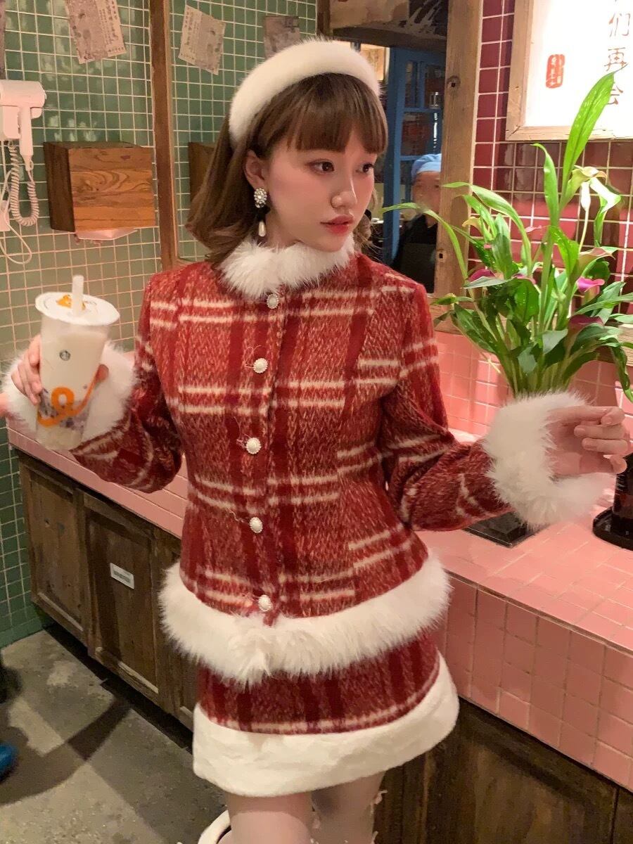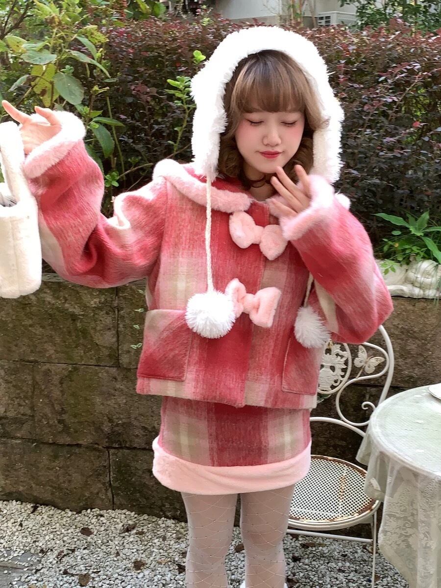 【ジャケット】アウター セットアップ グレー 赤 リボン ピンク チェック ガーリー コート アウター カーディガン