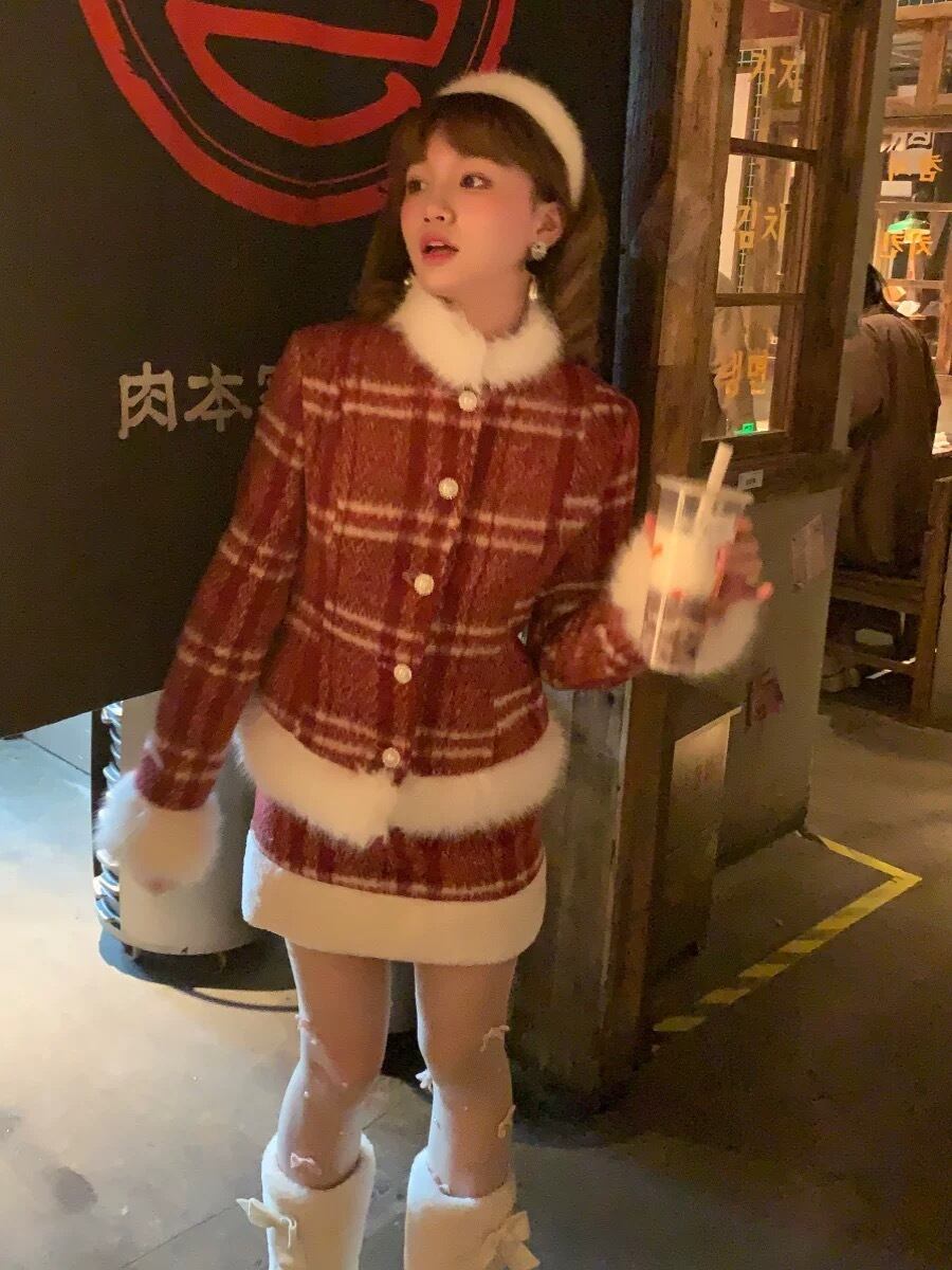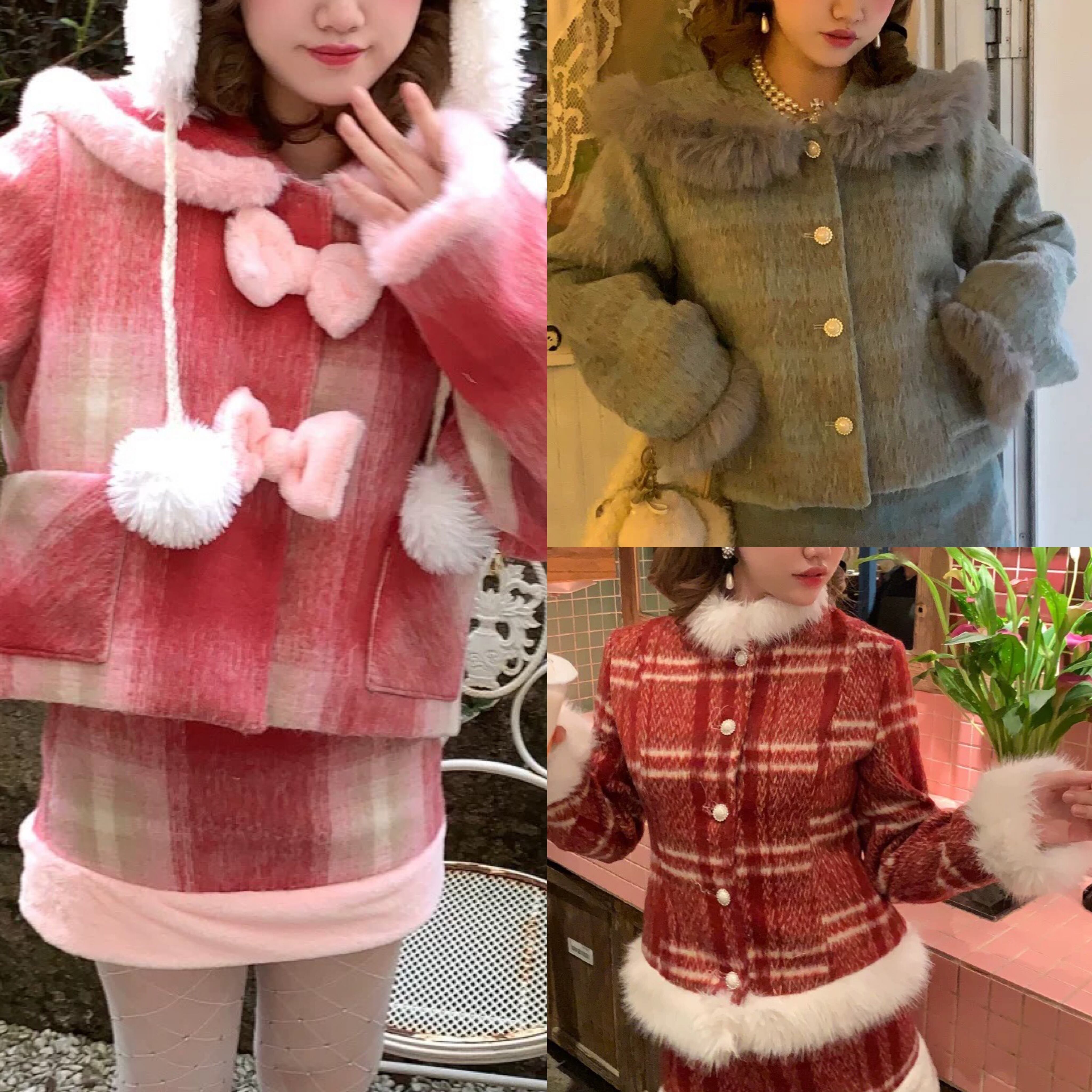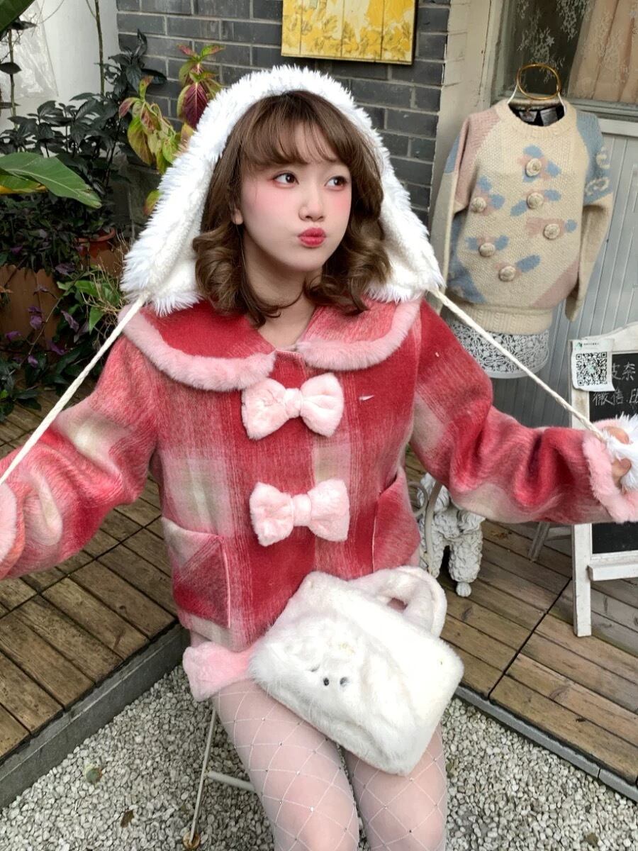 【ジャケット】アウター セットアップ グレー 赤 リボン ピンク チェック ガーリー コート アウター カーディガン