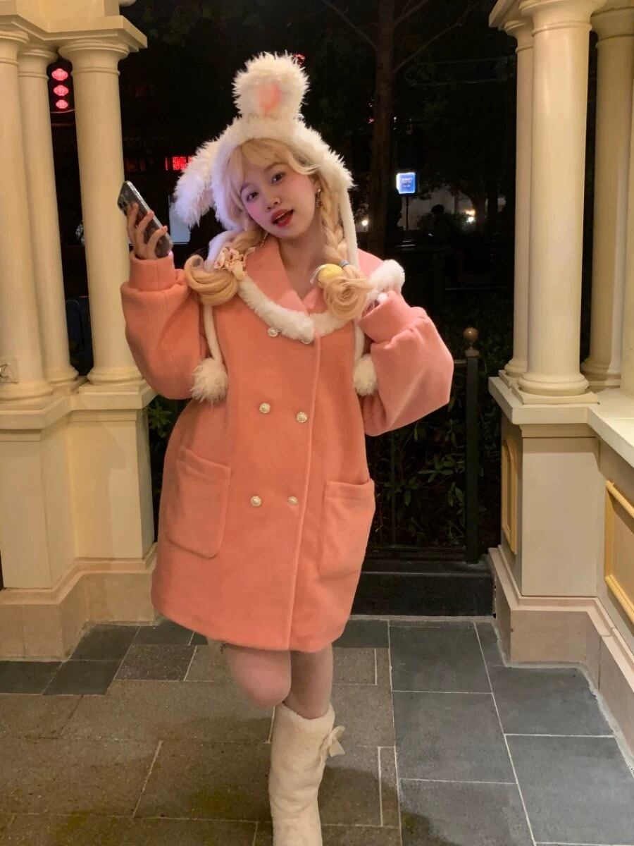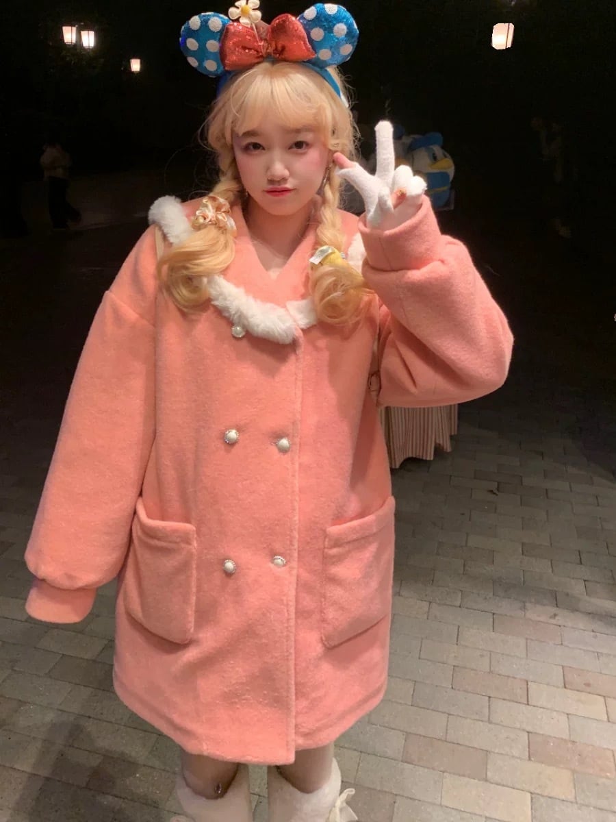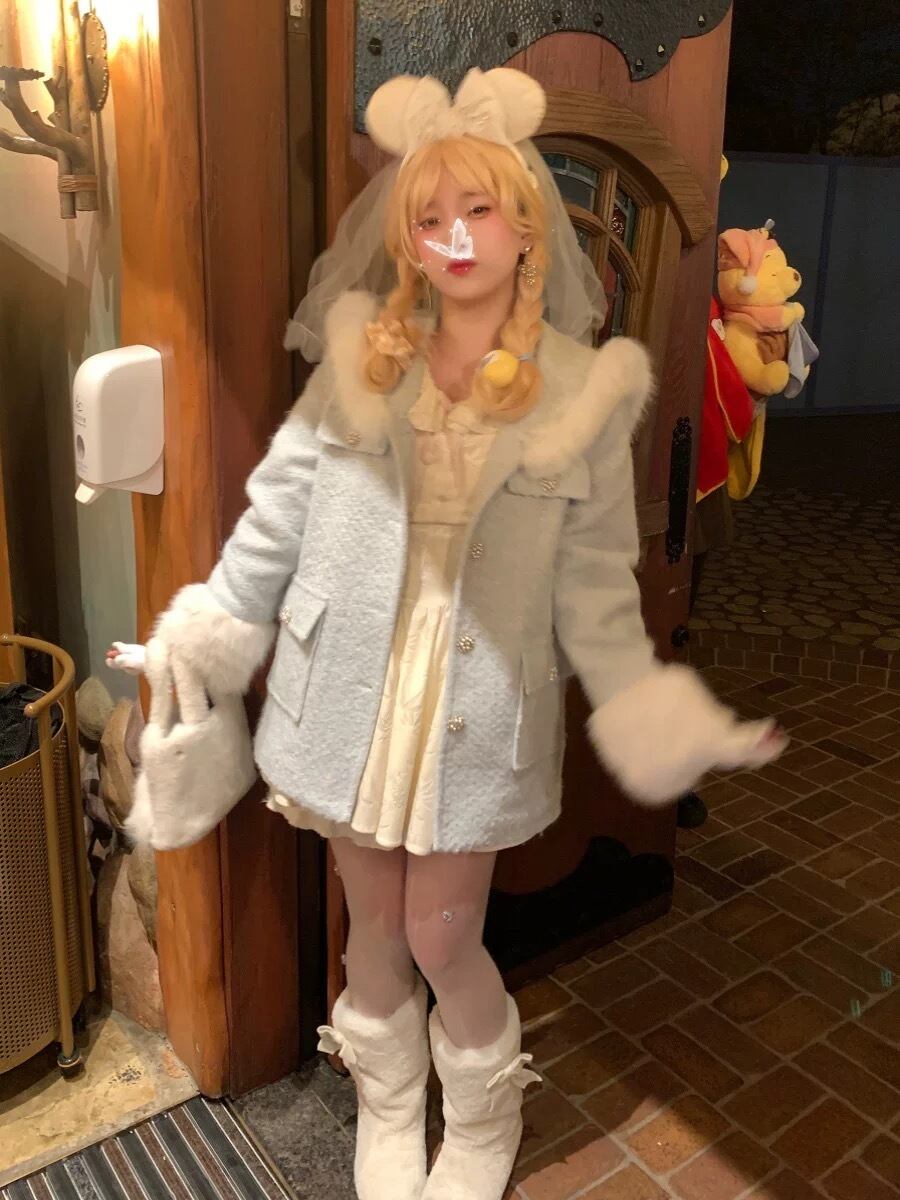 オレンジ 水色 ガーリー ワンピース アウター カーディガン ジャケット アウター ファー