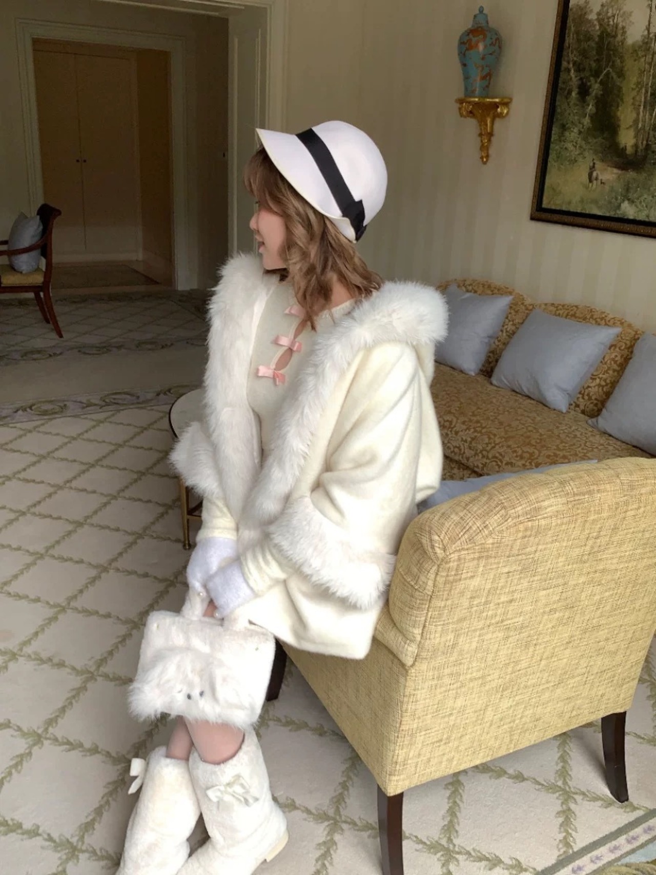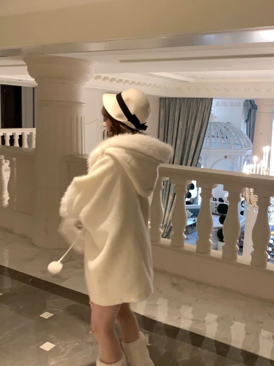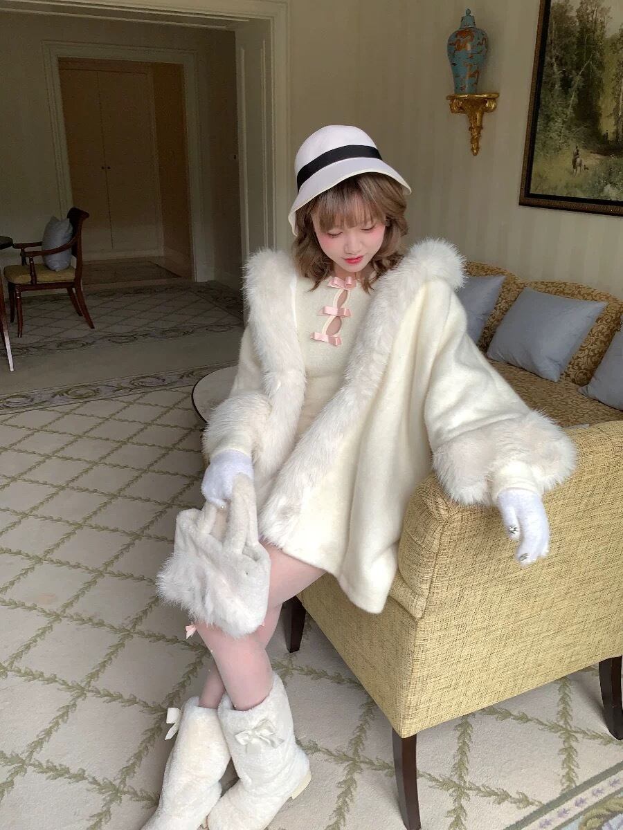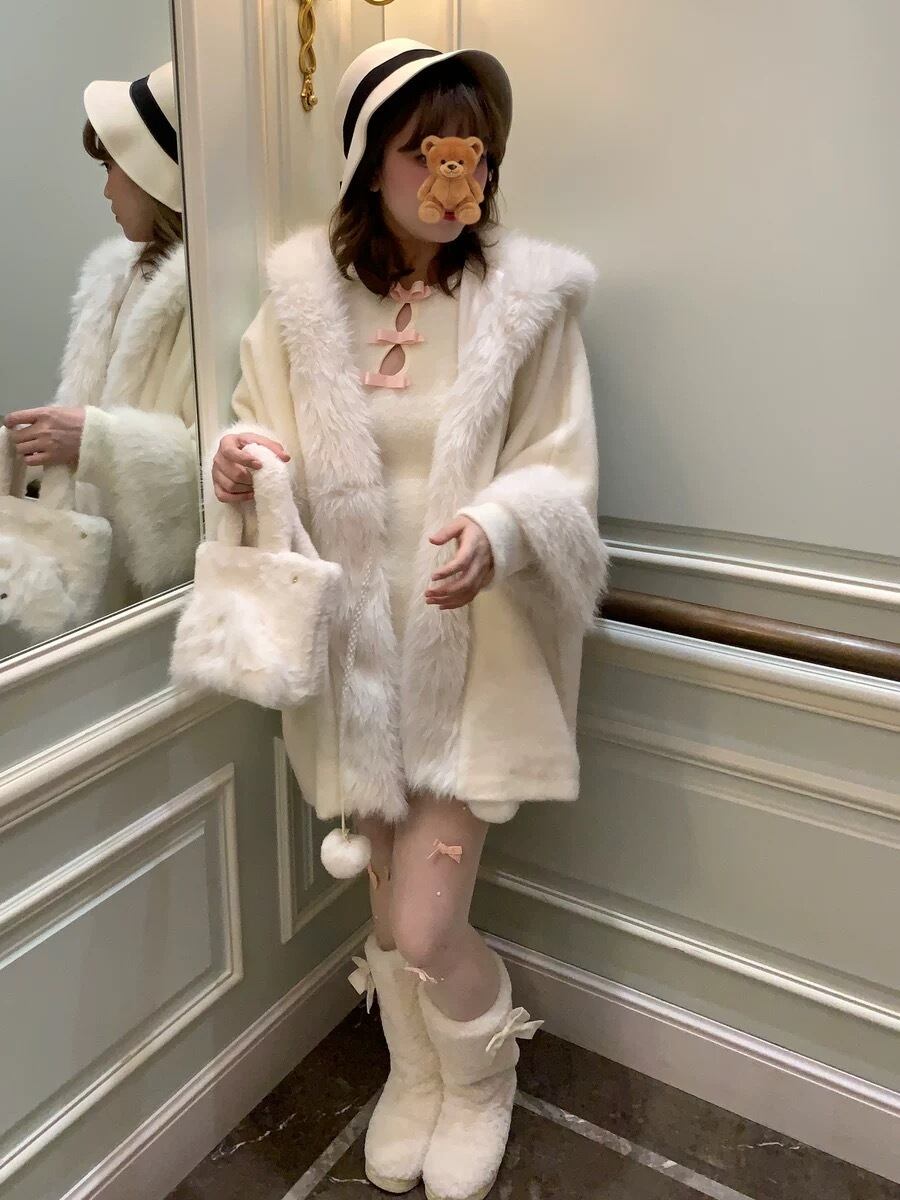 白 アウター カーディガン お嬢様 コート ファー ホワイト パーカー フード ワンピース