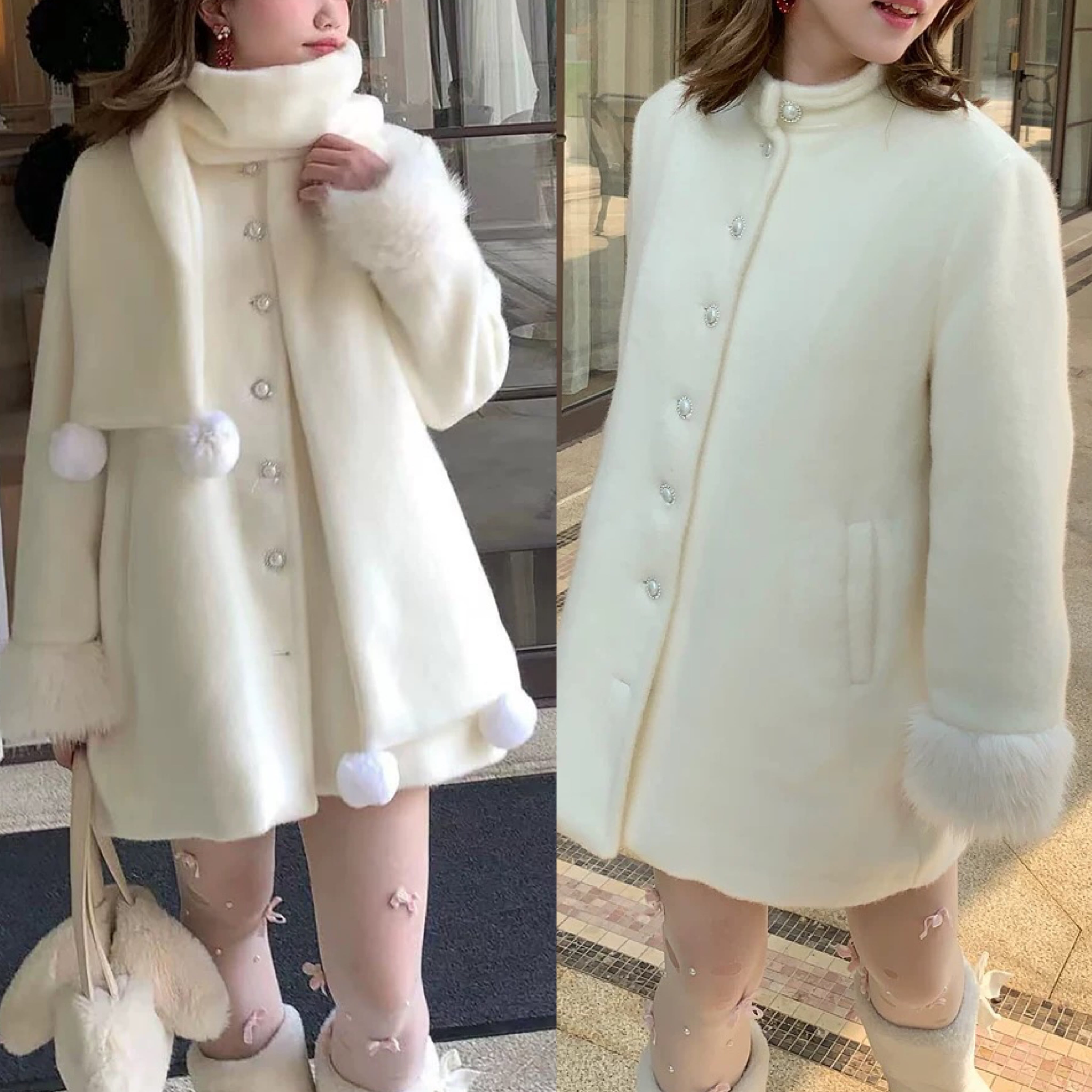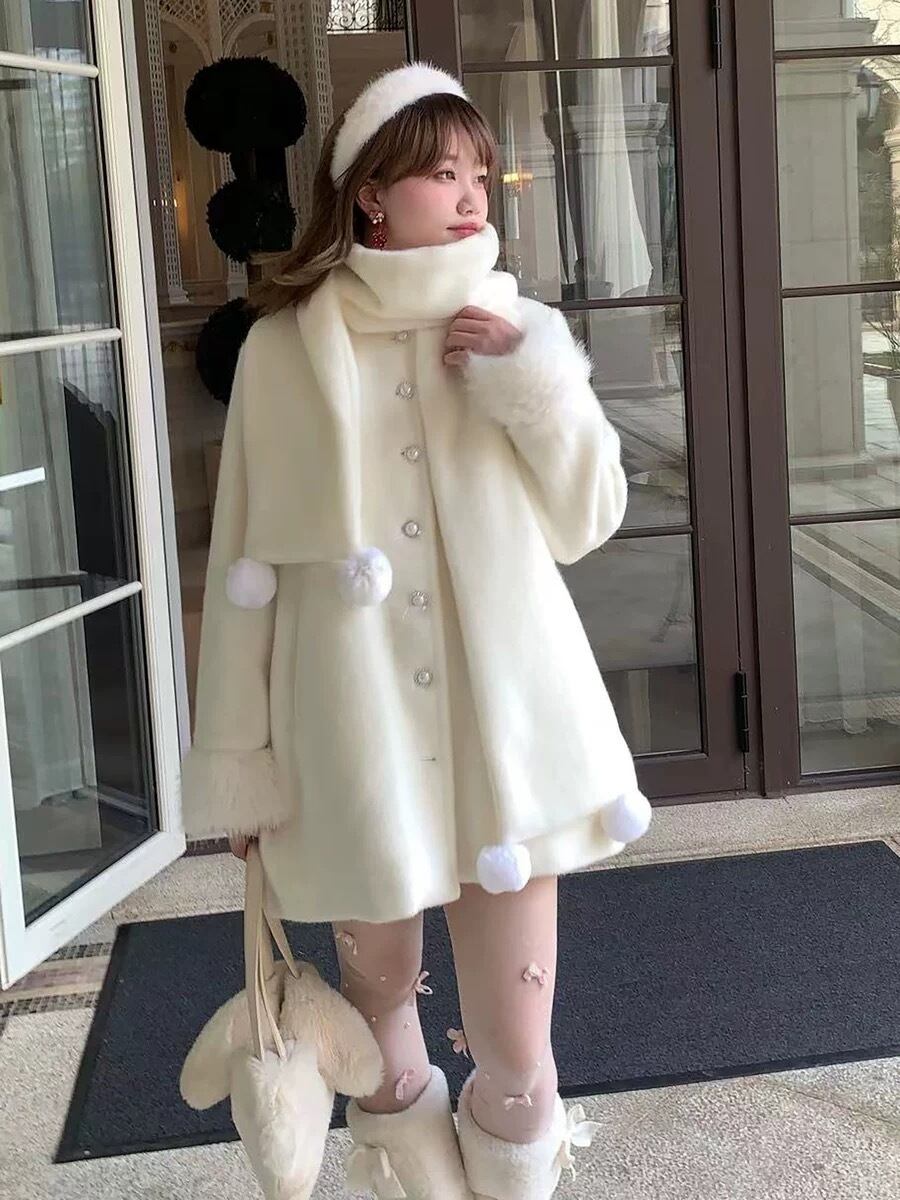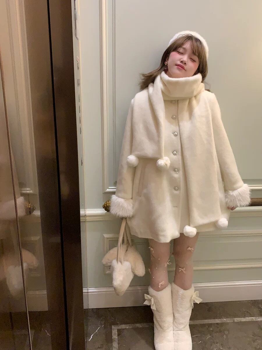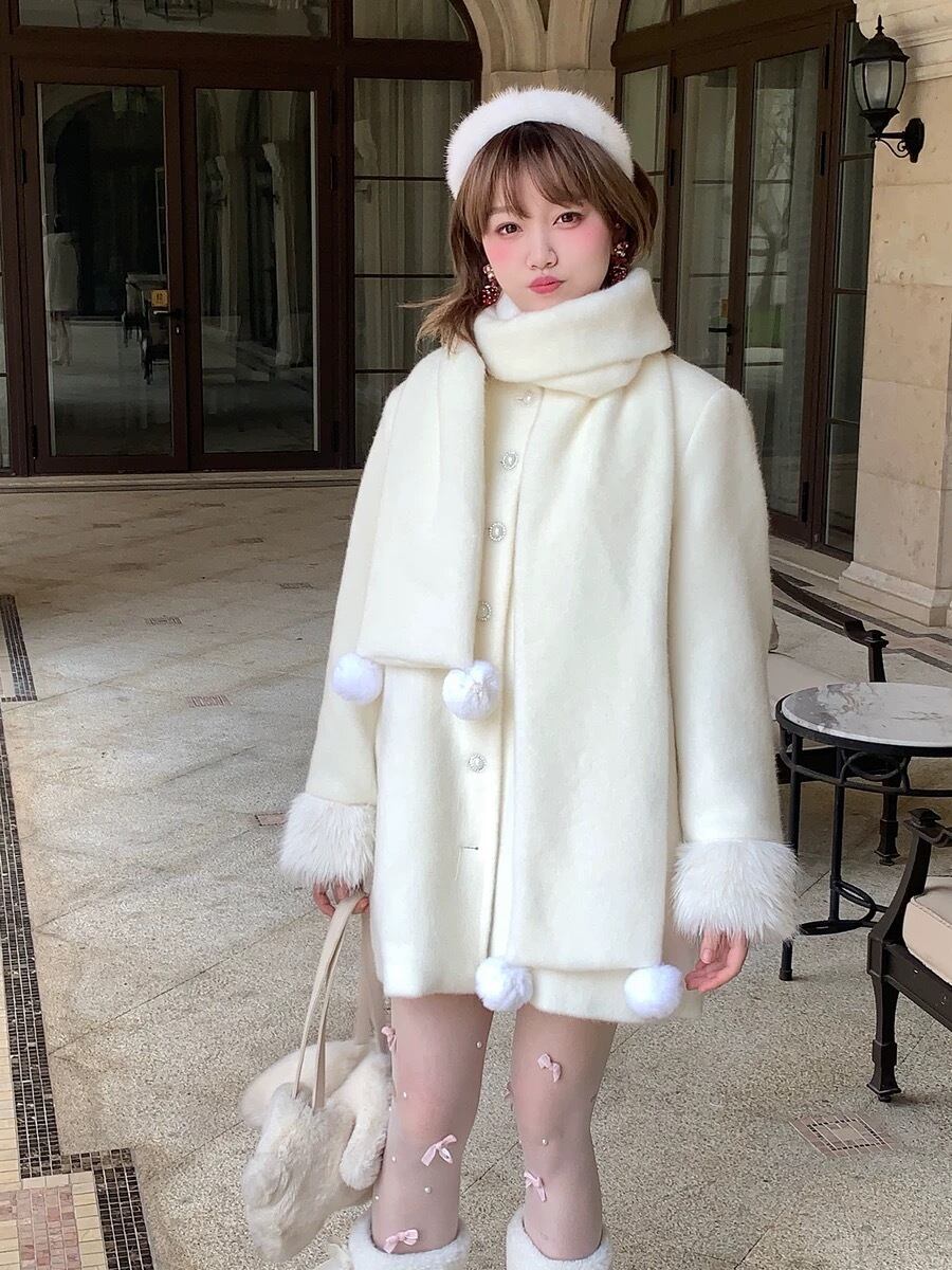 【マフラーつき】アウター 白 ホワイト ガーリー お嬢様 カーディガン コート ジャケット ワンピース ホワイト