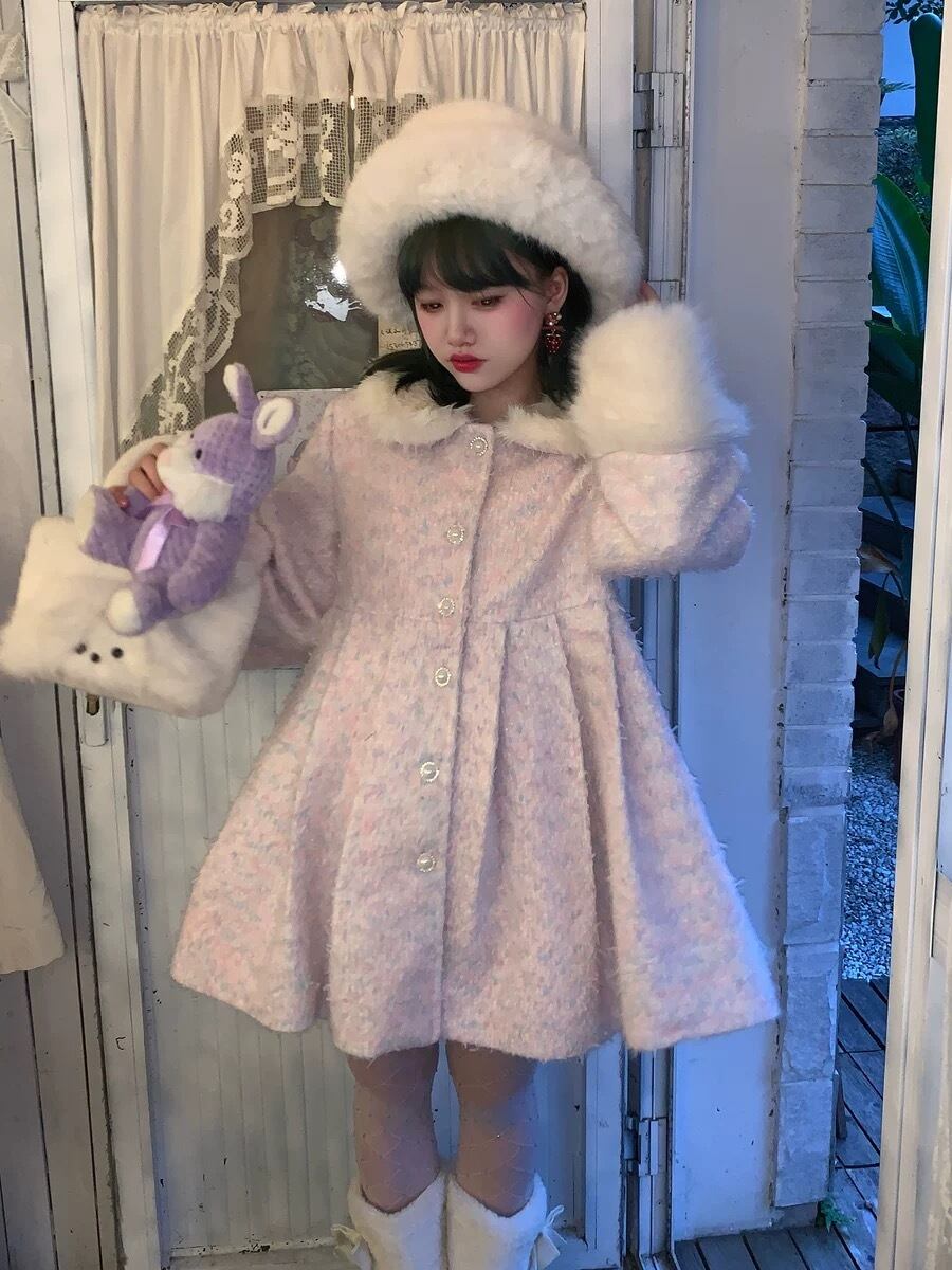 ワンピース ピンク ジャケット ガーリー アウター コート ファー お嬢様 姫 ガーリー