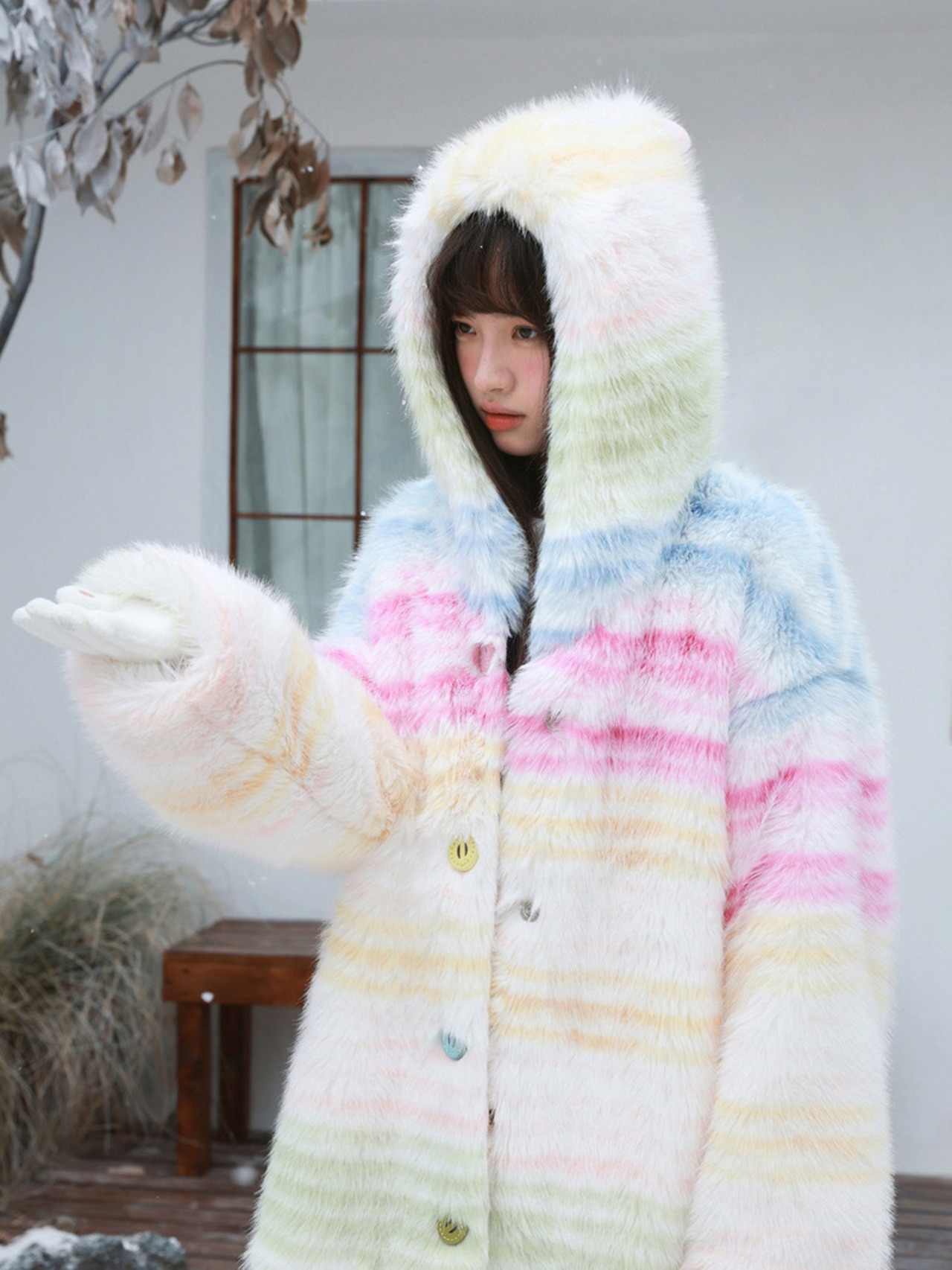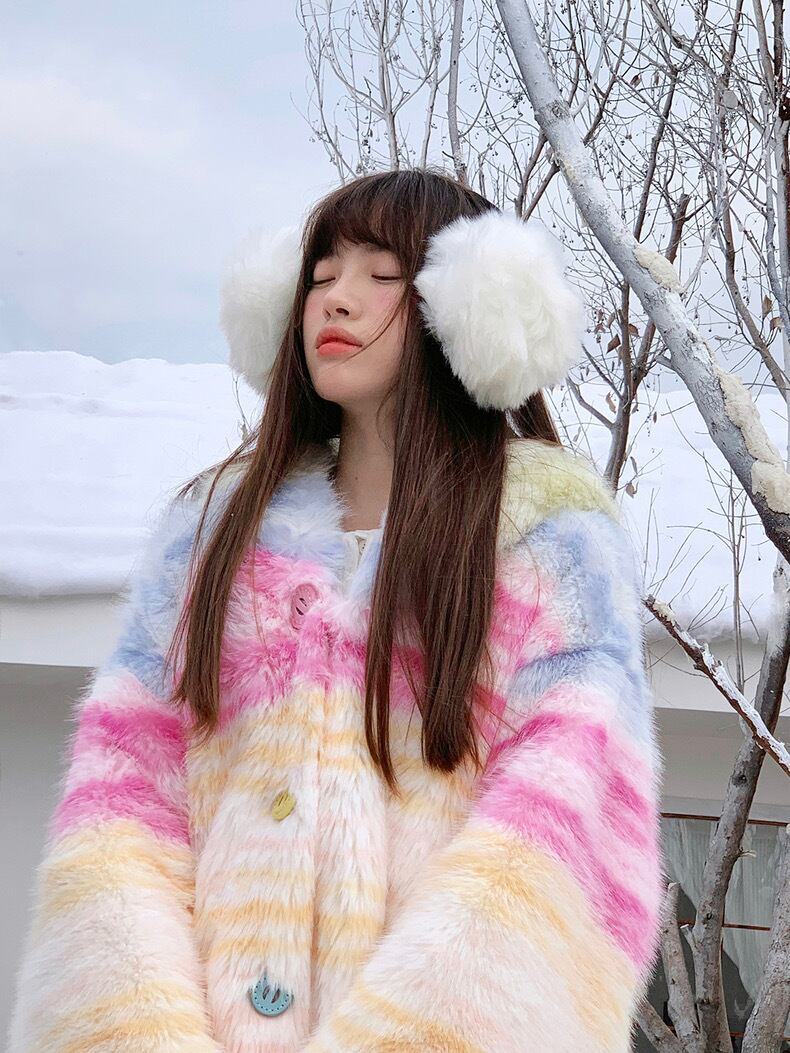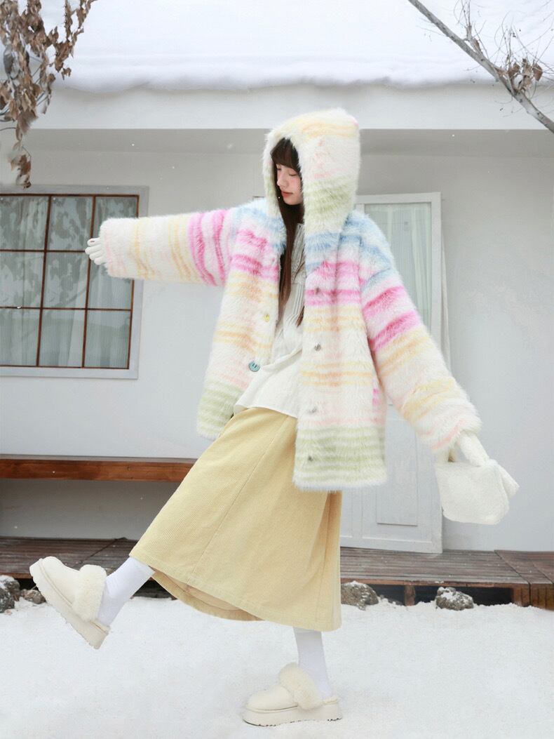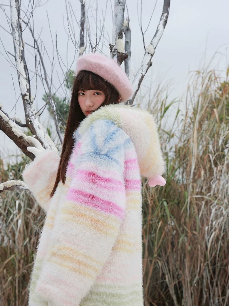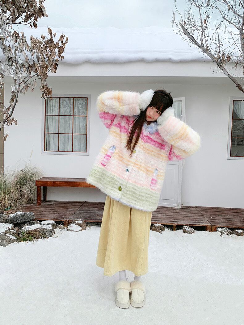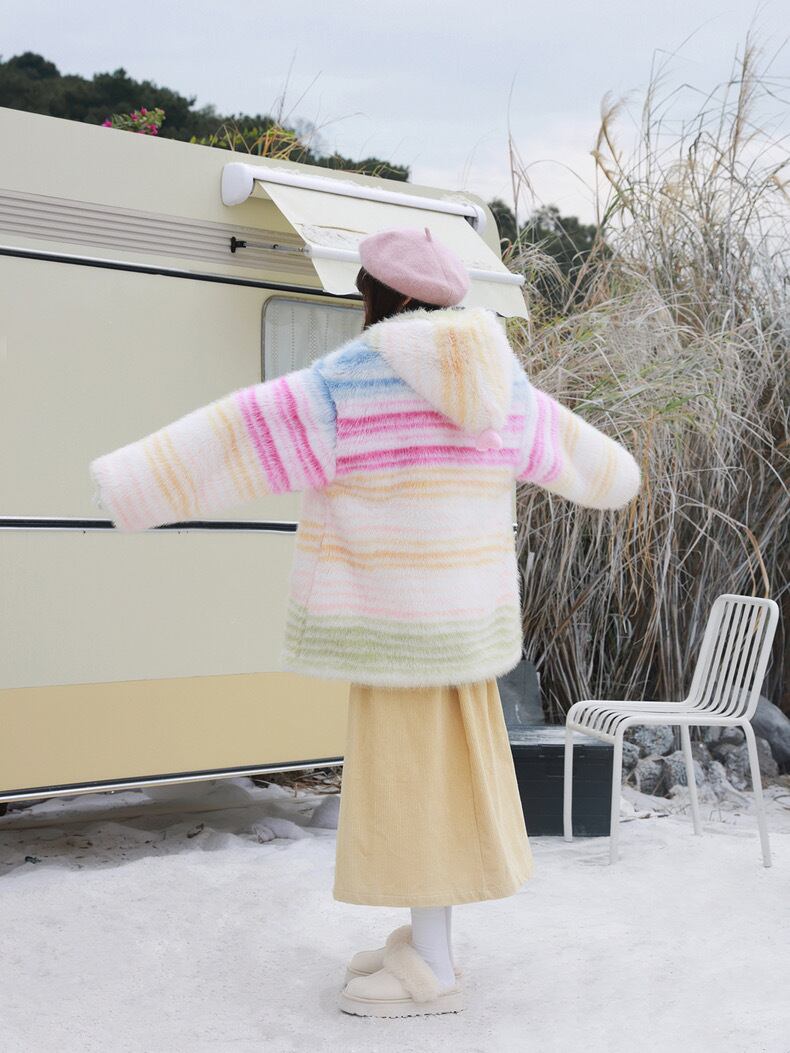 アウター チェック ボーダー パーカー カーディガン コート 黄色 ピンク 水色 ジャケット 虹 レインボー