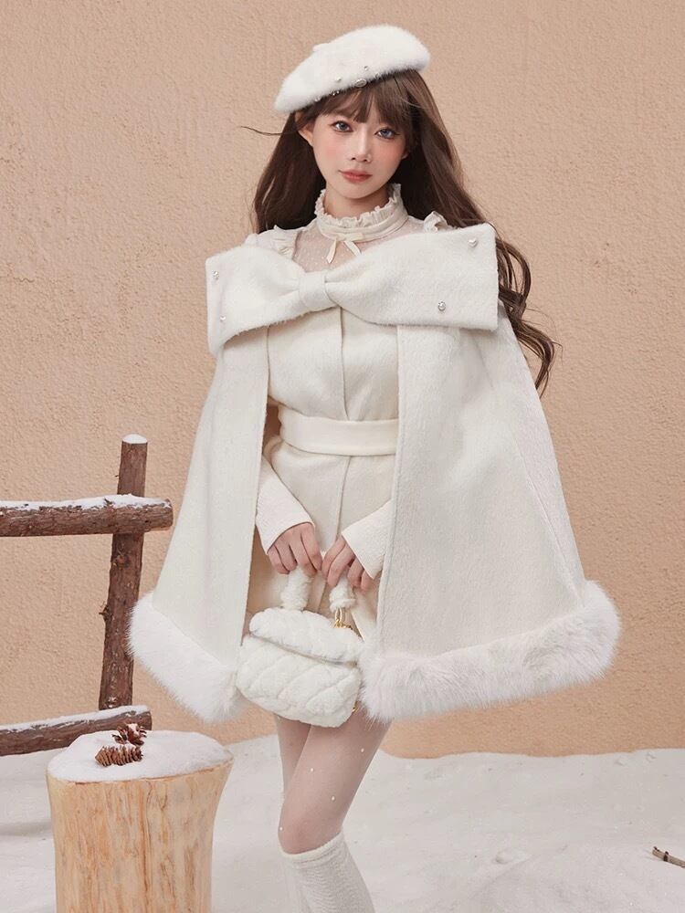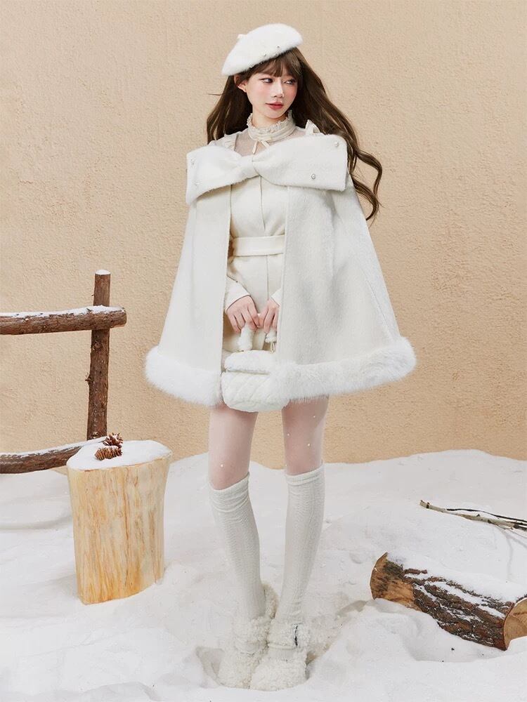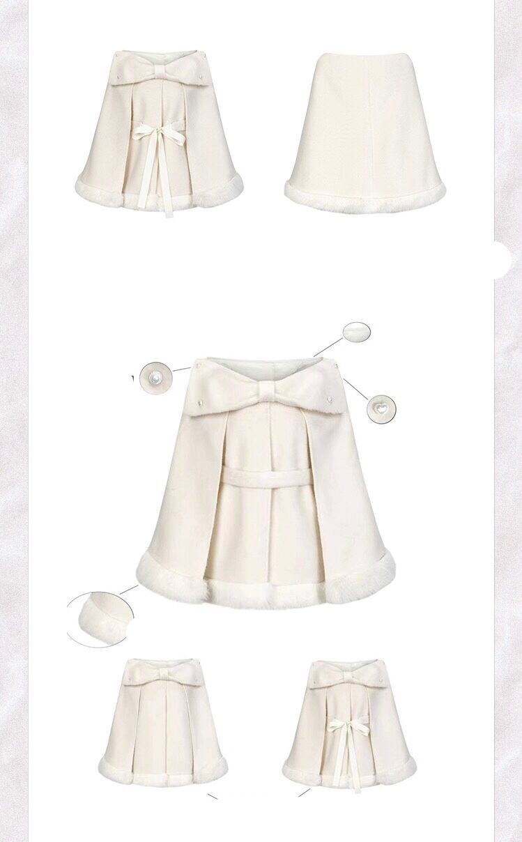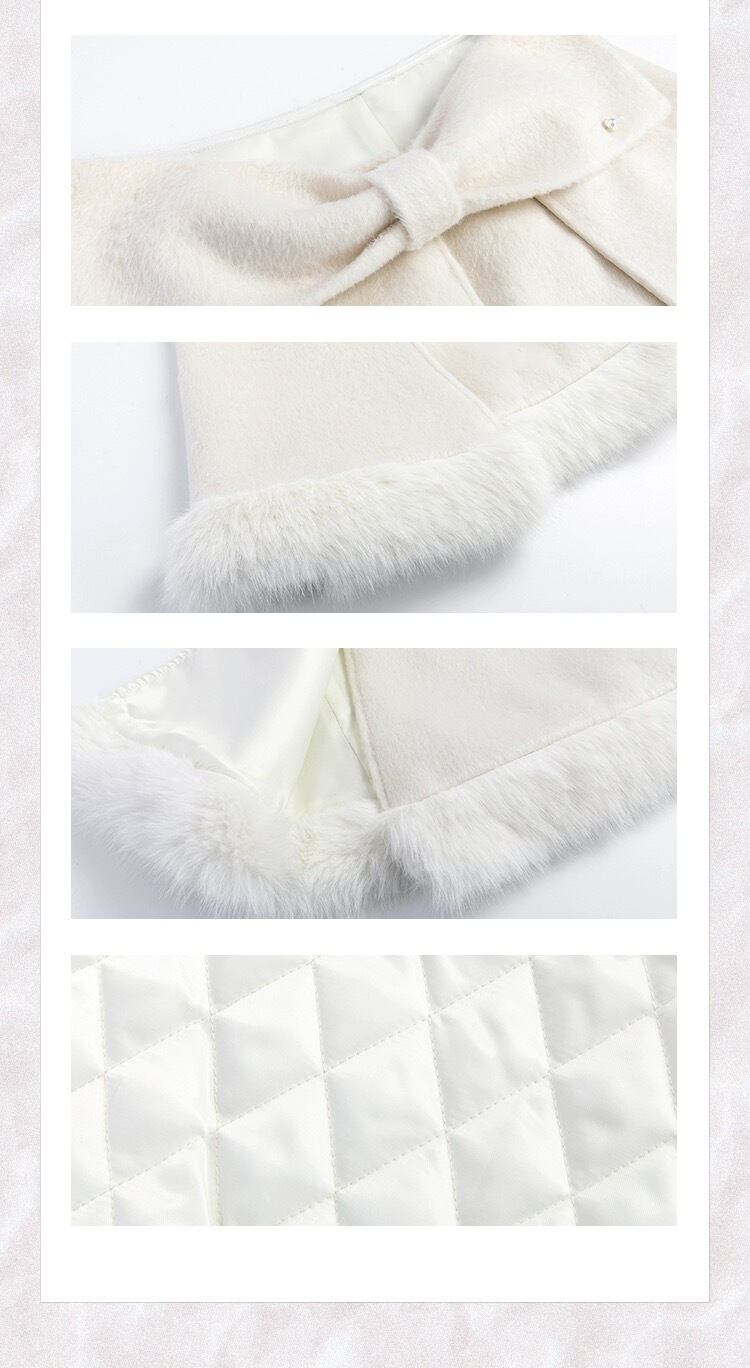 白 マント ポンチョ ホワイト ファー コート アウター ガーリー リボン ワンピース お嬢様