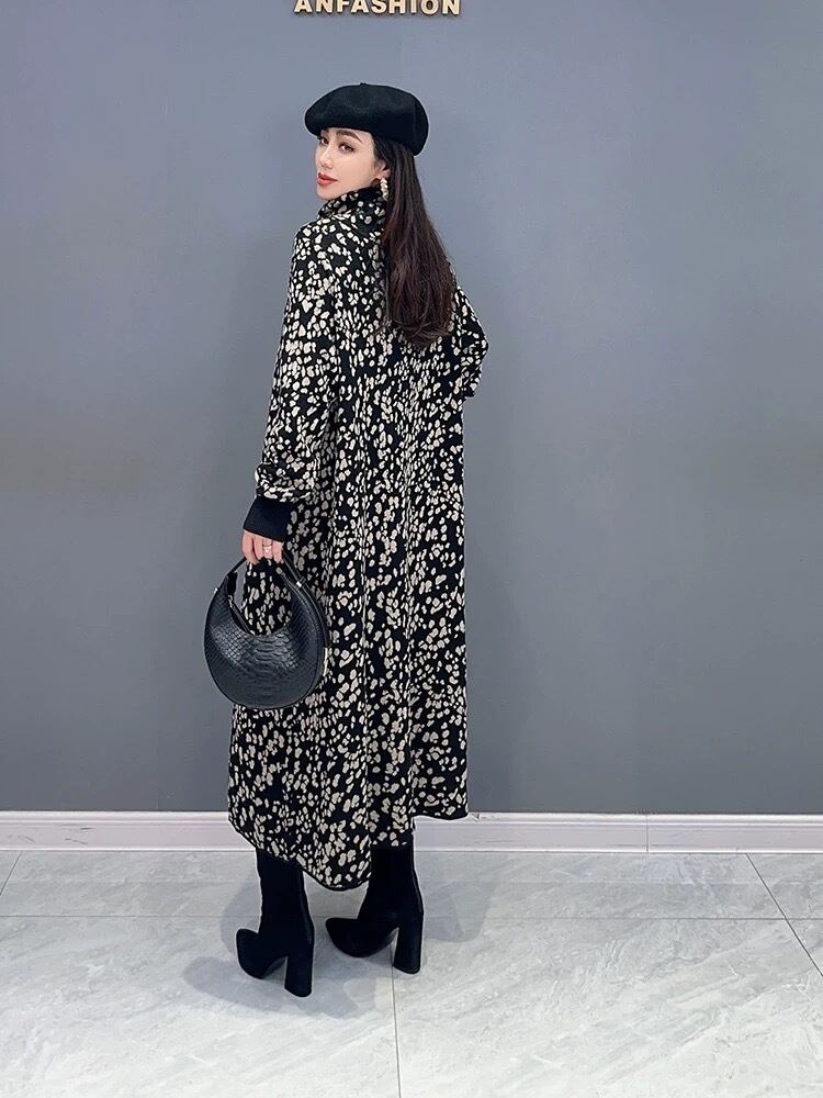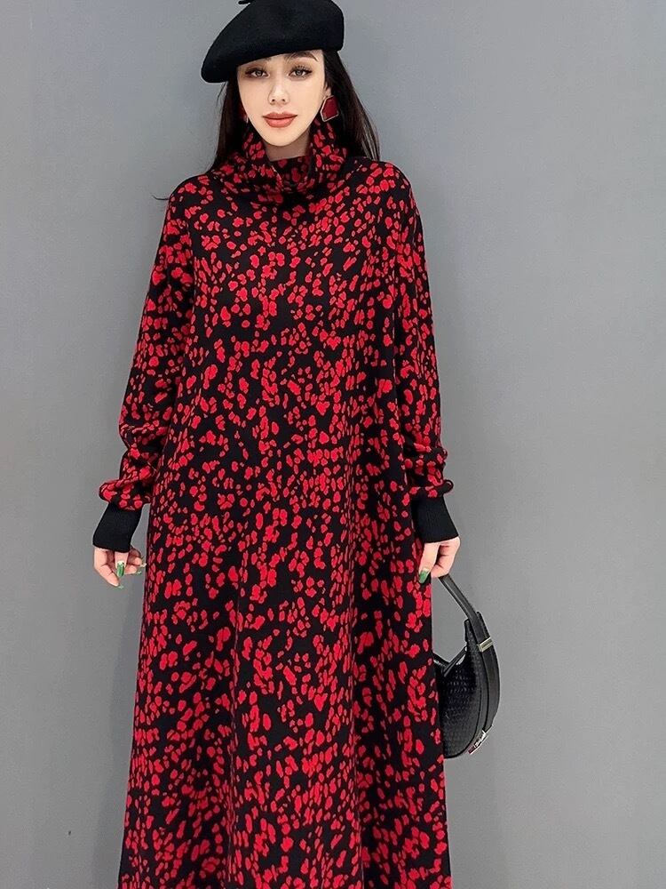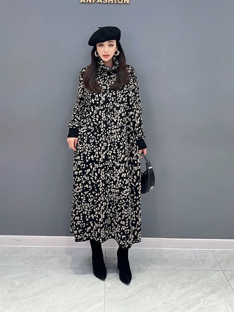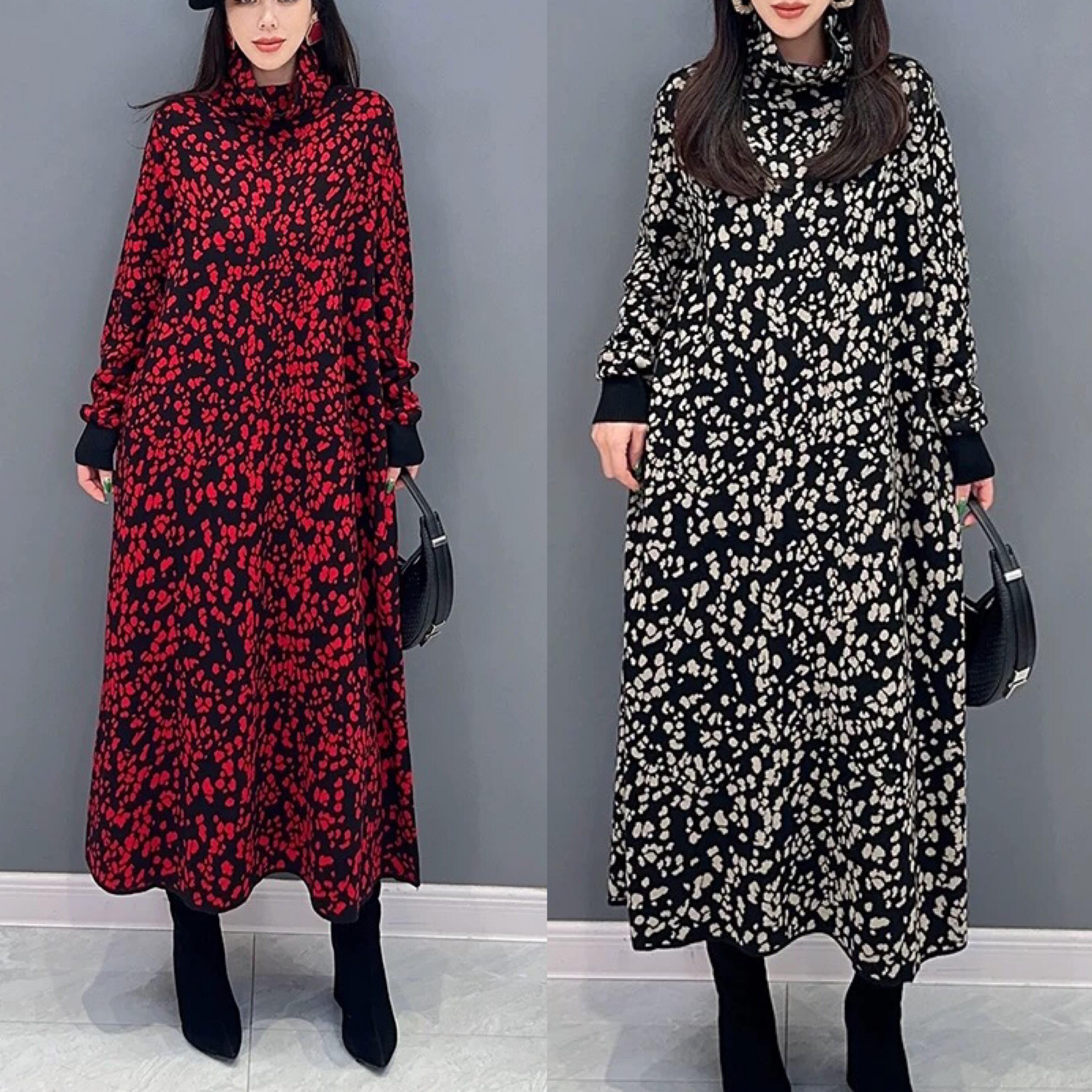 ハイネック 白 黒 レオパード セーター カーディガン ワンピース ゆったり XL