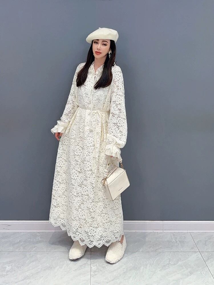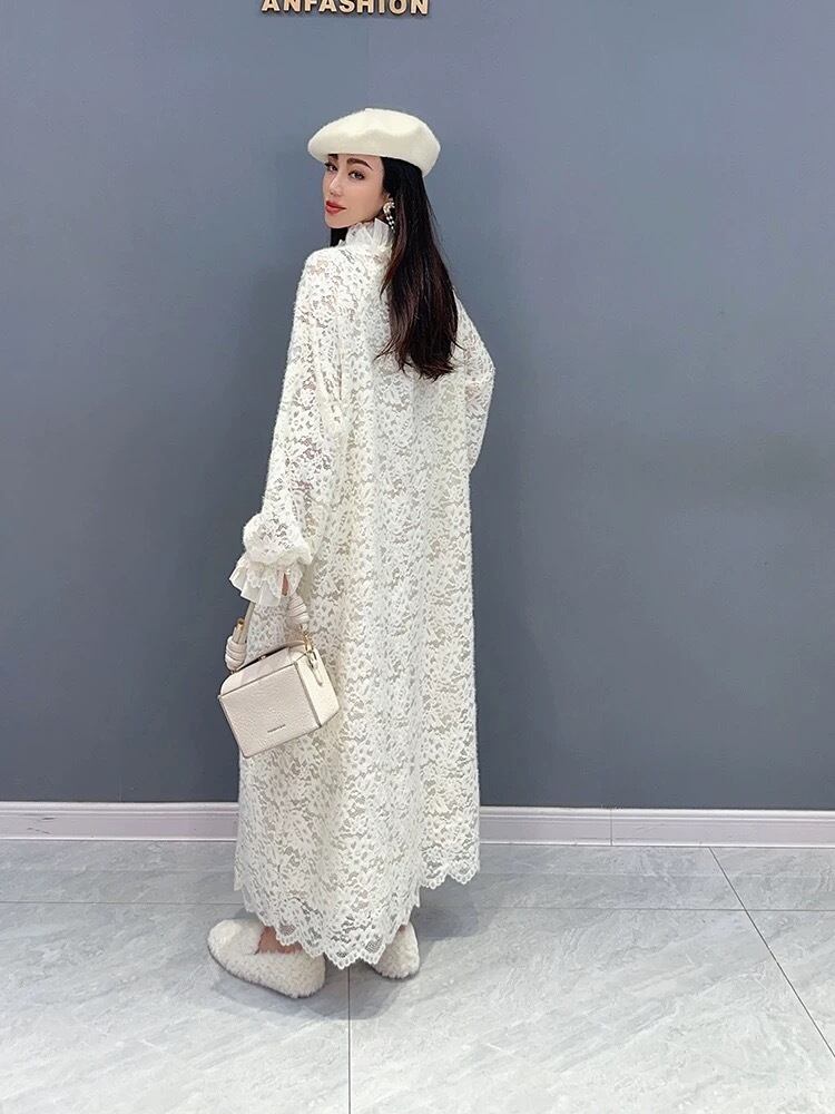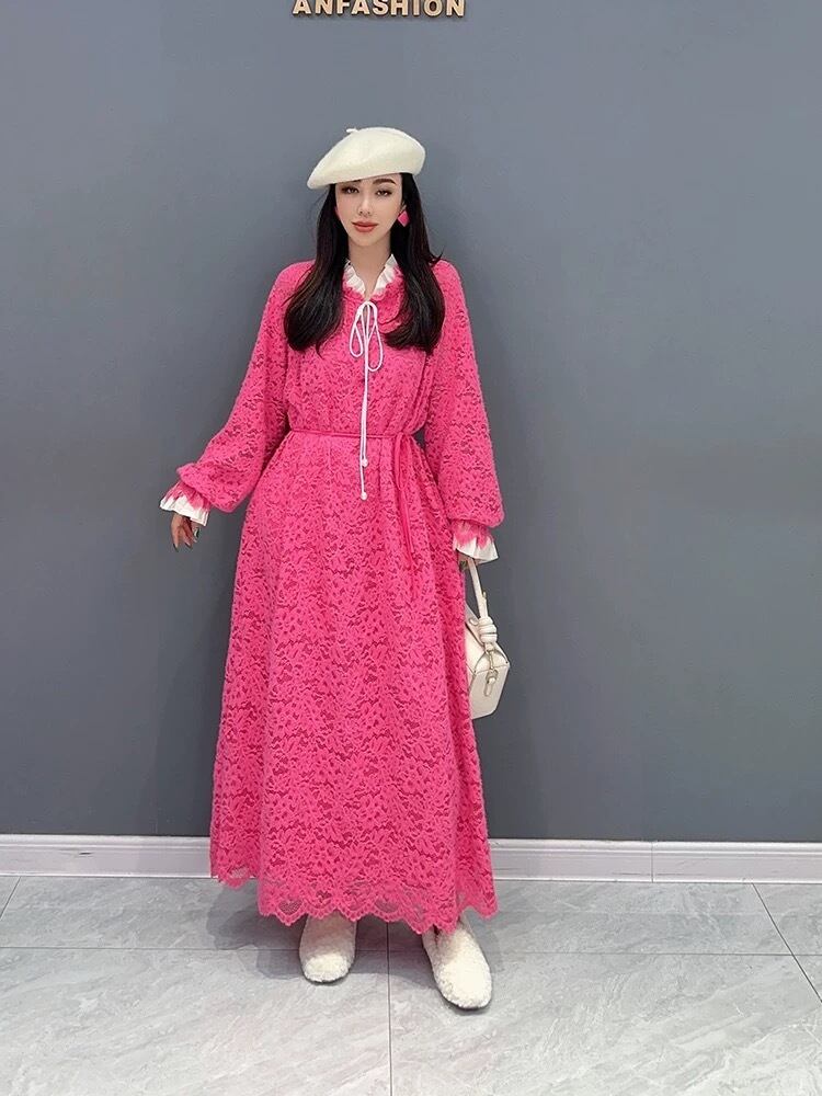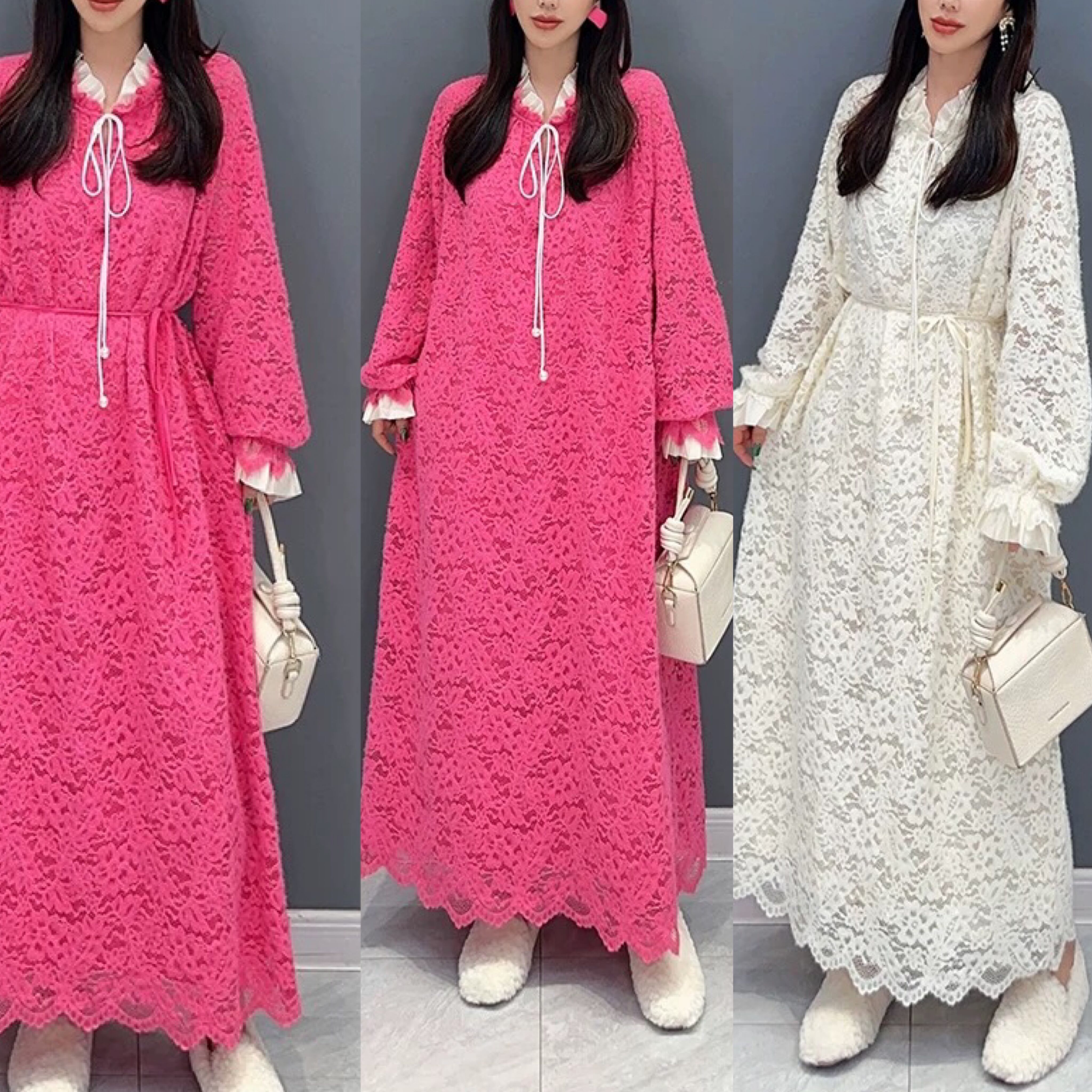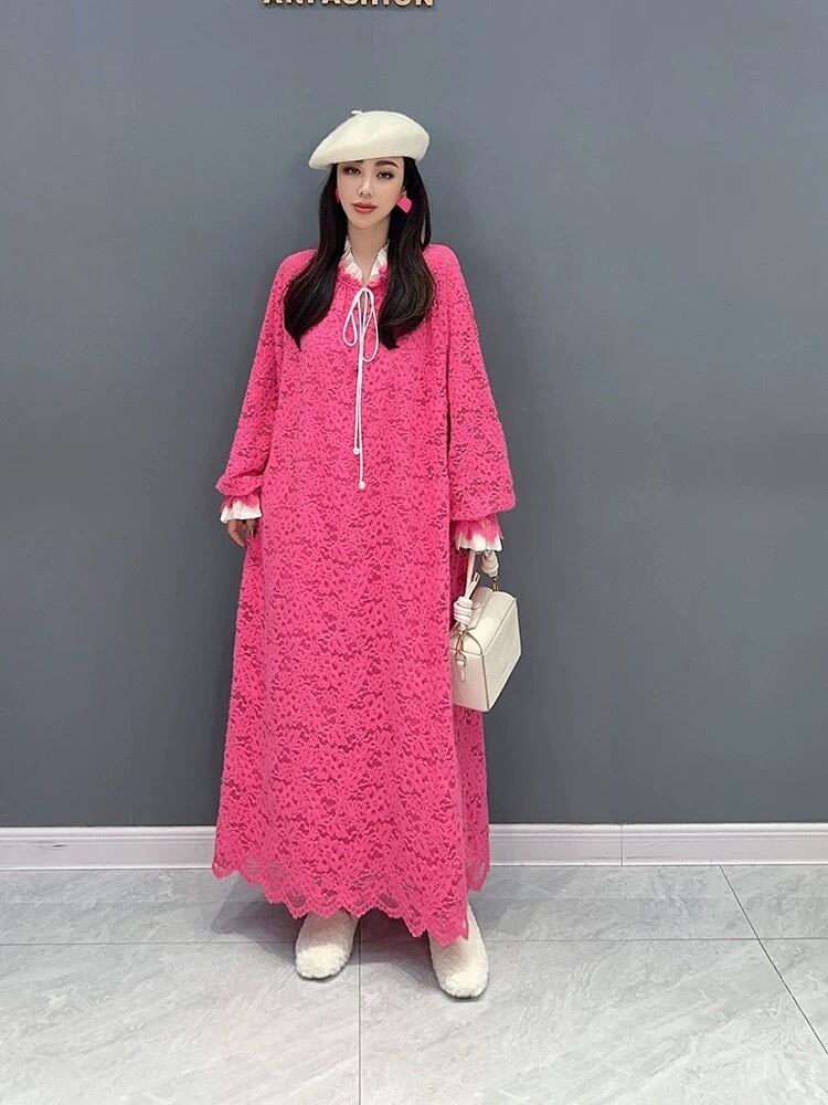 ピンク ブラウス ワンピース マキシ 花柄 白 ゆったり XL ロング