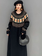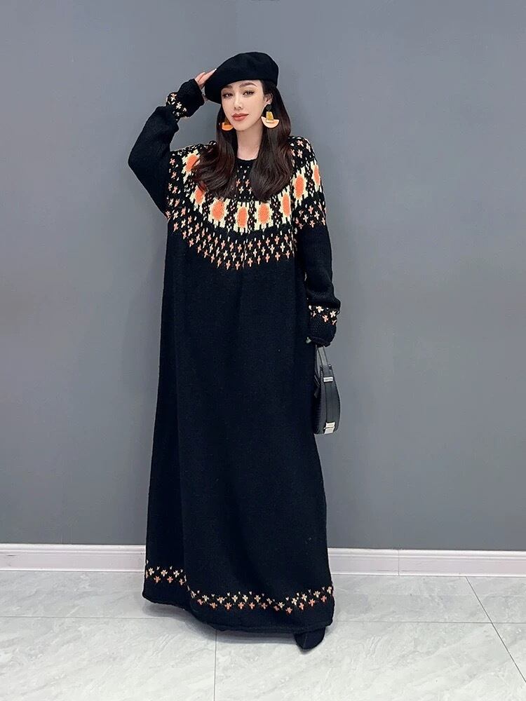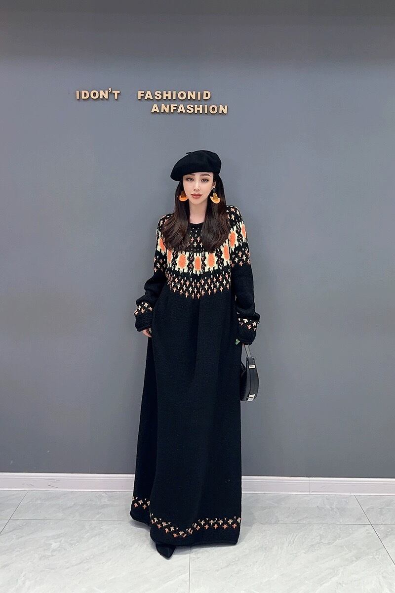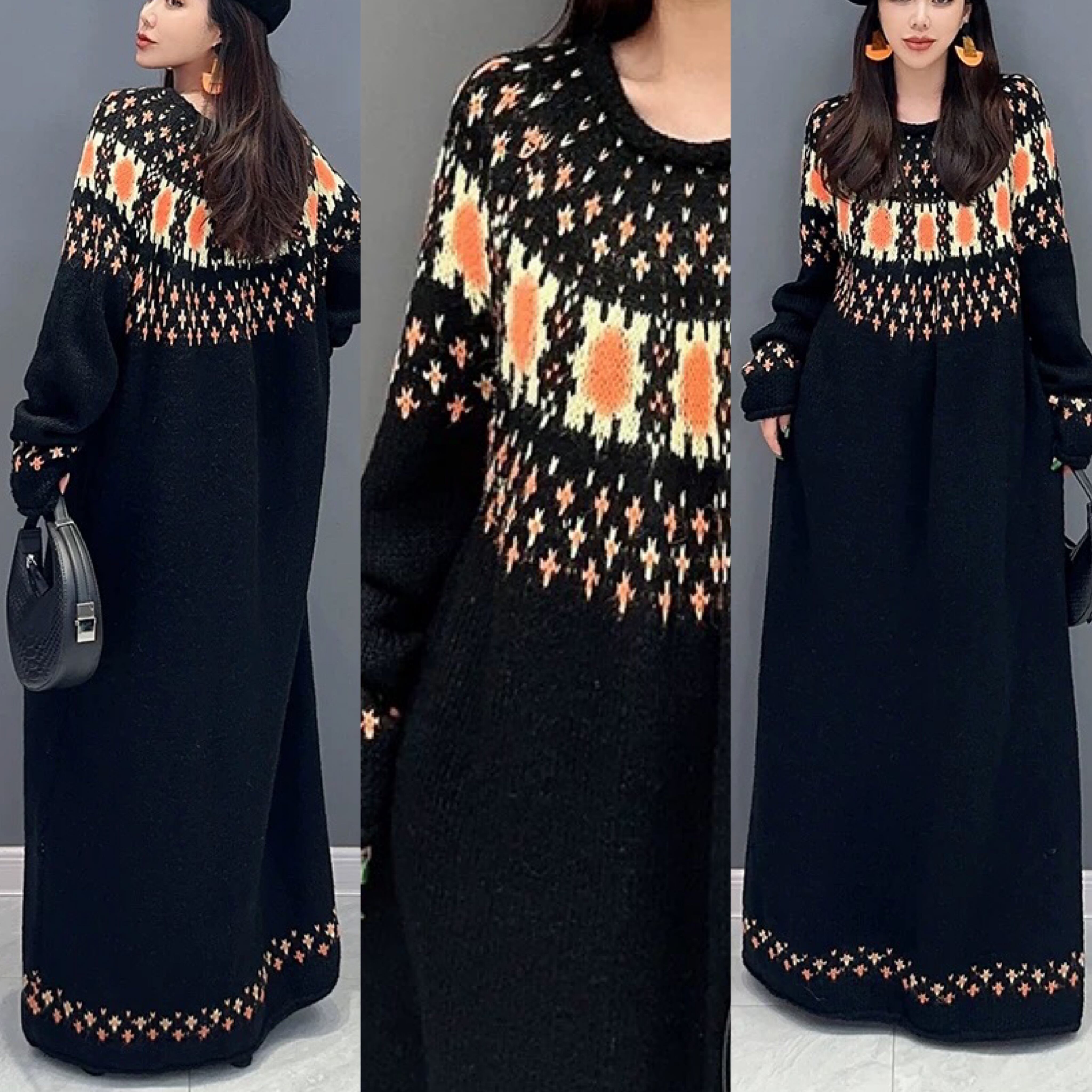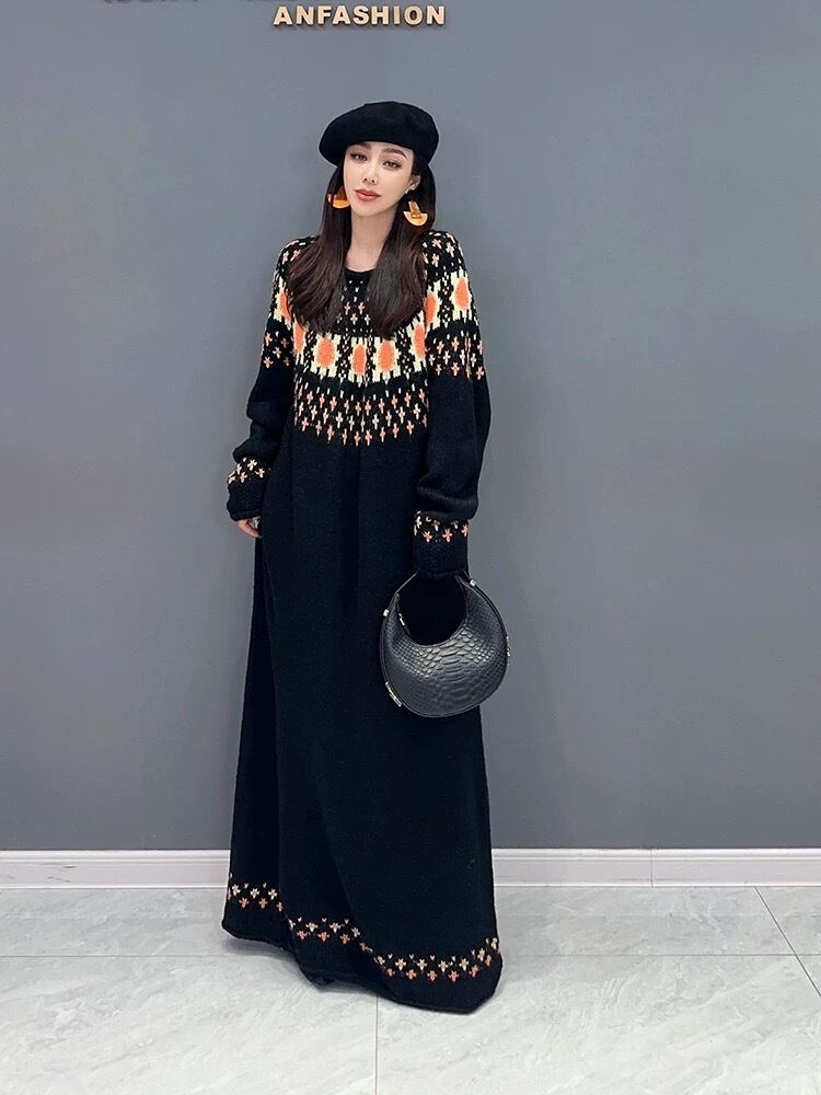 セーター ワンピース ゆったり XL マキシ ロング 黒 オレンジ