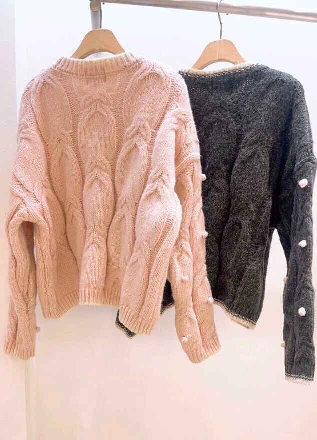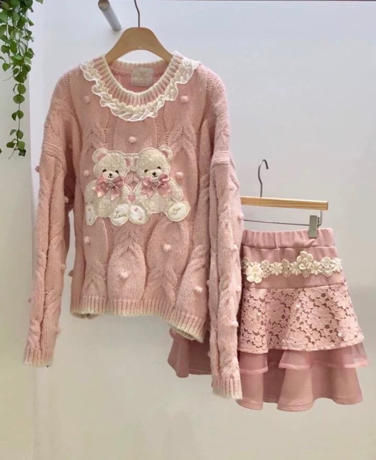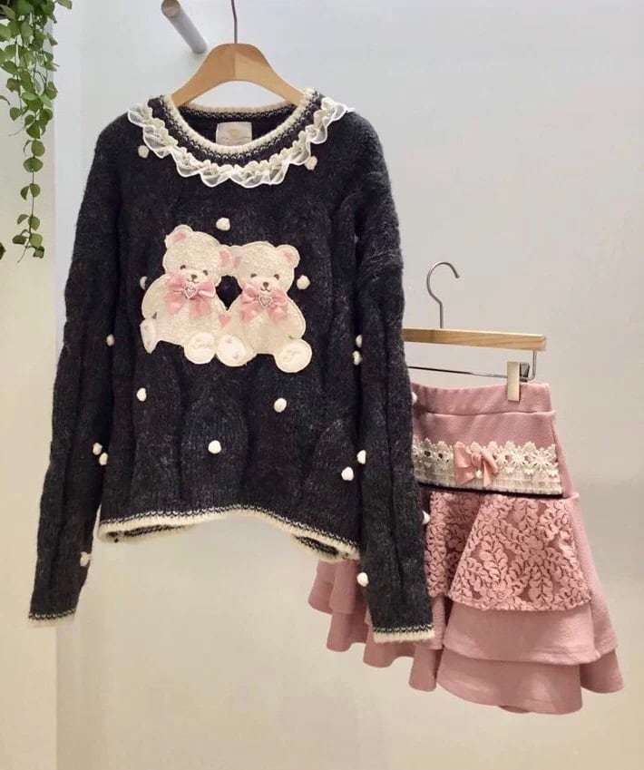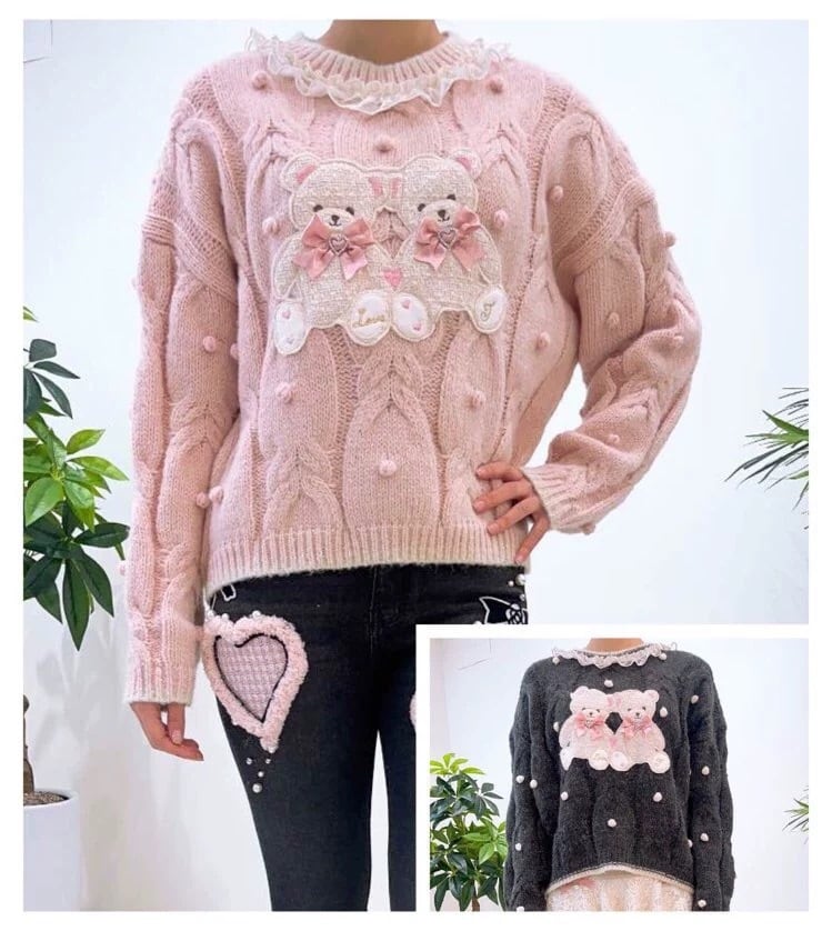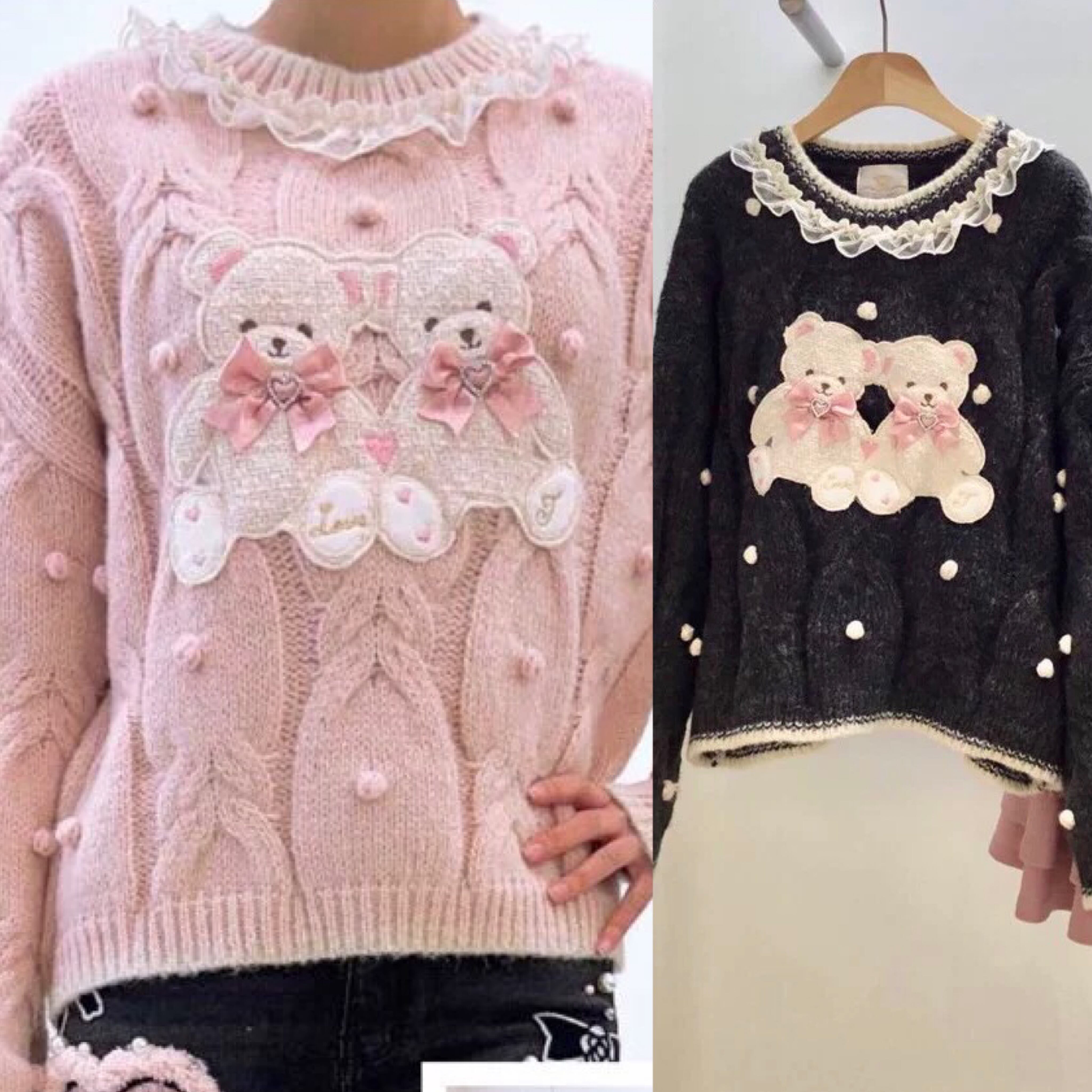 くまさん ピンク グレー 黒 セーター ニット ガーリー カーディガン トップス リボン