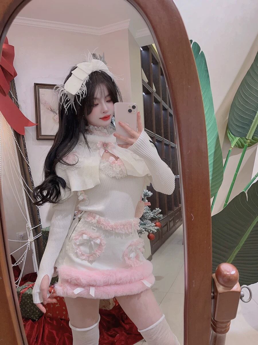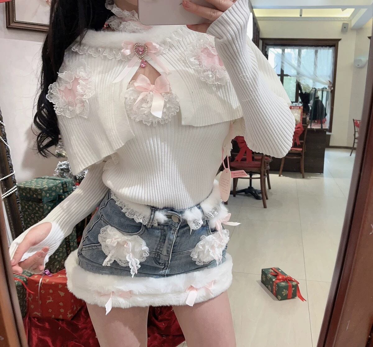【トップス】ブラウス セーター ニット ハート ガーリー カーディガン ブラウス リボン 白 ガーリー