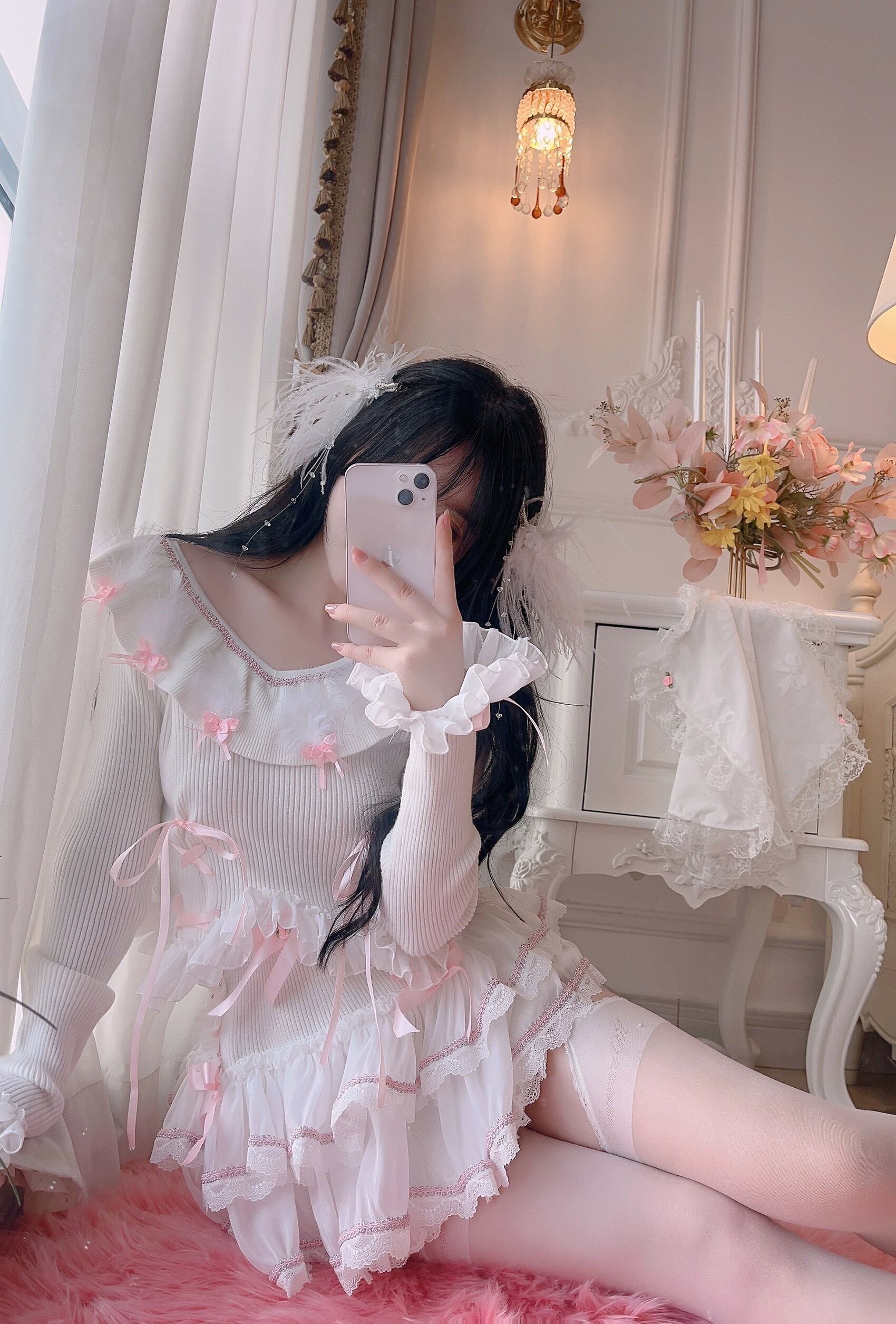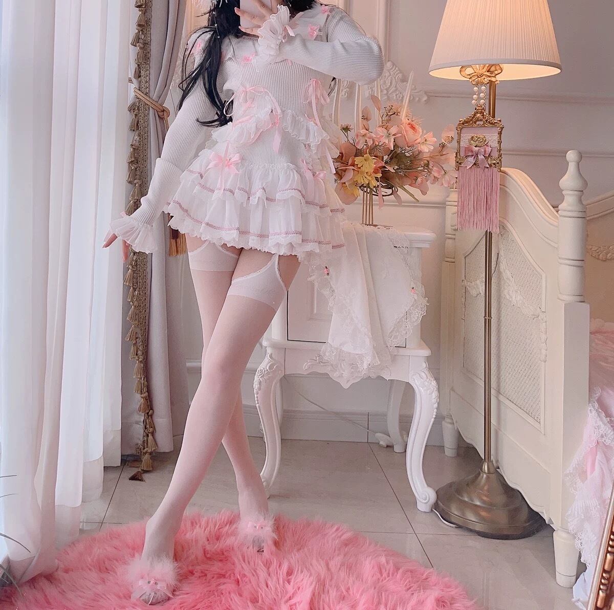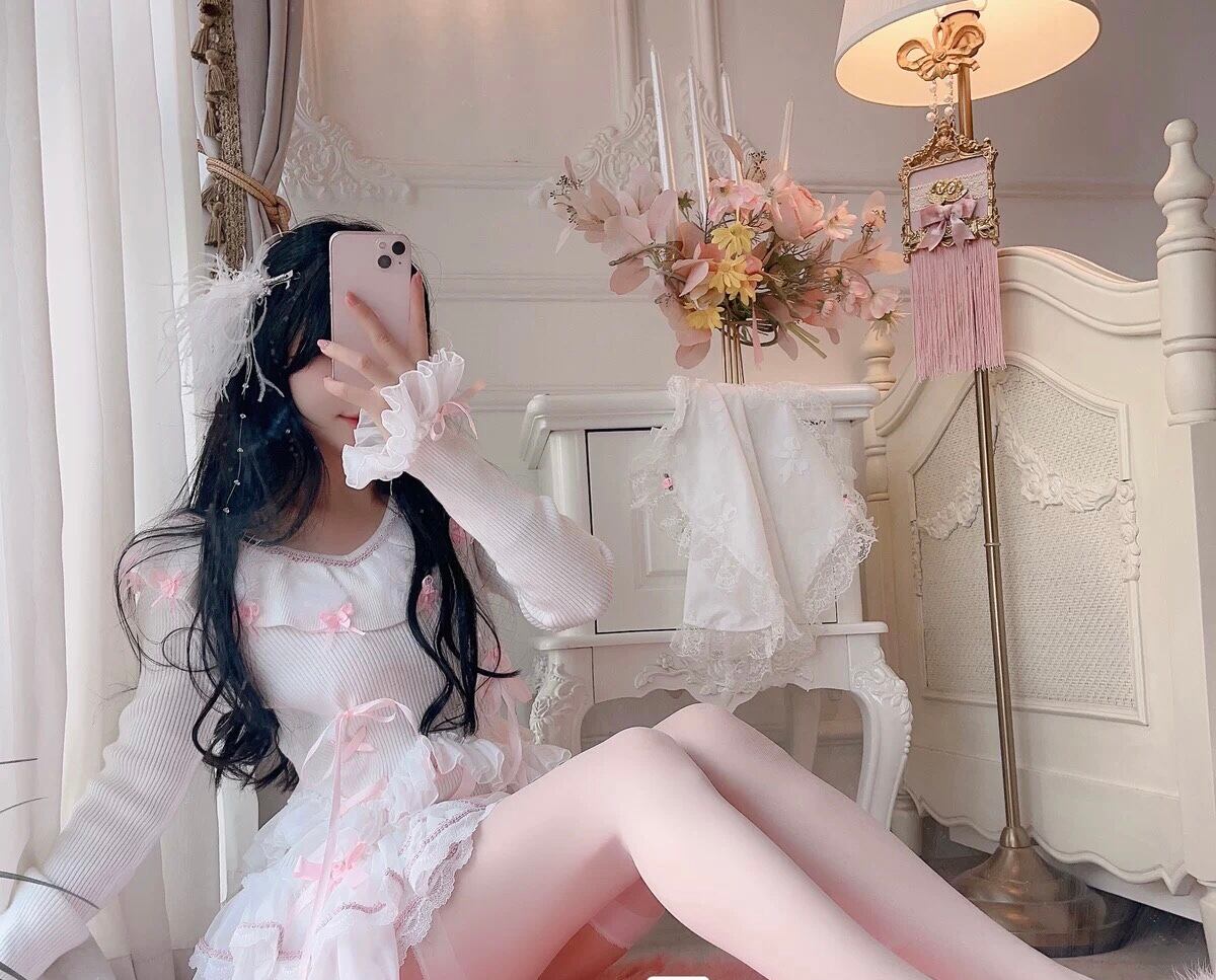 ブラウス ニット スカート 白 ピンク リボン ガーリー カーディガン ニット ブラウス ミニスカート 姫 ロリータ