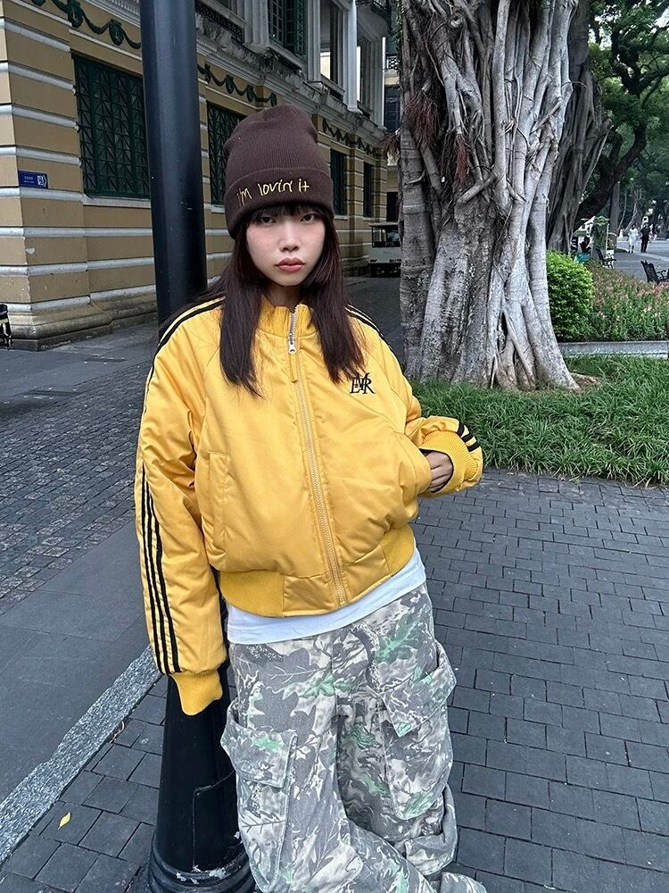 【リバーシブル❣️ユニセックス】ダウン アウター ジャケット コート カーディガン 黄色 ストリート カジュアル 青 黒