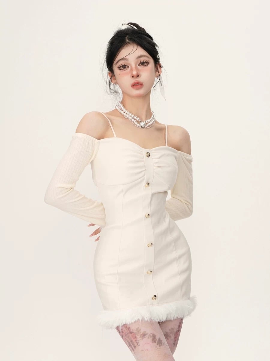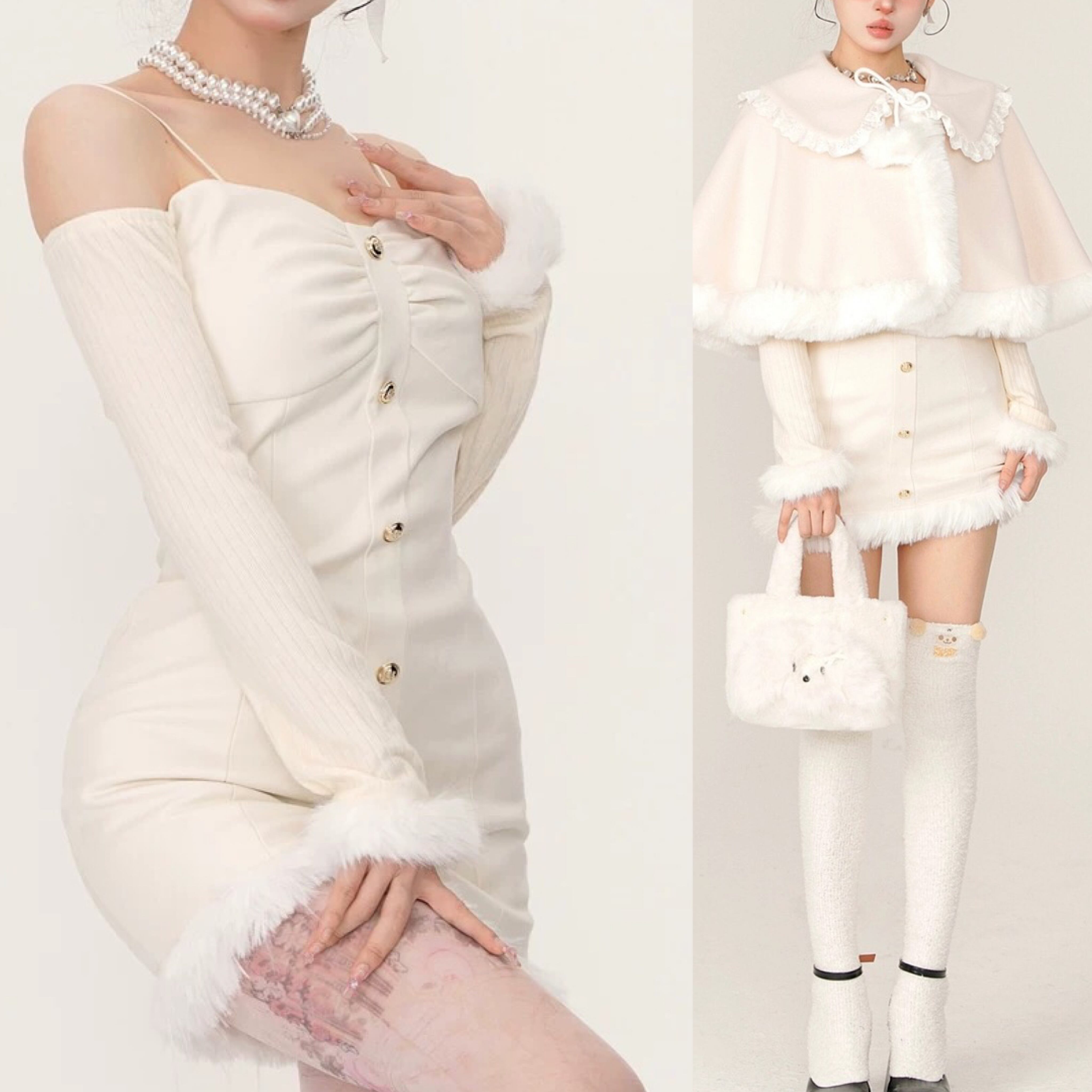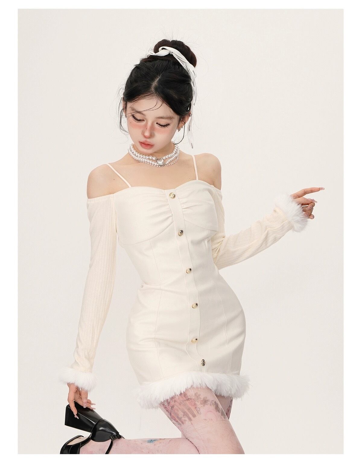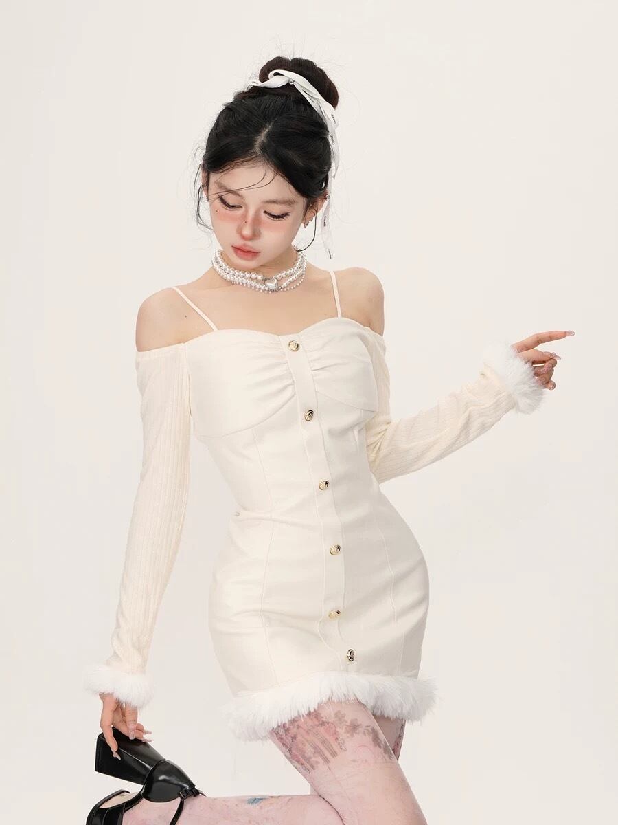 白 ホワイト オフショルダー ファー セクシー ワンピース ホワイト ガーリー