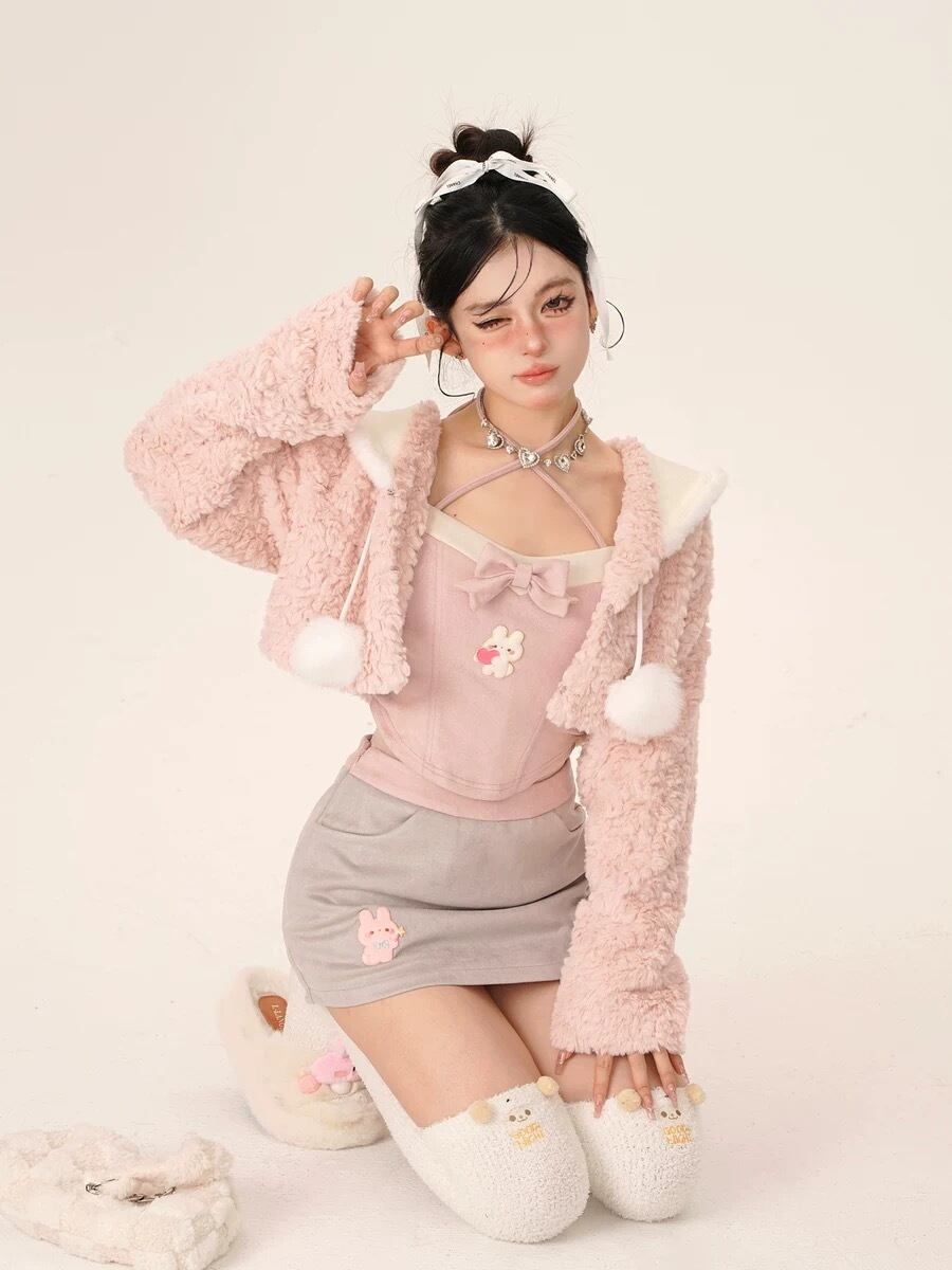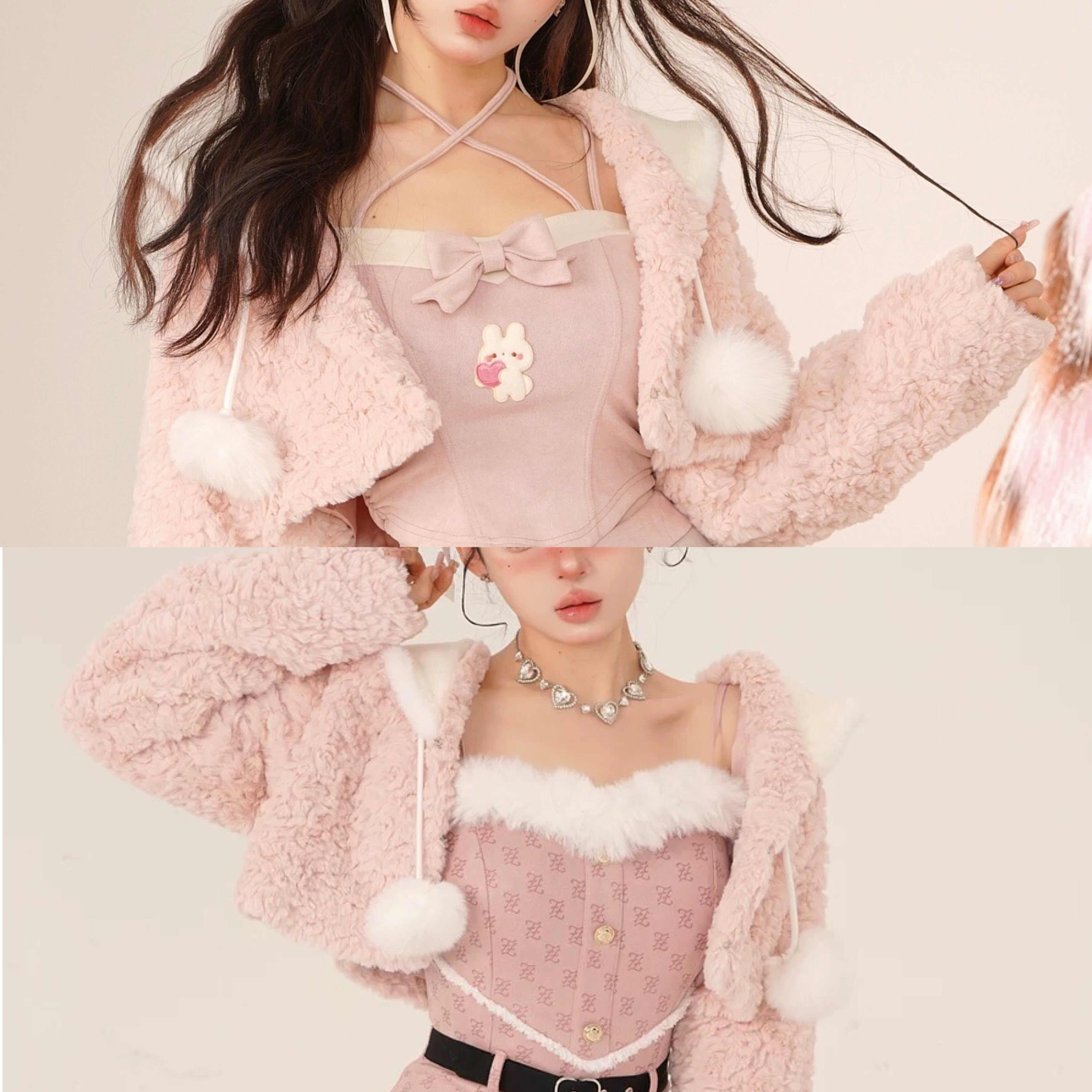 カーディガン アウター ポンチョ ピンク パーカー フード コート カーディガン ピンク ぽんぽん