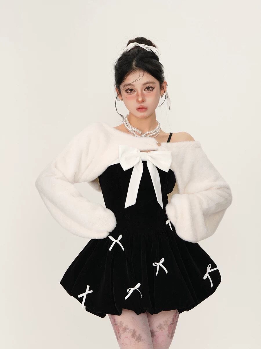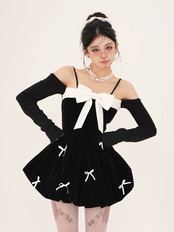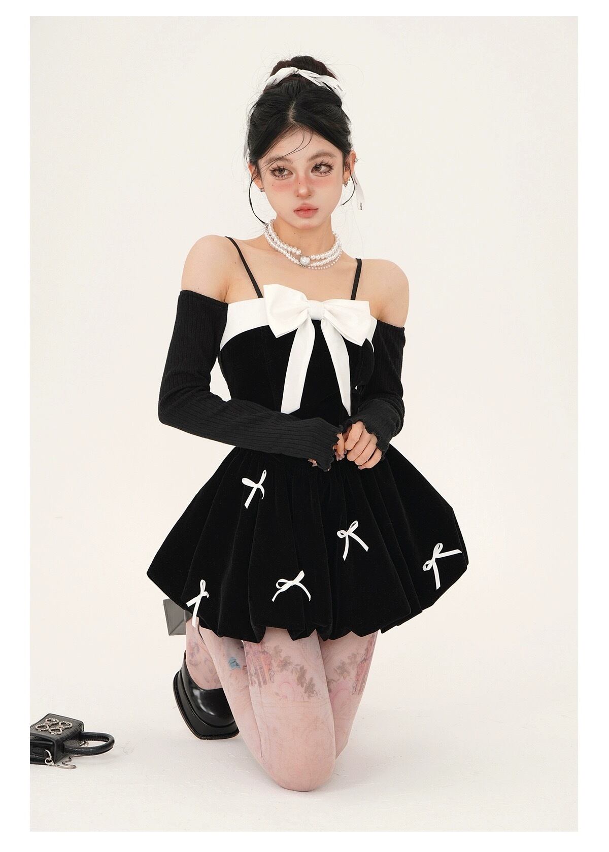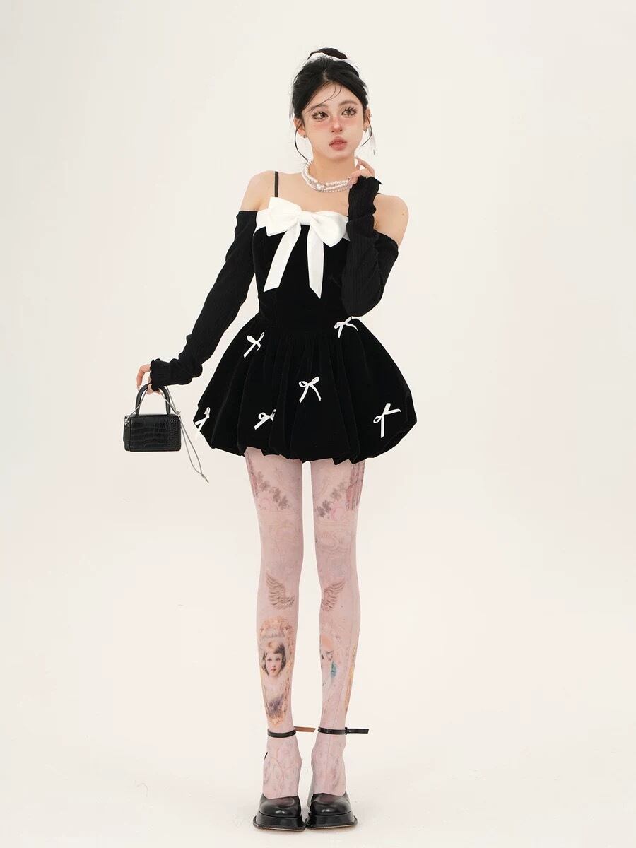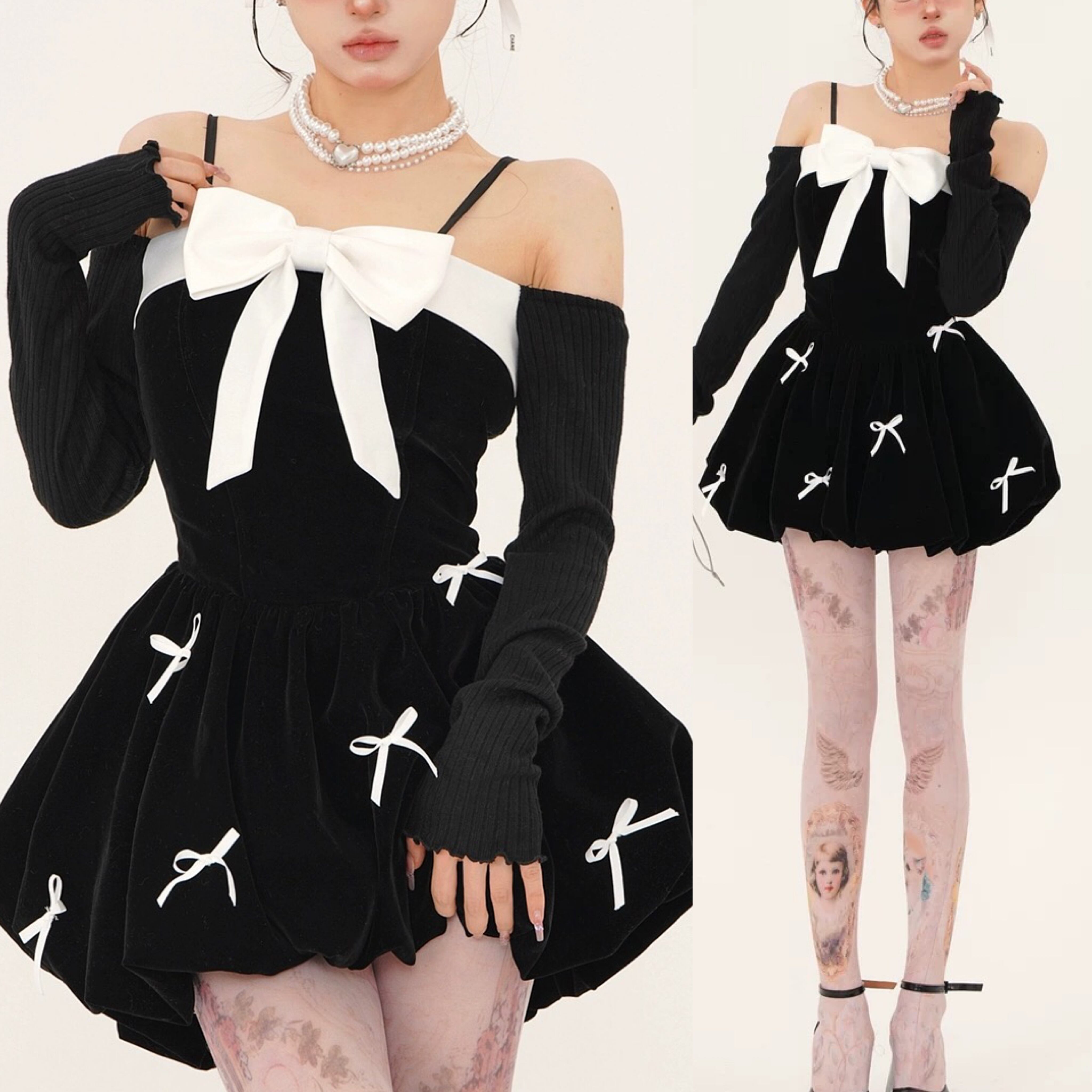 ワンピース 黒 キャミソール ガーリー ブラック リボン 可愛い スカート ドレス