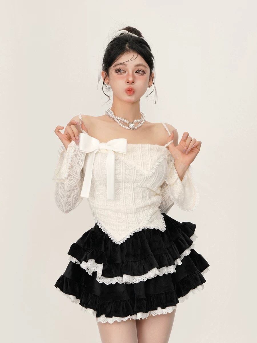 オフショルダー 白 ホワイト オフショルダー セーター セクシー ブラウス リボン ニット カーディガン