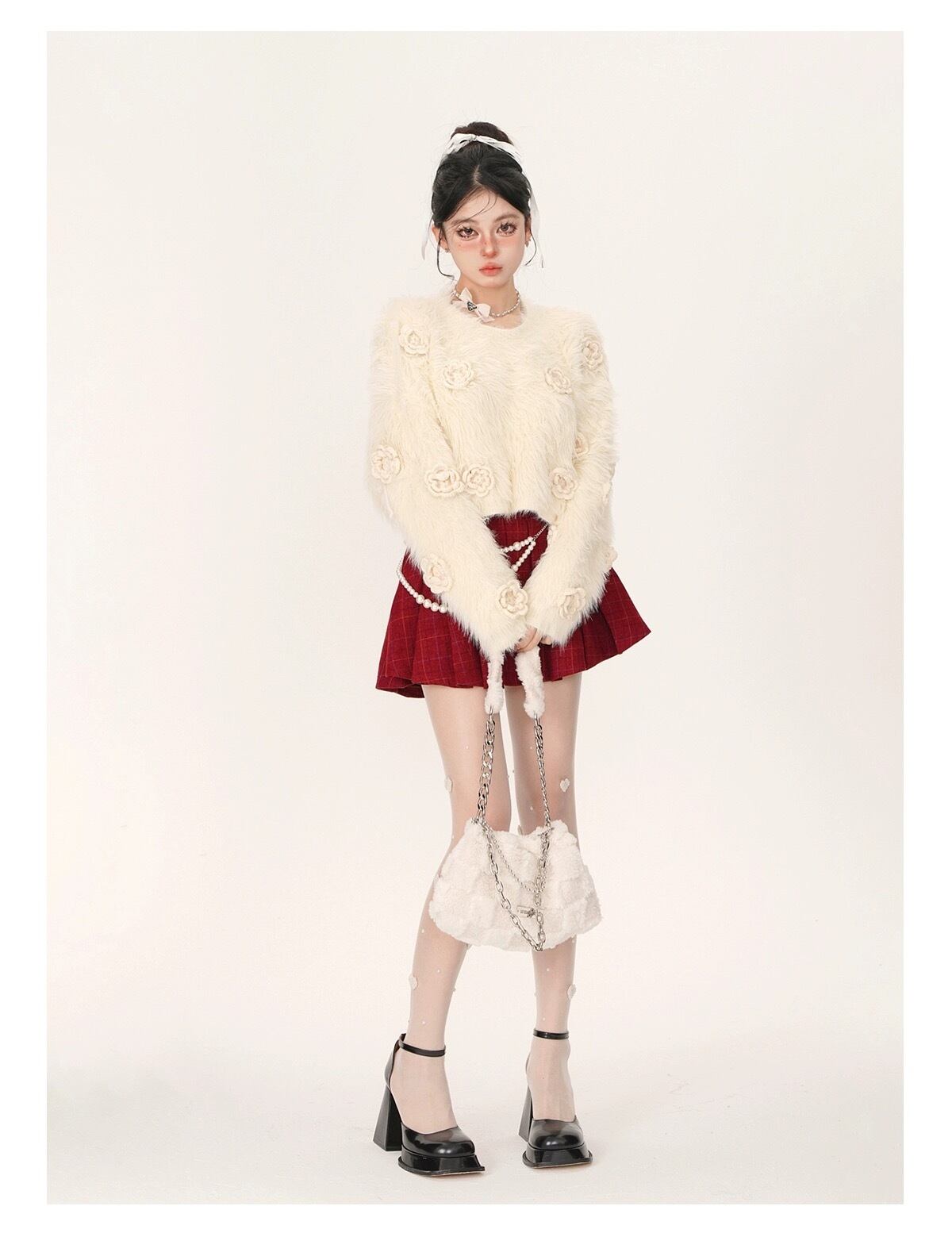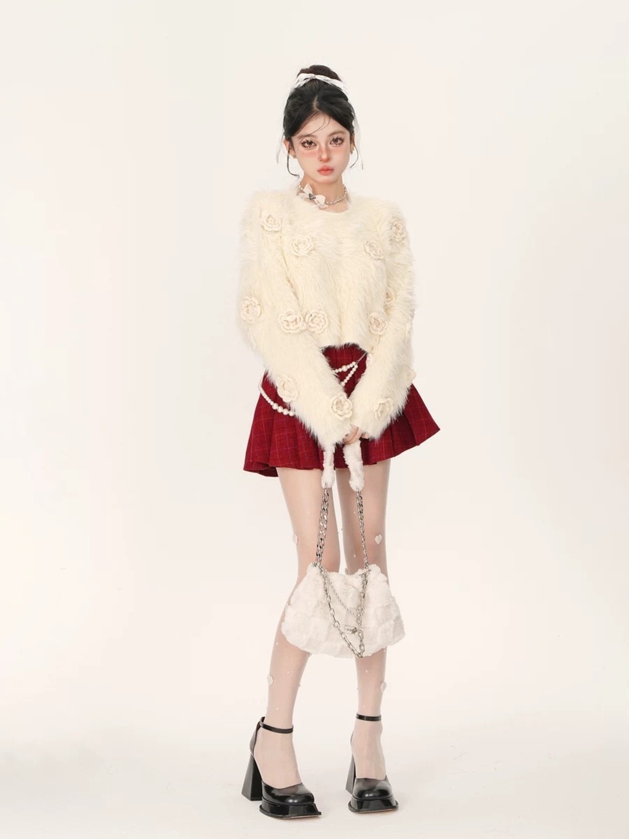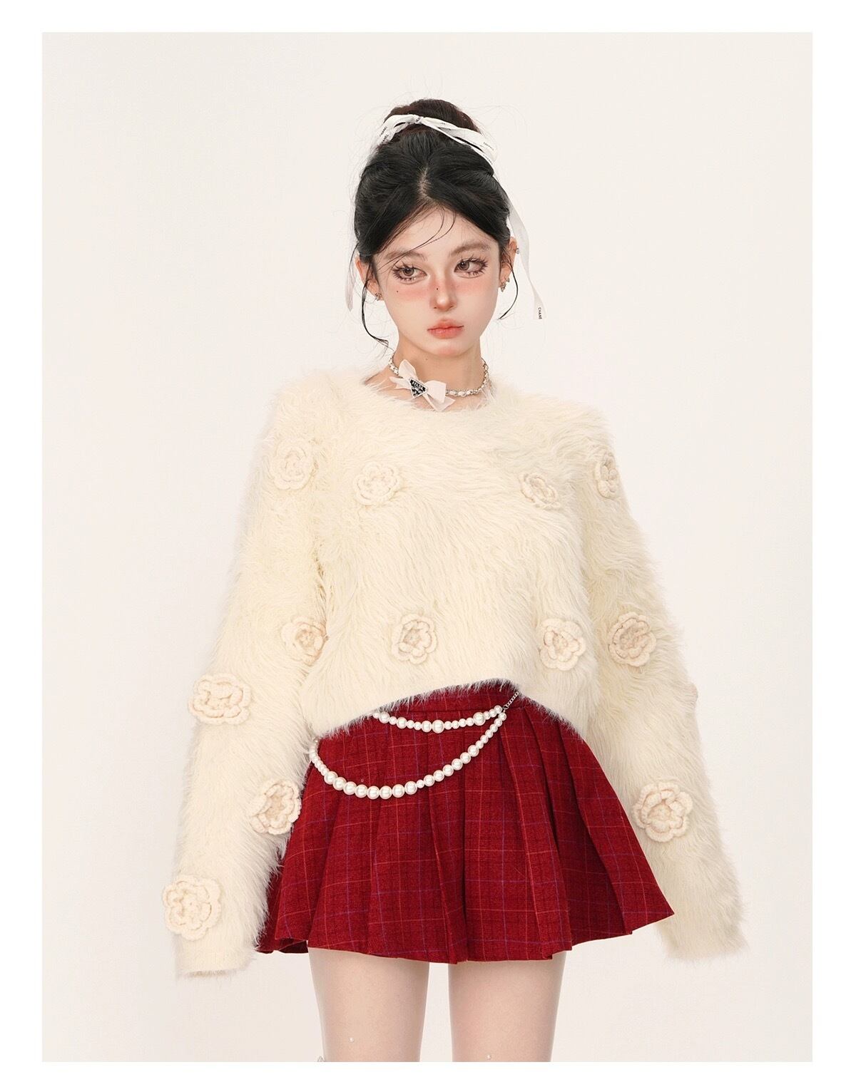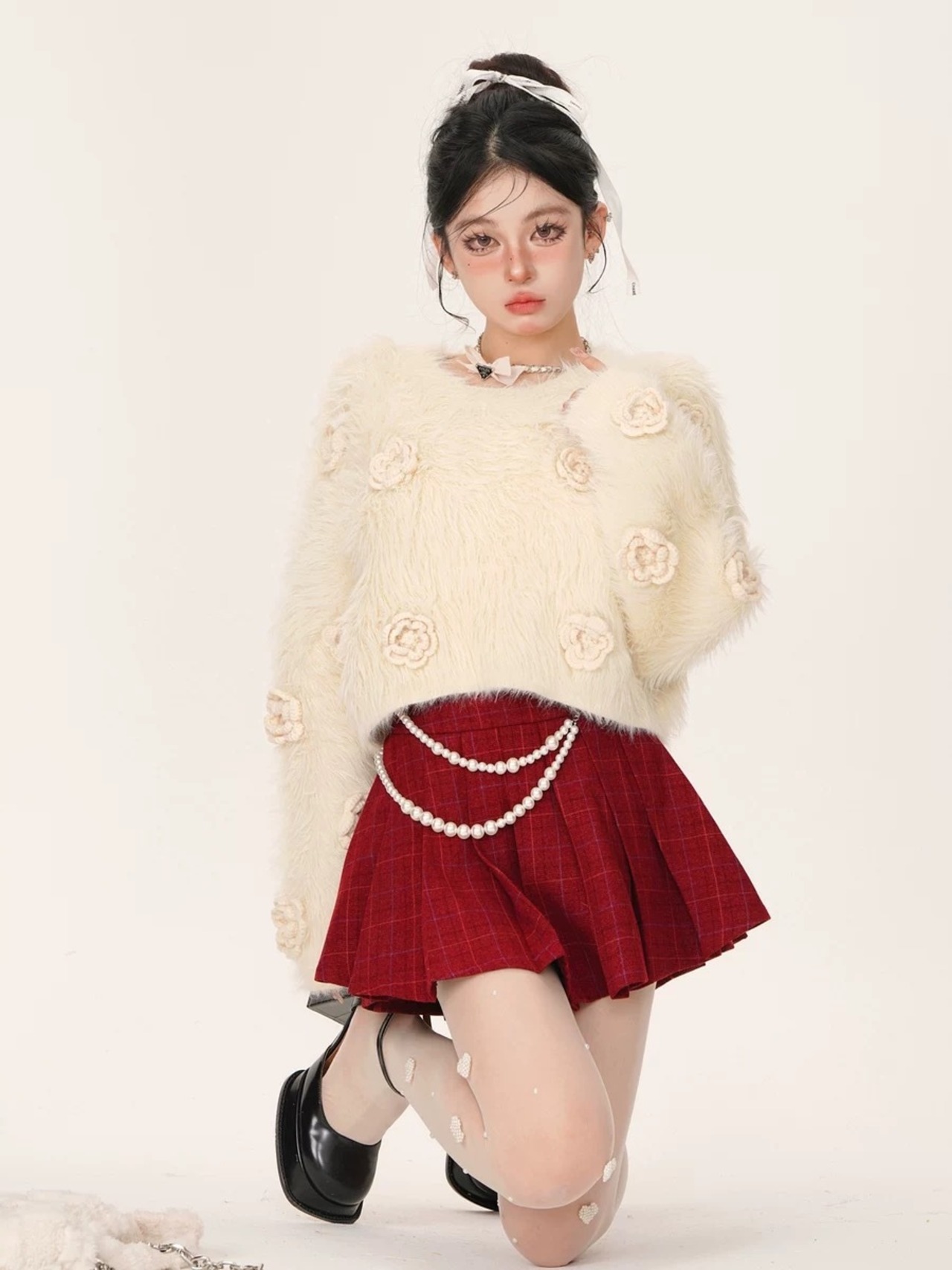 白 薔薇 カメリア ニット セーター トップス ガーリー 薔薇 フラワー カーディガン ブラウス