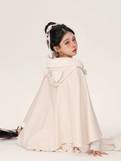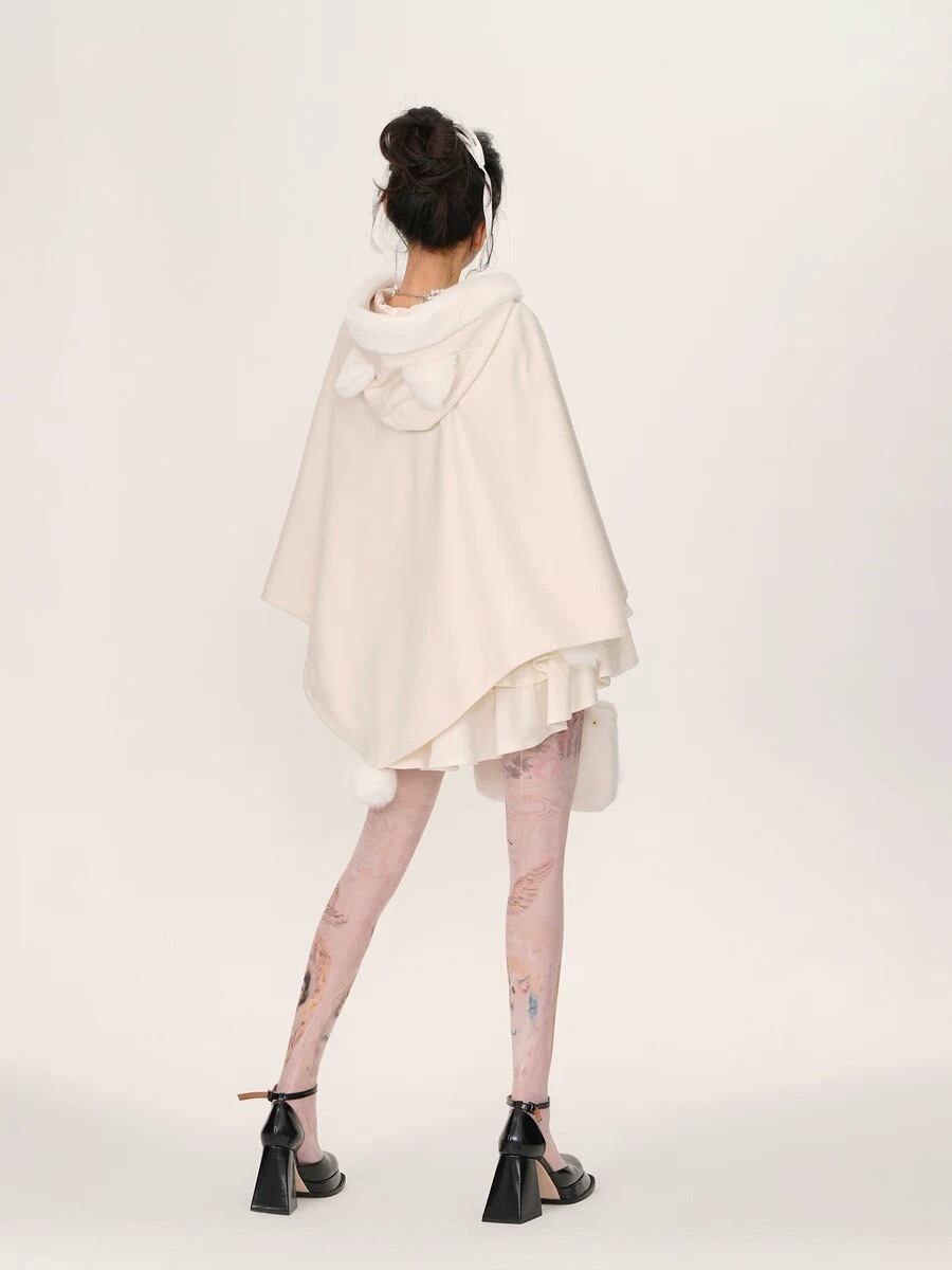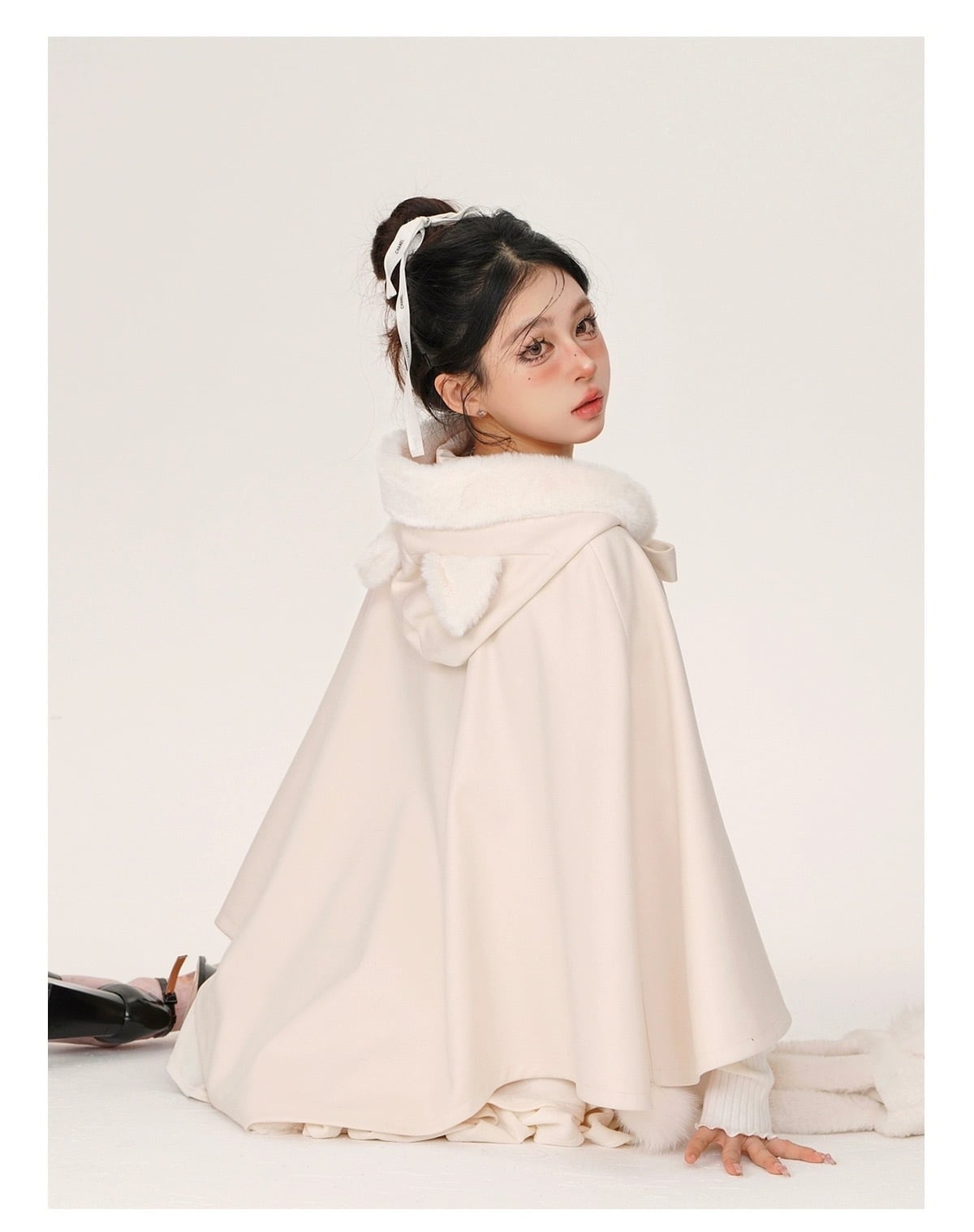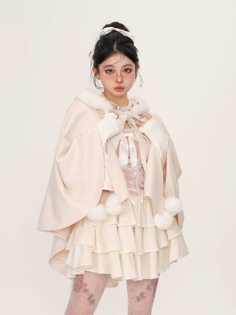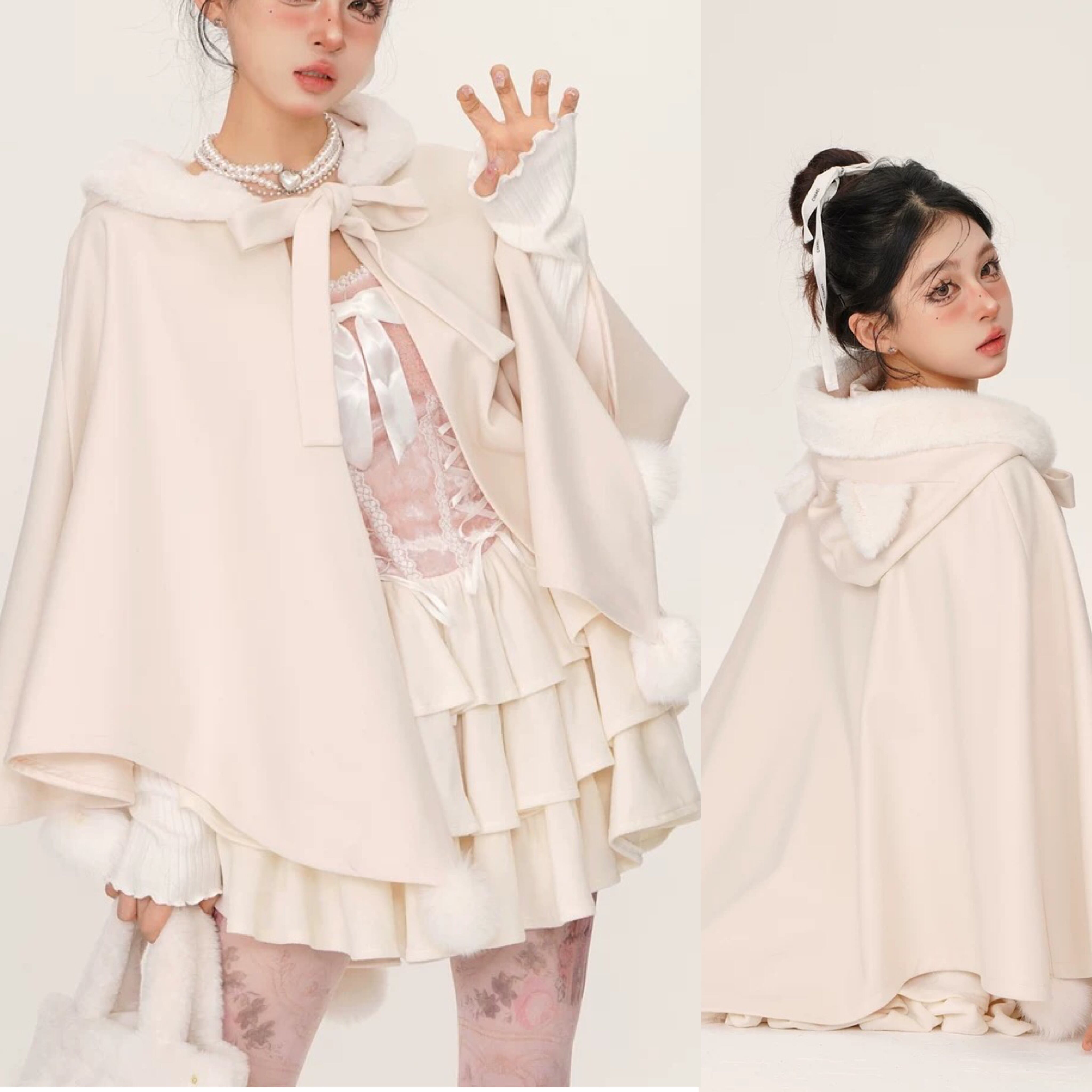 マンション ポンチョ コート アウター パーカー ジャケット カーディガン ホワイト 白 リボン ぽんぽん