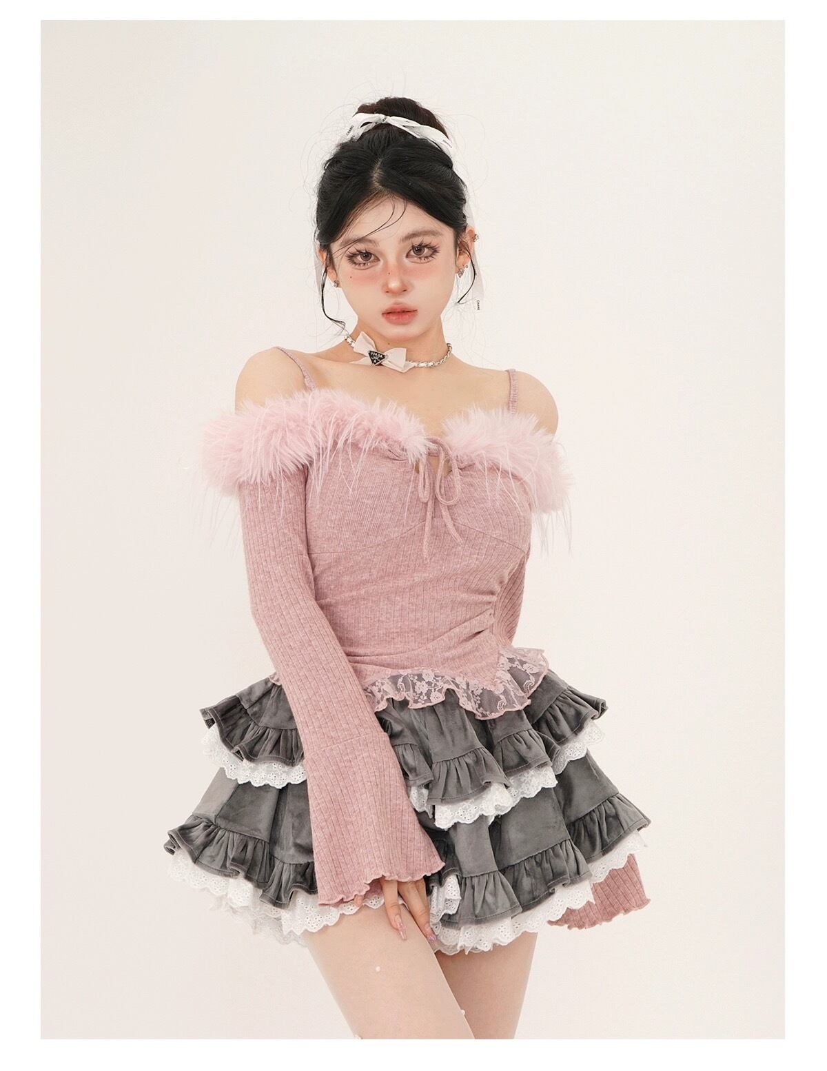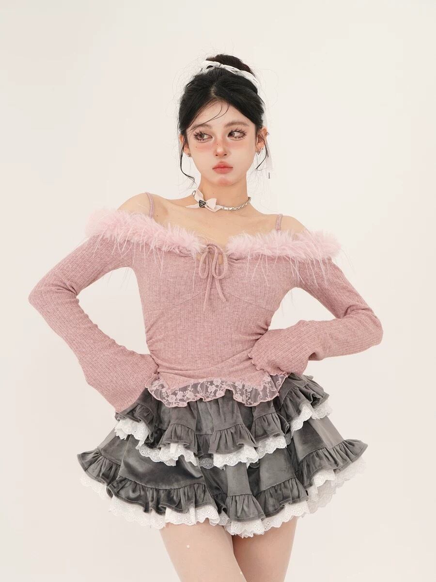 スカート グレー ミニスカ フリル ガーリー ボトムス 可愛い 姫