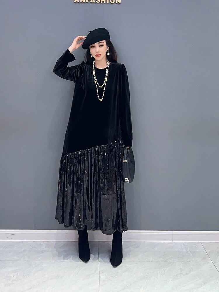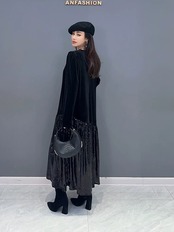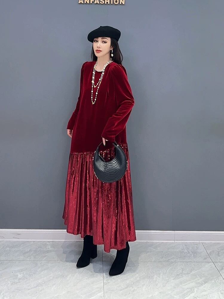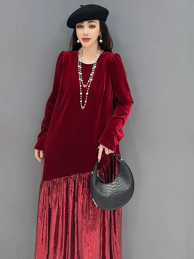 ワンピース マキシ 赤 黒 ベルベット ベロア マキシ ロング スカート