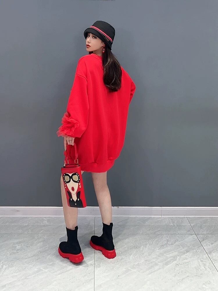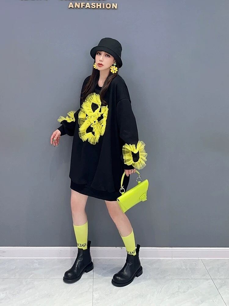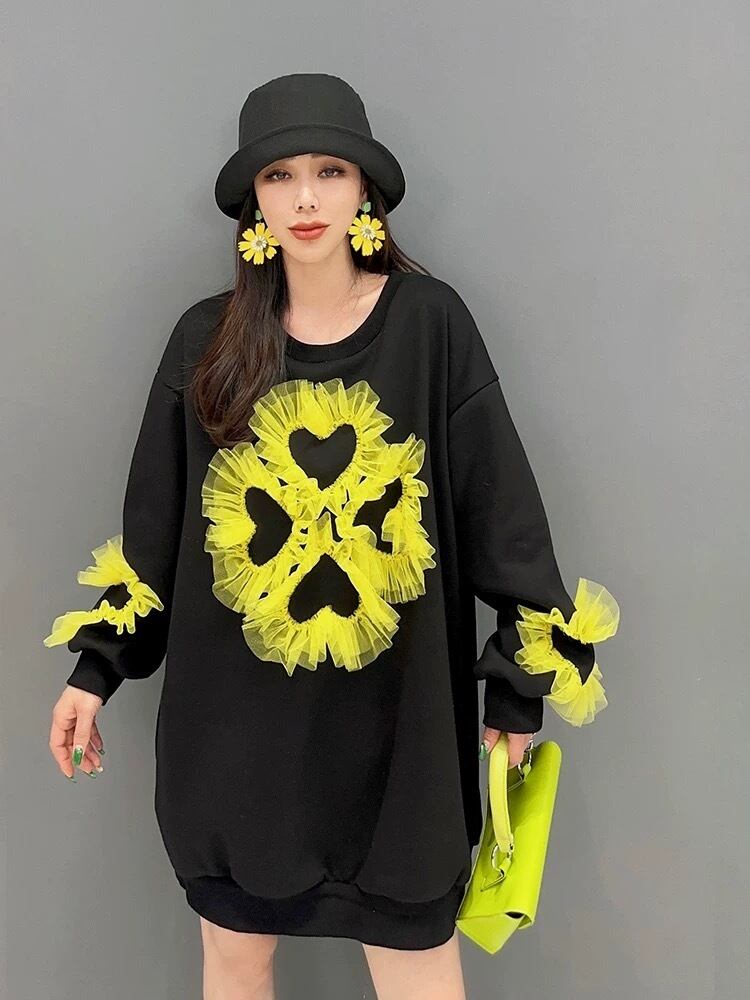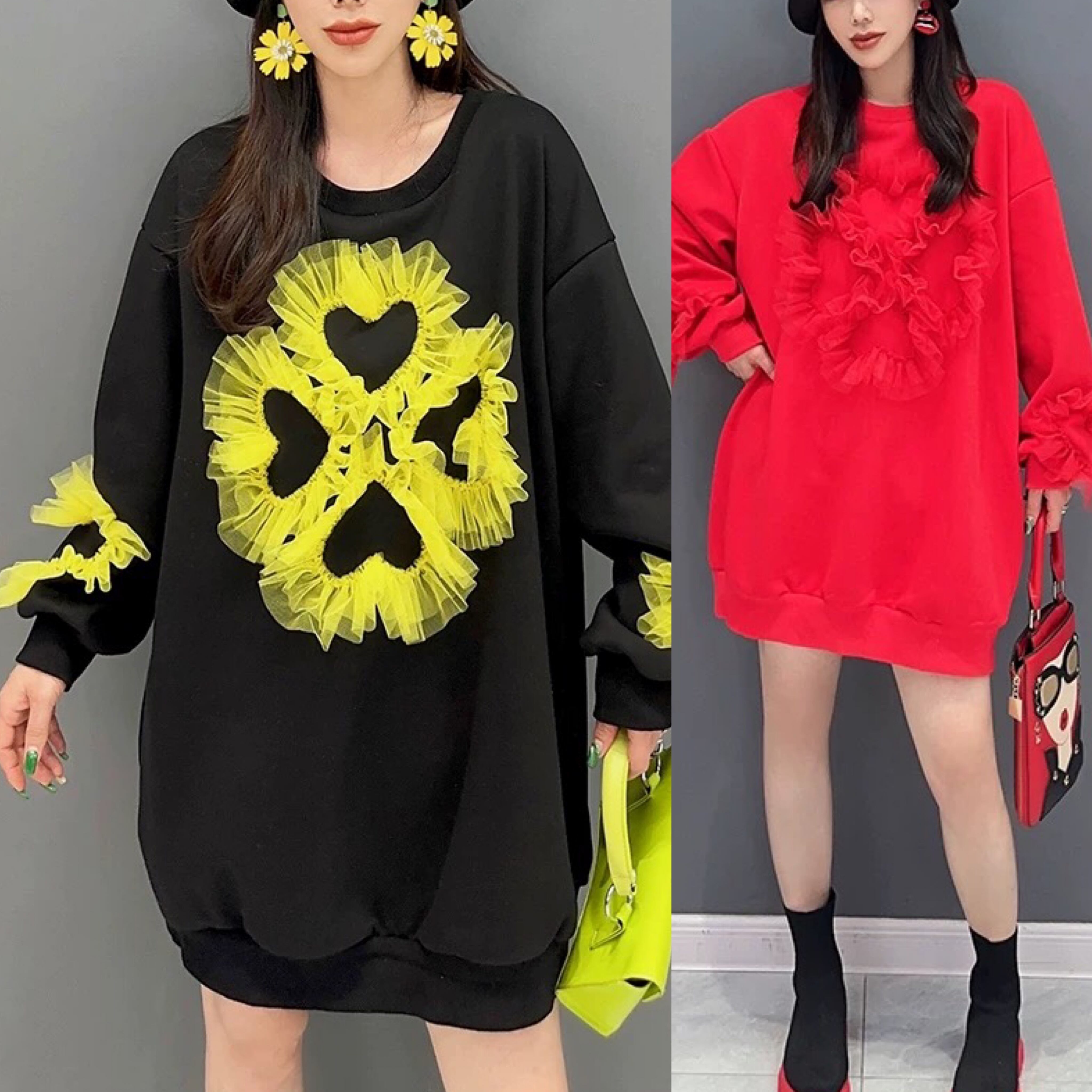 花柄 フラワー スウェット ワンピース 赤 黒 黄色 カジュアル XL