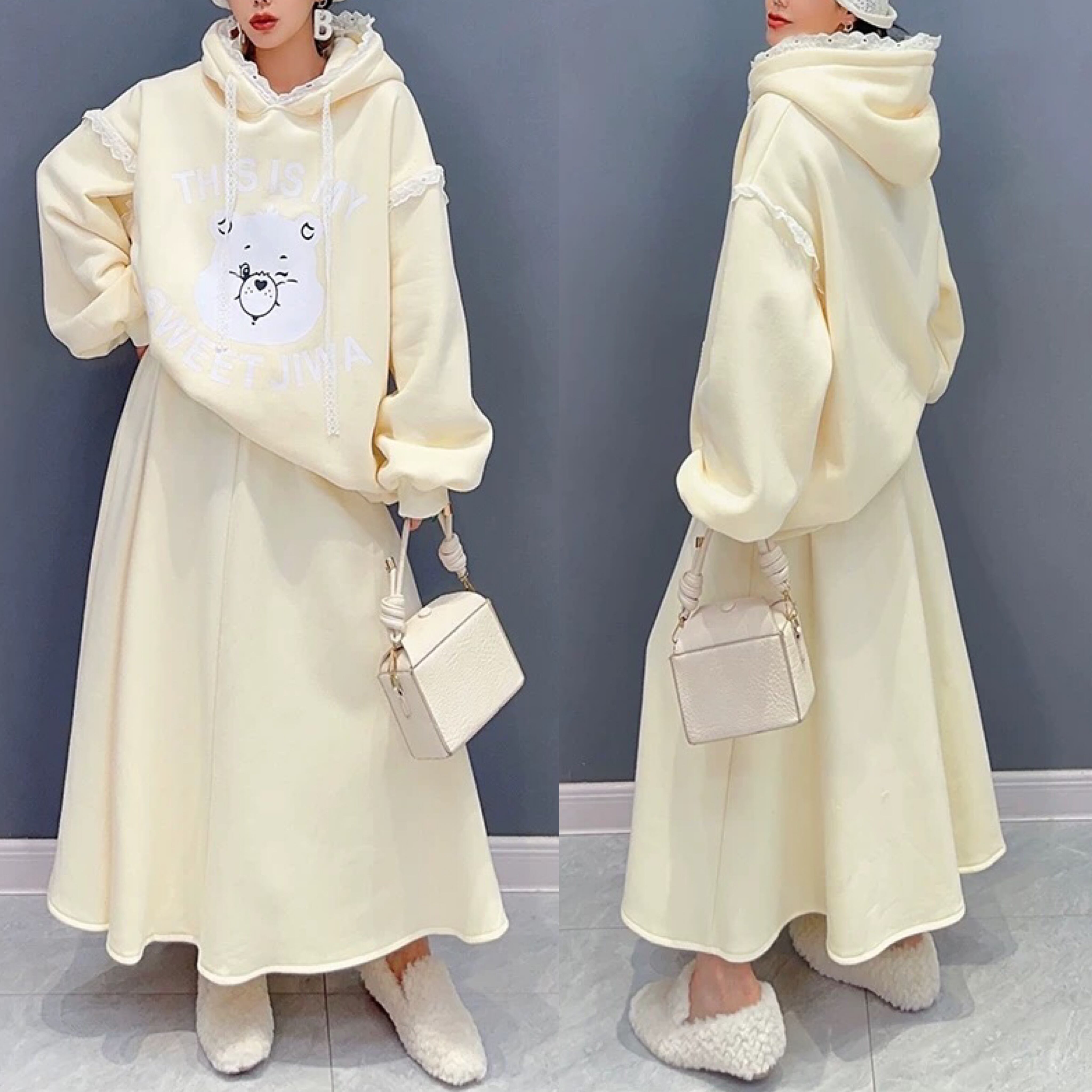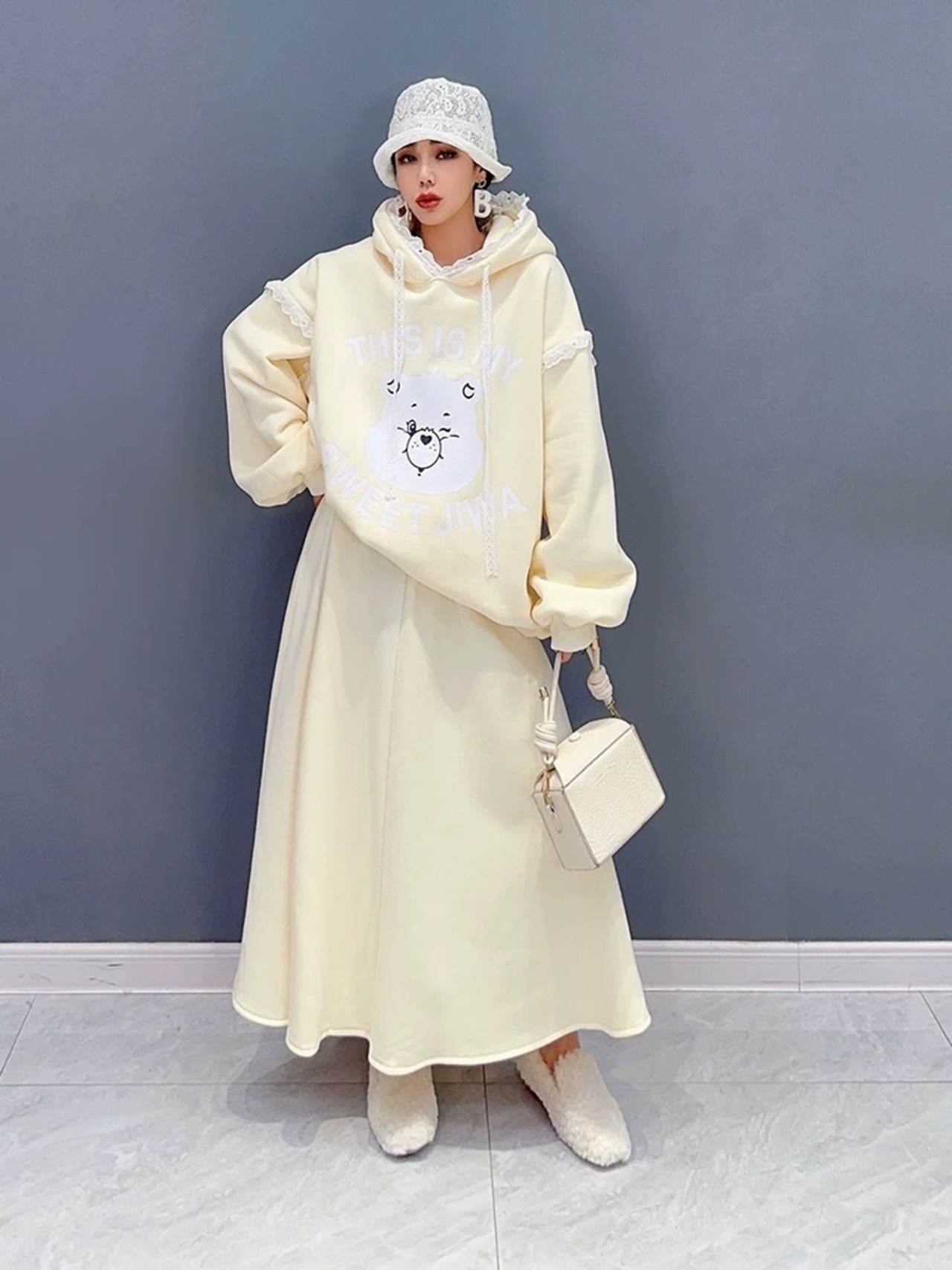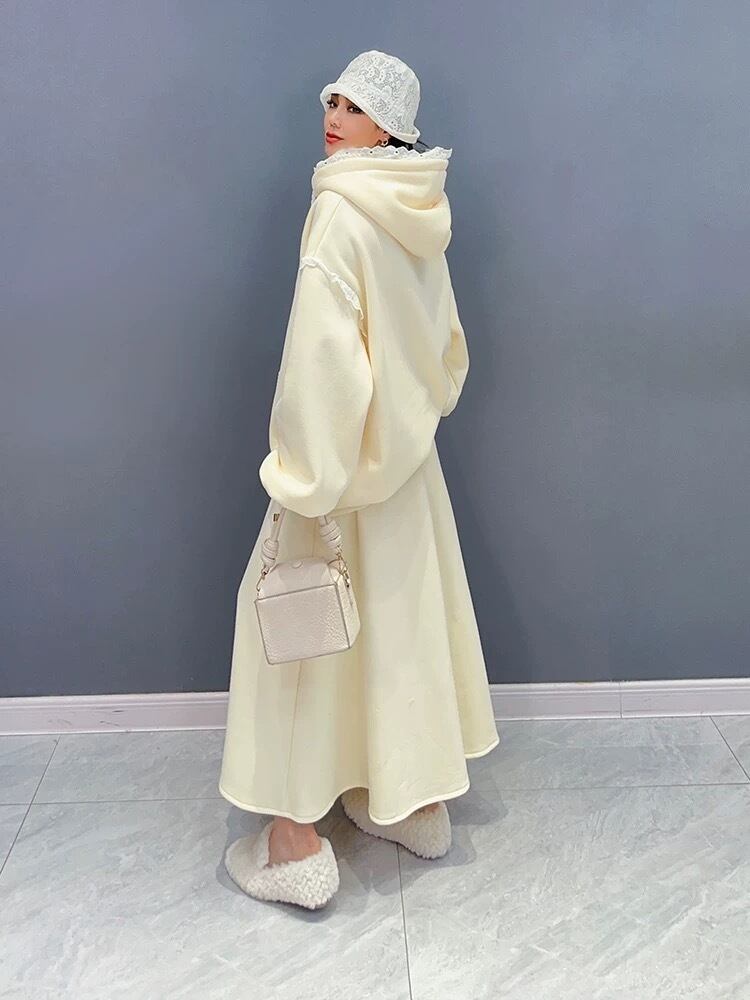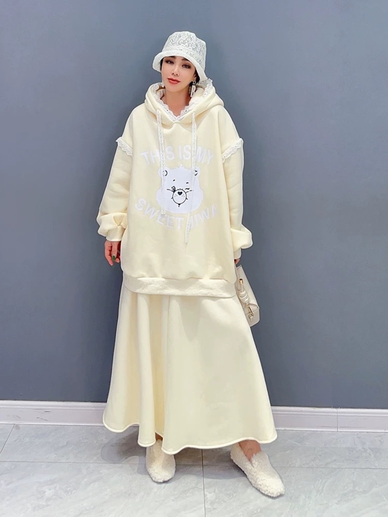 【セットアップ】白 パーカー スウェット ツーピース カジュアル ホワイト XL スカート ボトムス