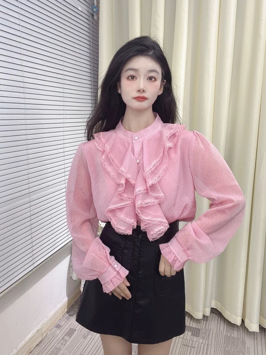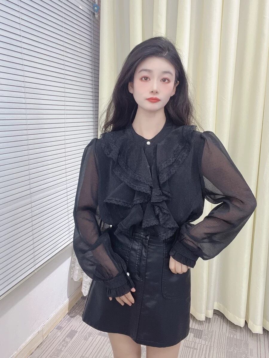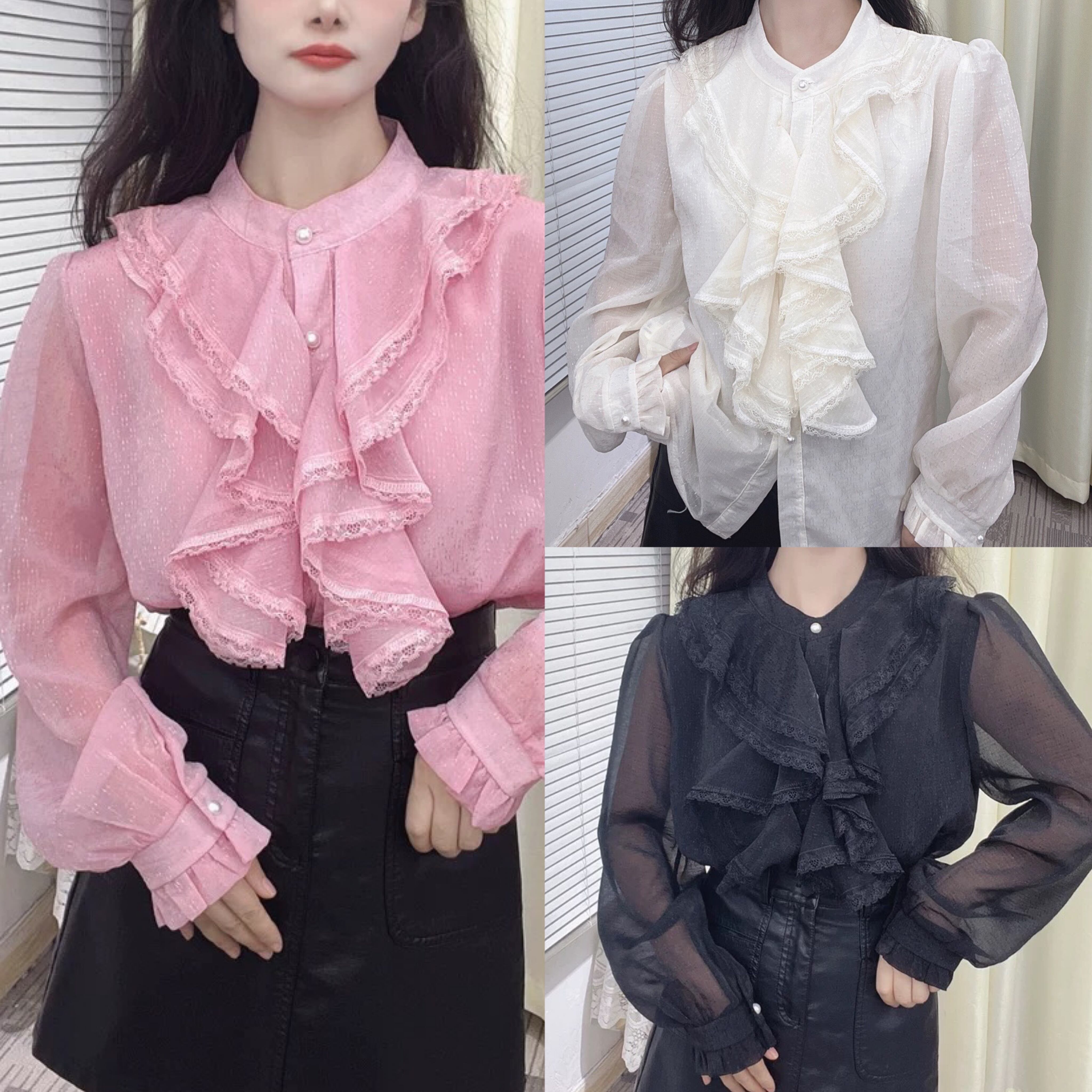 黒 白 ピンク シンプル トップス フリル リボン カジュアル