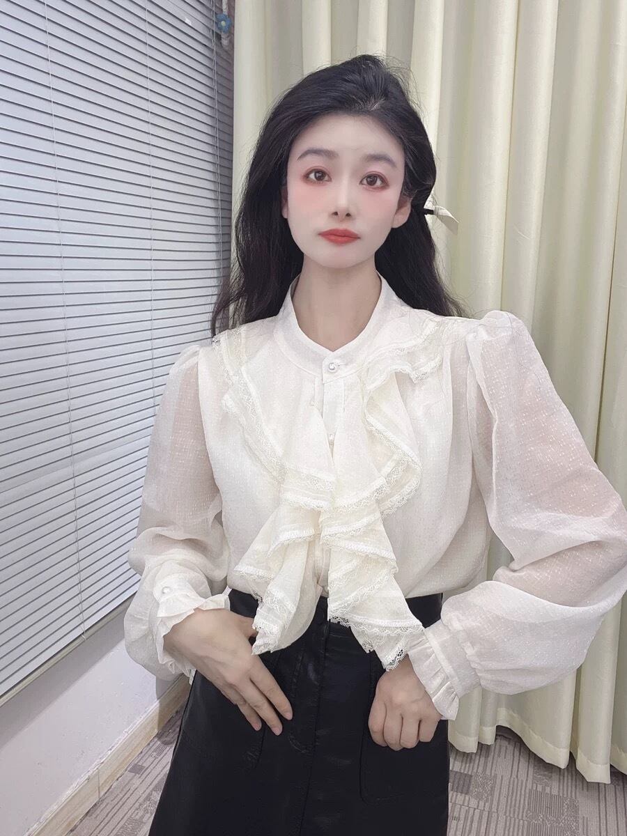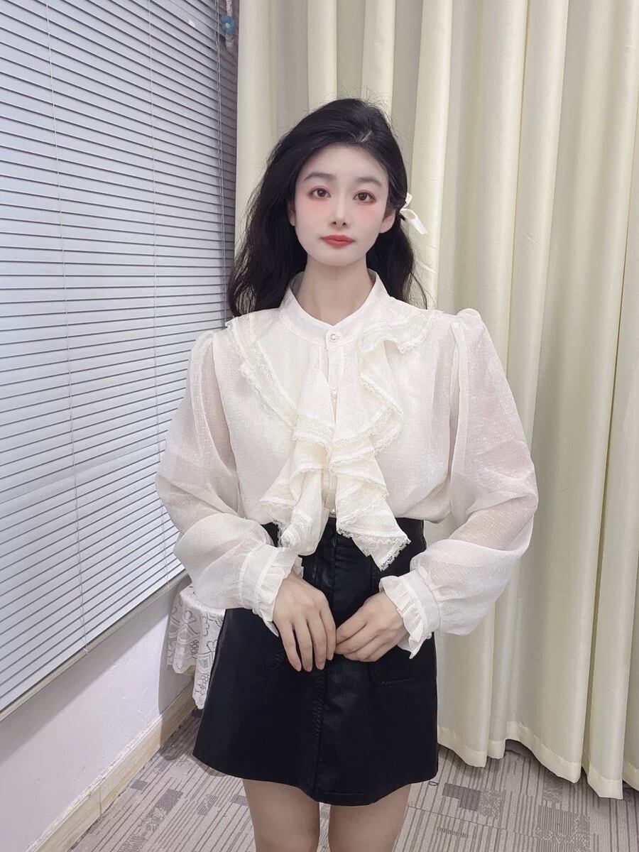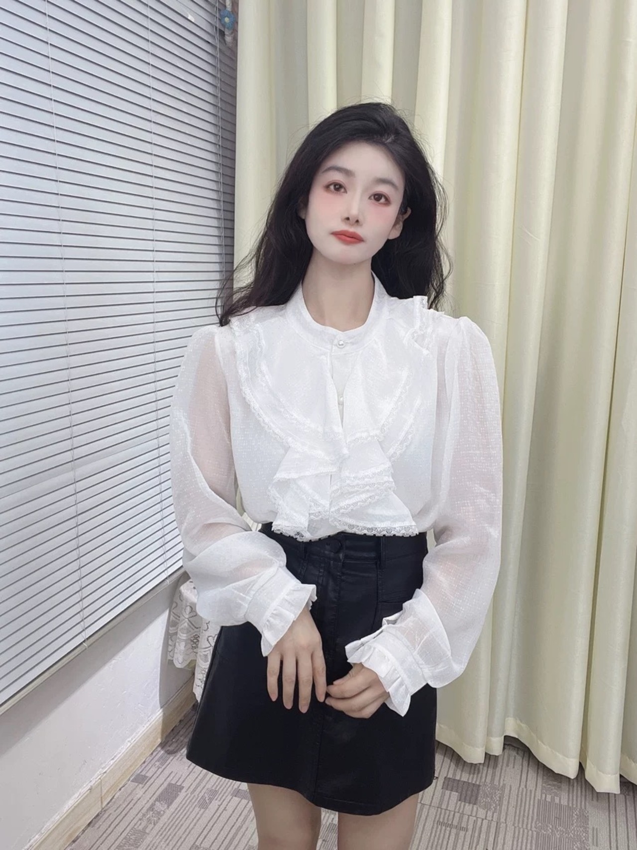 黒 白 ピンク シンプル トップス フリル リボン カジュアル