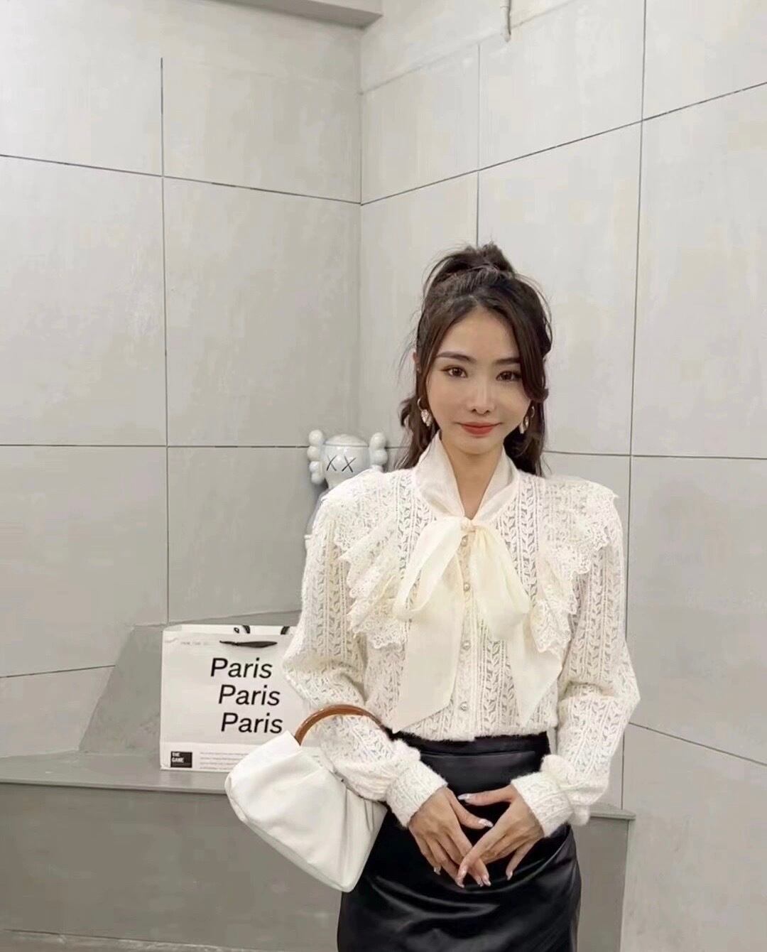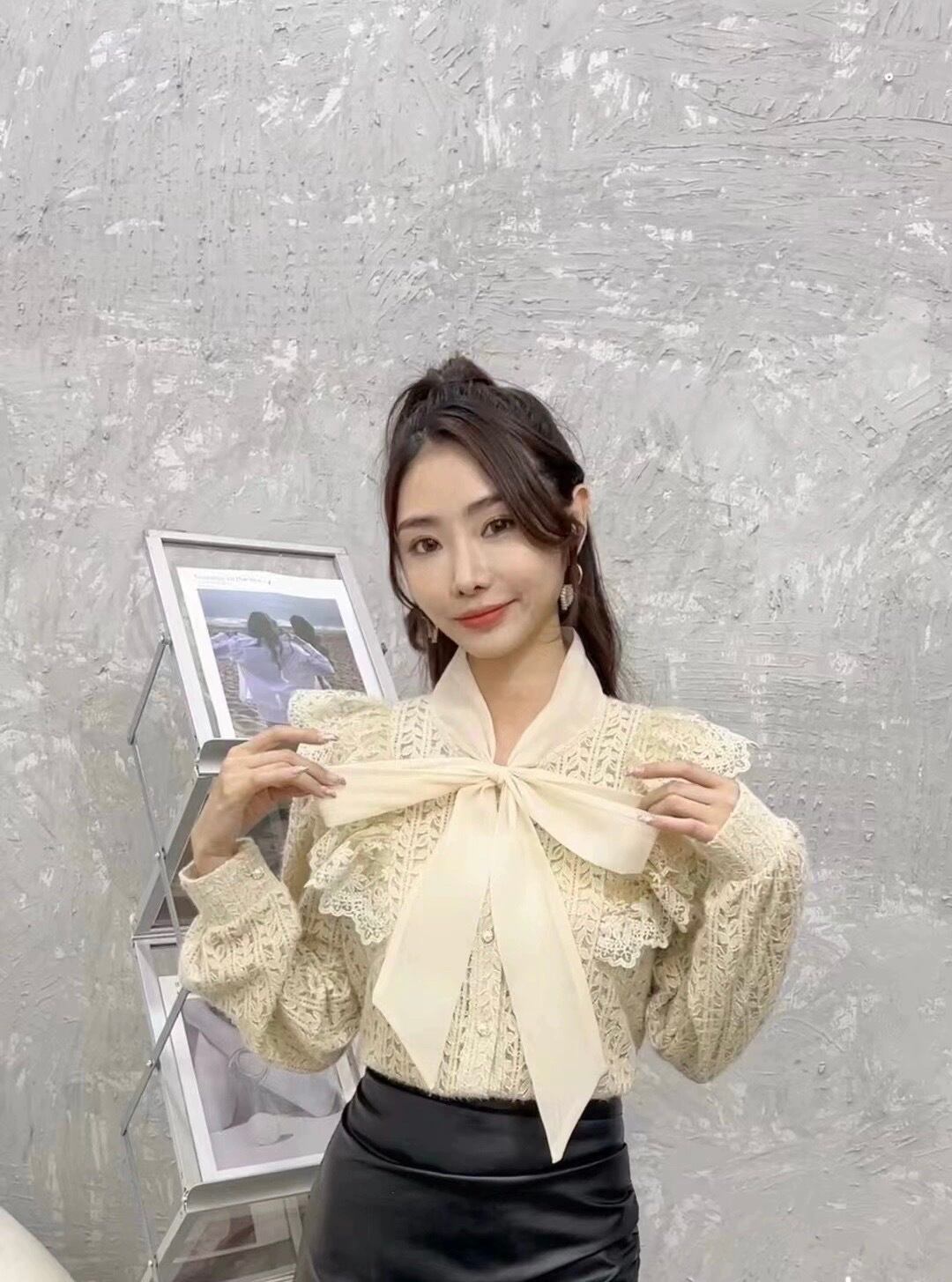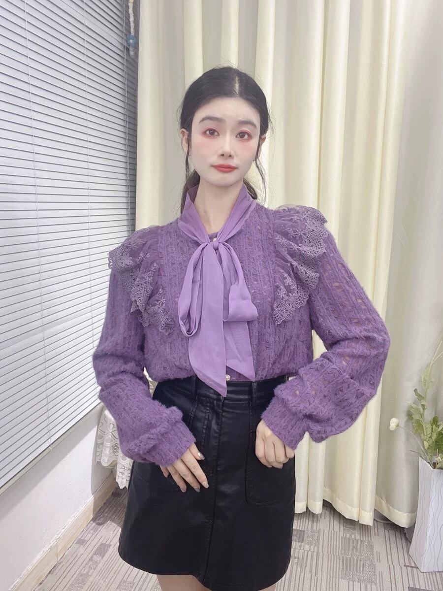 ブラウス ベージュ 緑 紫 リボン カジュアル レース トップス ガーリー エレガント シャツ