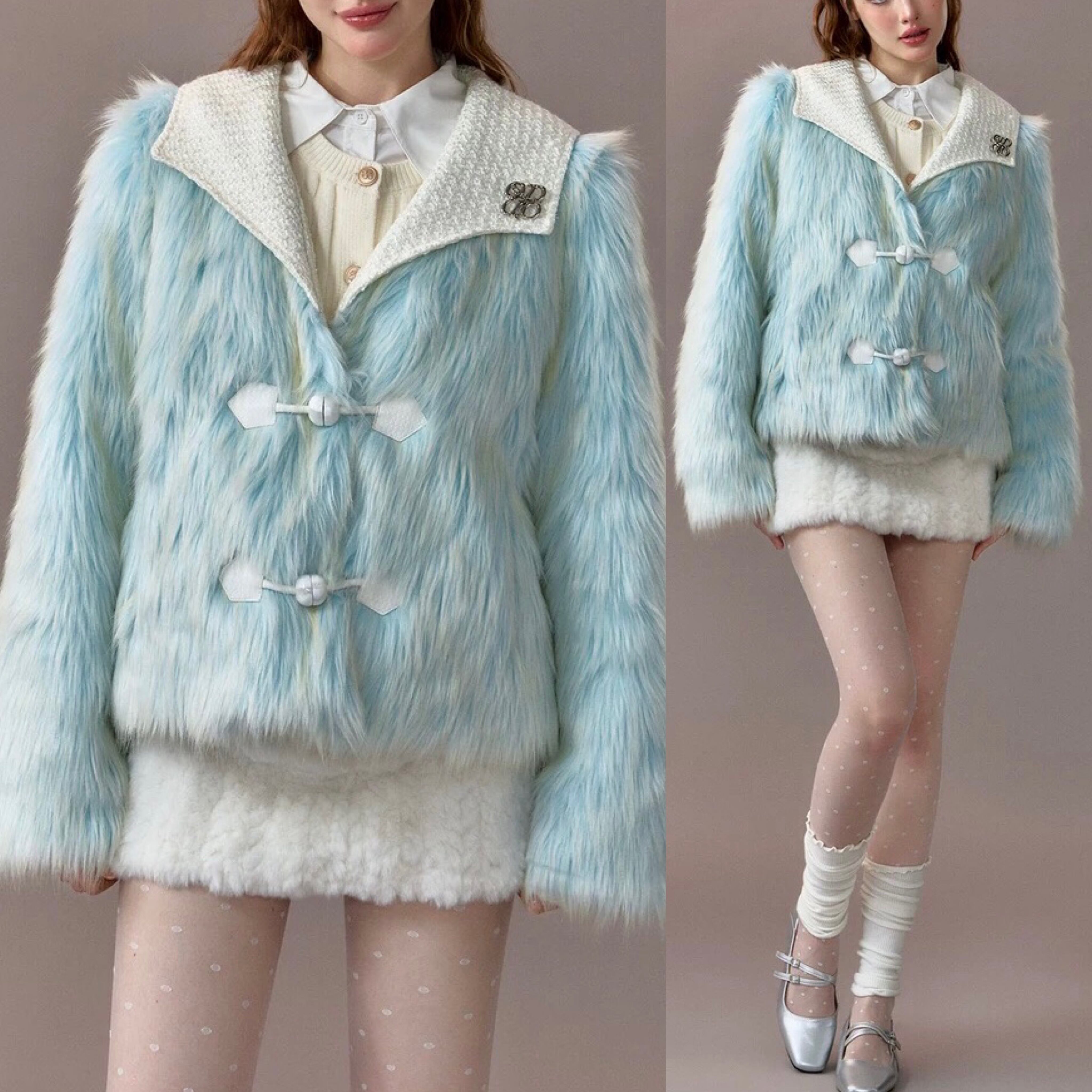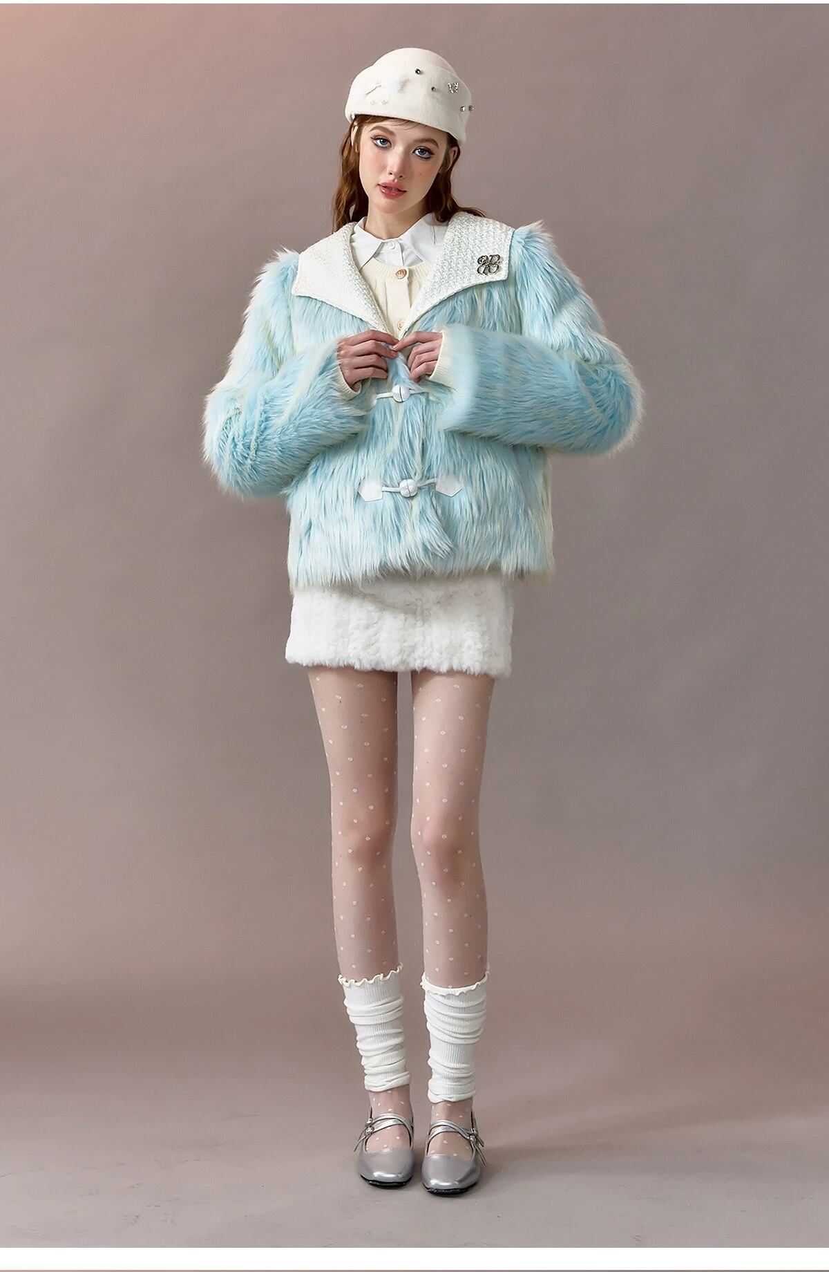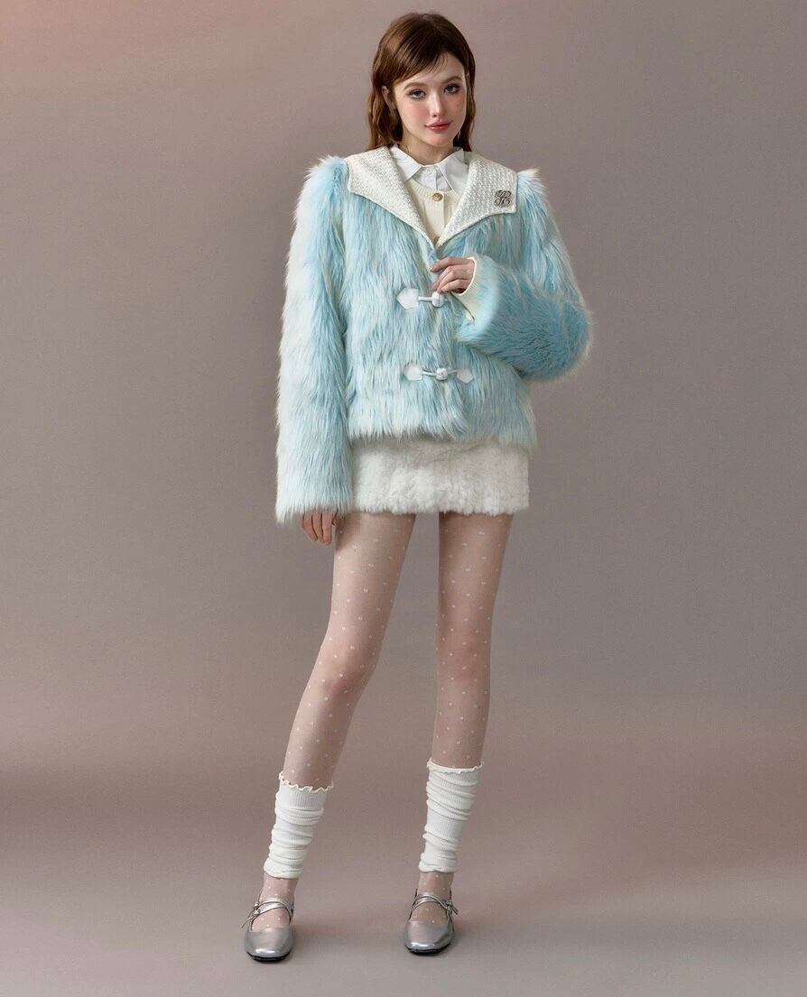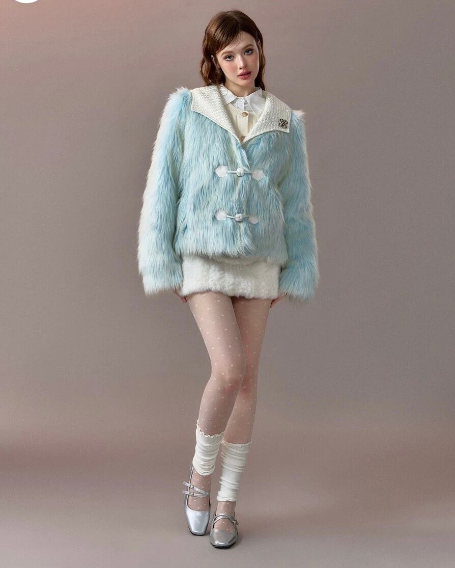 水色 アウター コート ファー 襟 セーラー ジャケット 白 カーディガン アウター お嬢様