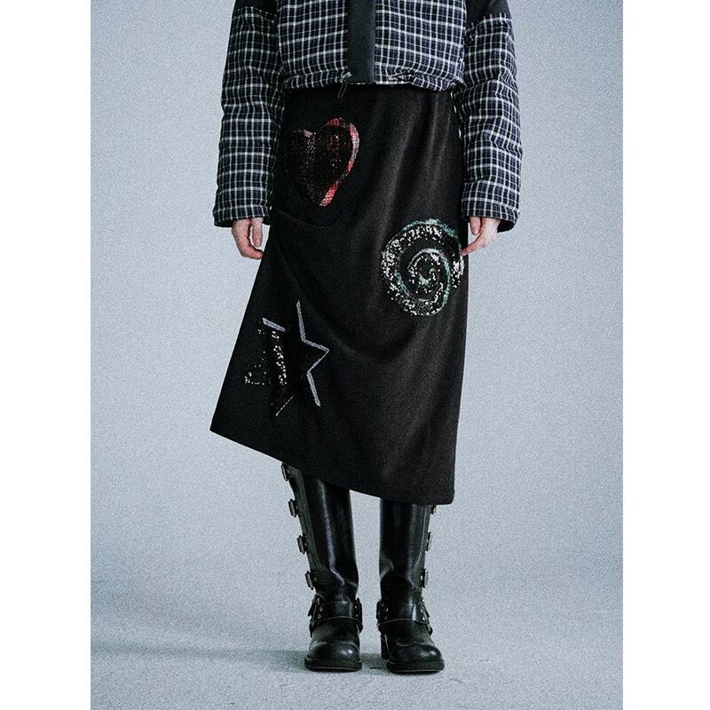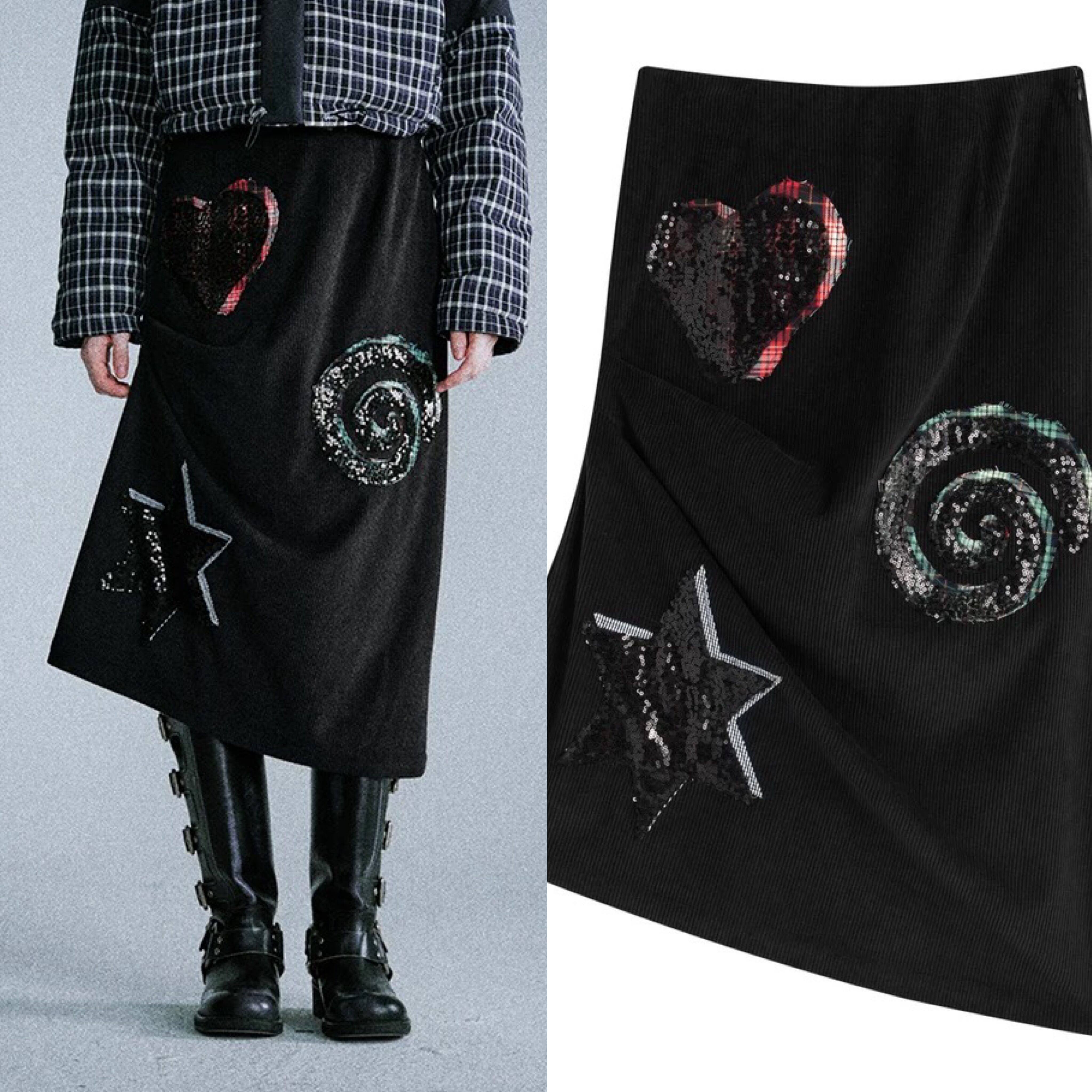 黒 星 ブラック ハート 赤 ボトムス スカート ストリート