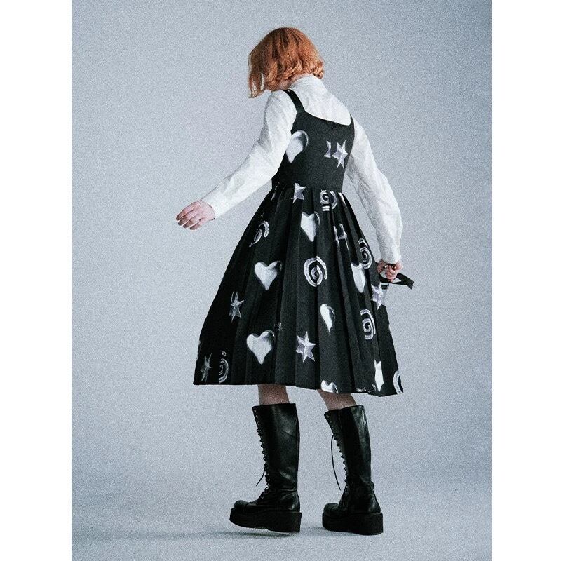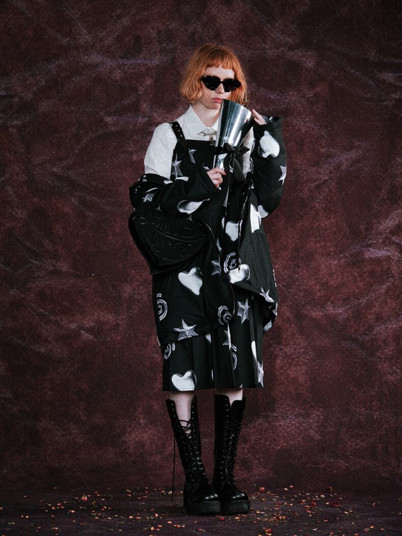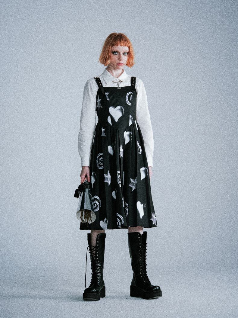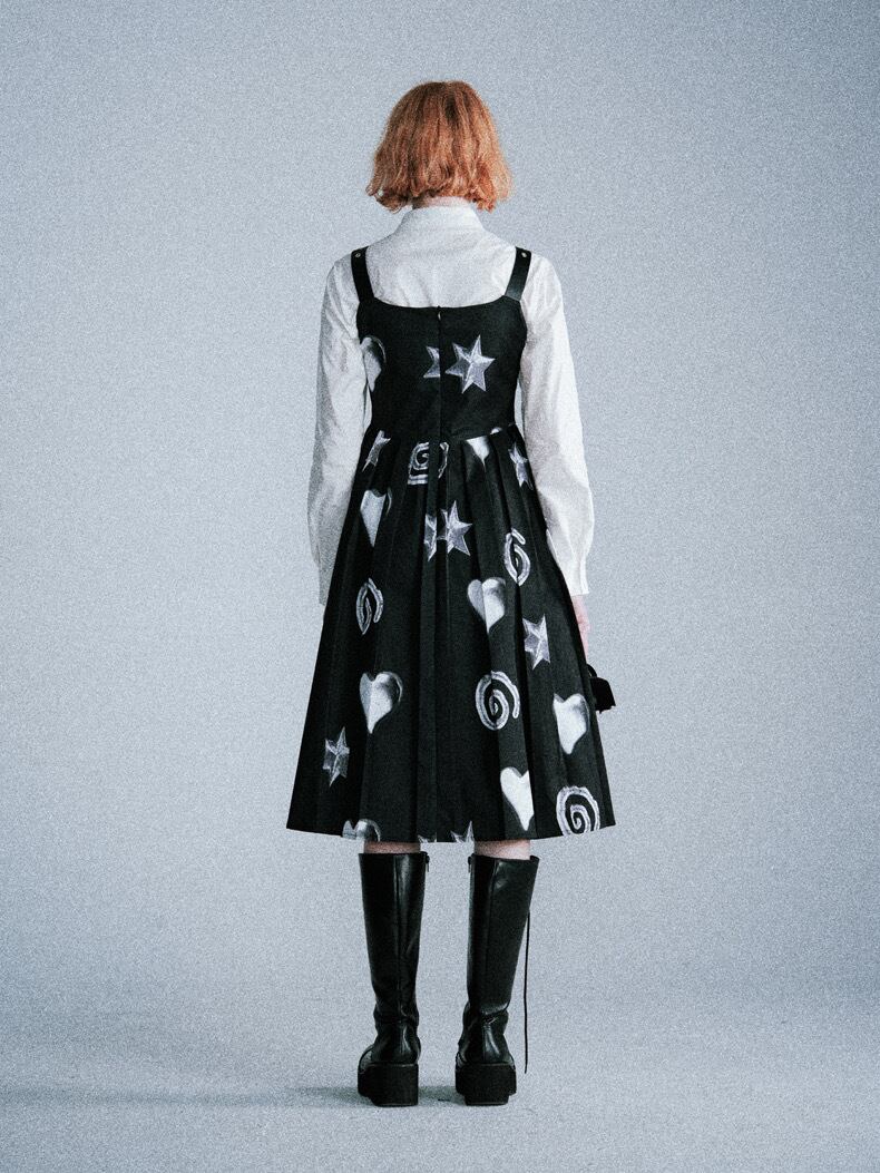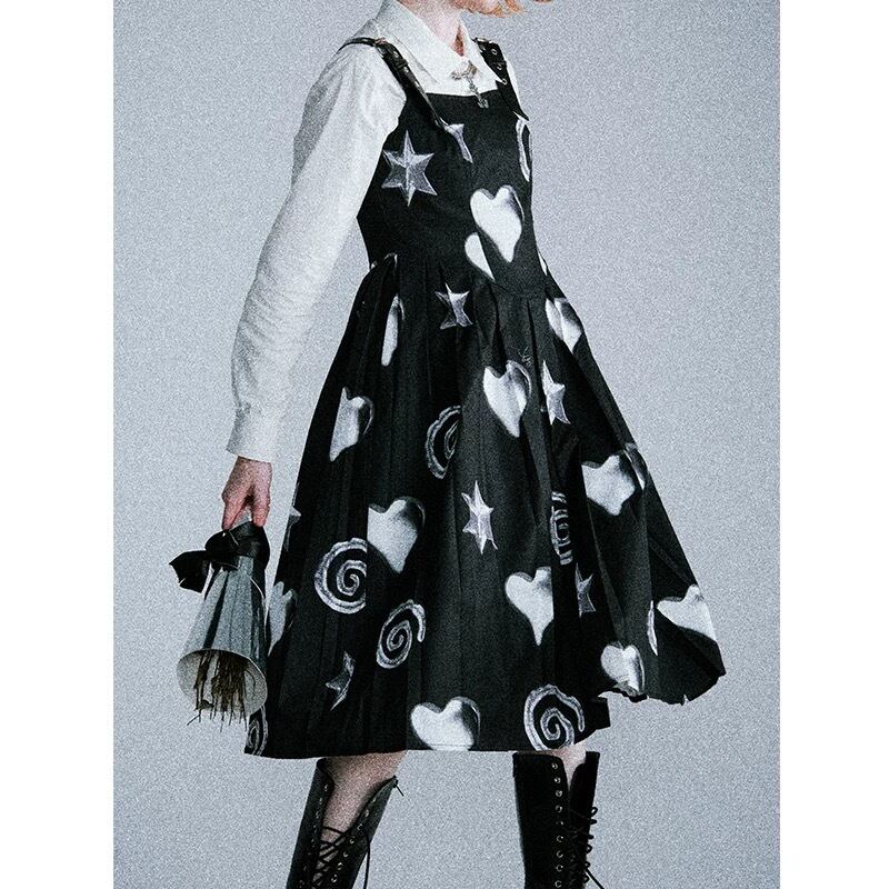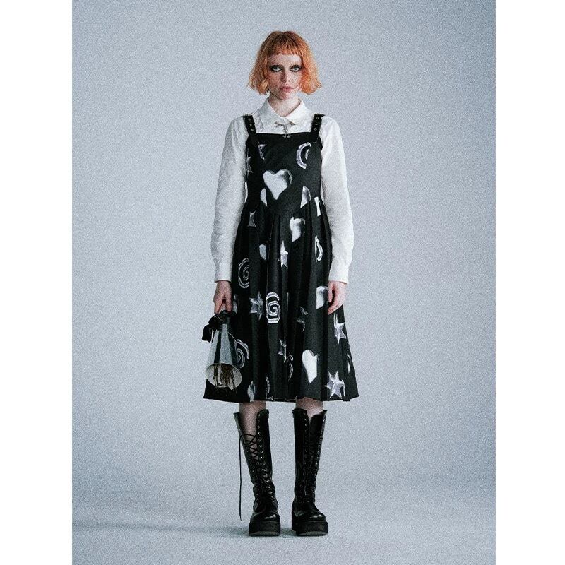 ワンピース 黒 ブラウス ハート 星 ブラック つなぎ オールインワン 月 空 ストリート ジャンパースカート