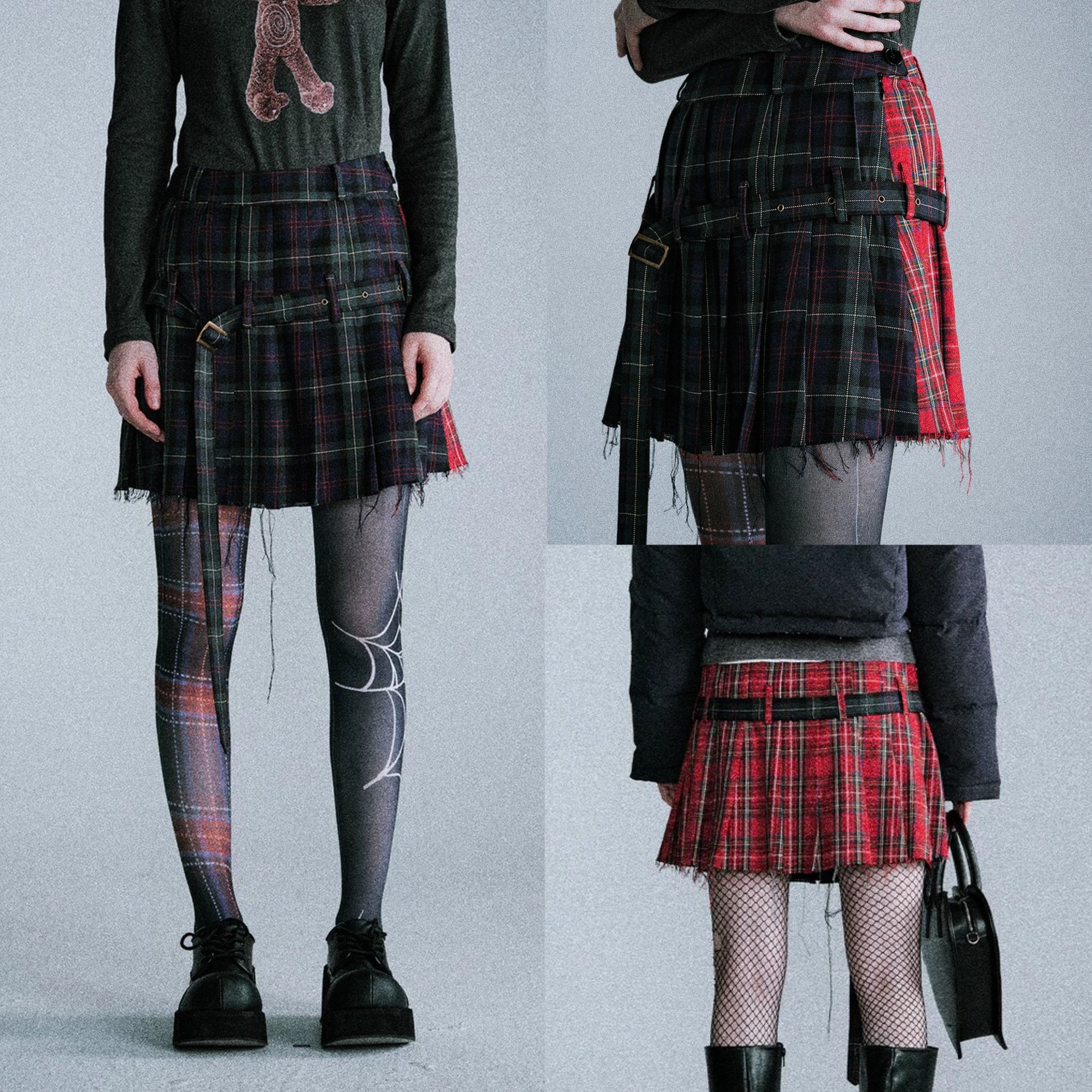 ミニスカート チェック イギリス 赤 緑 プリーツ スカート ボトムス ストリート ロック