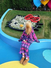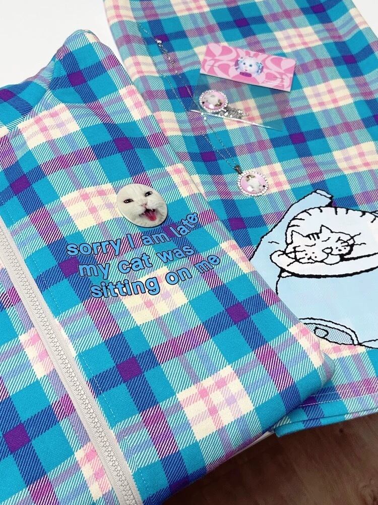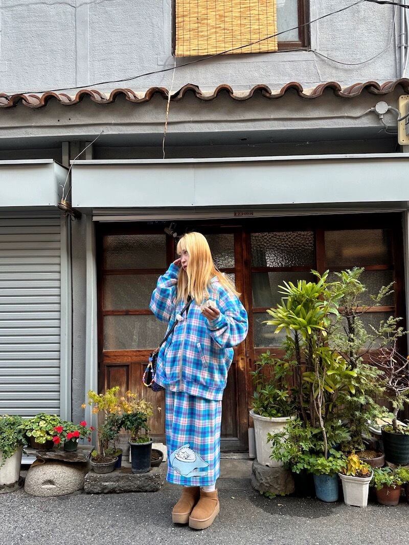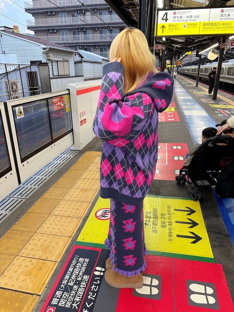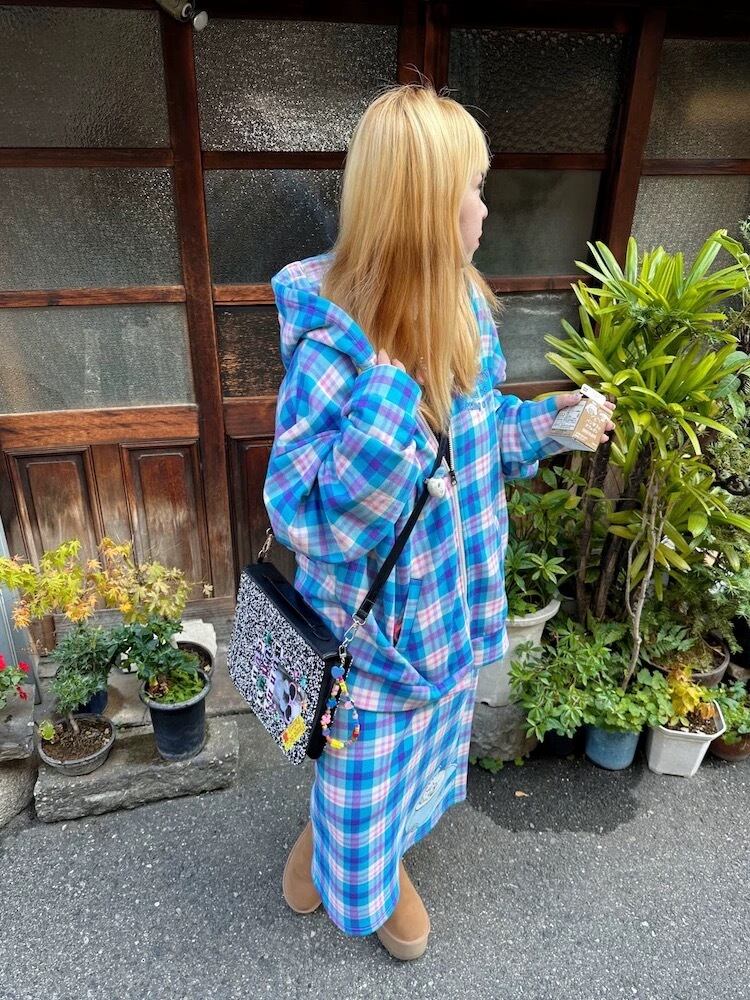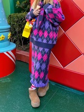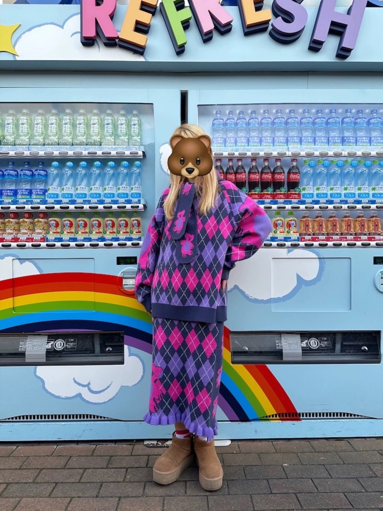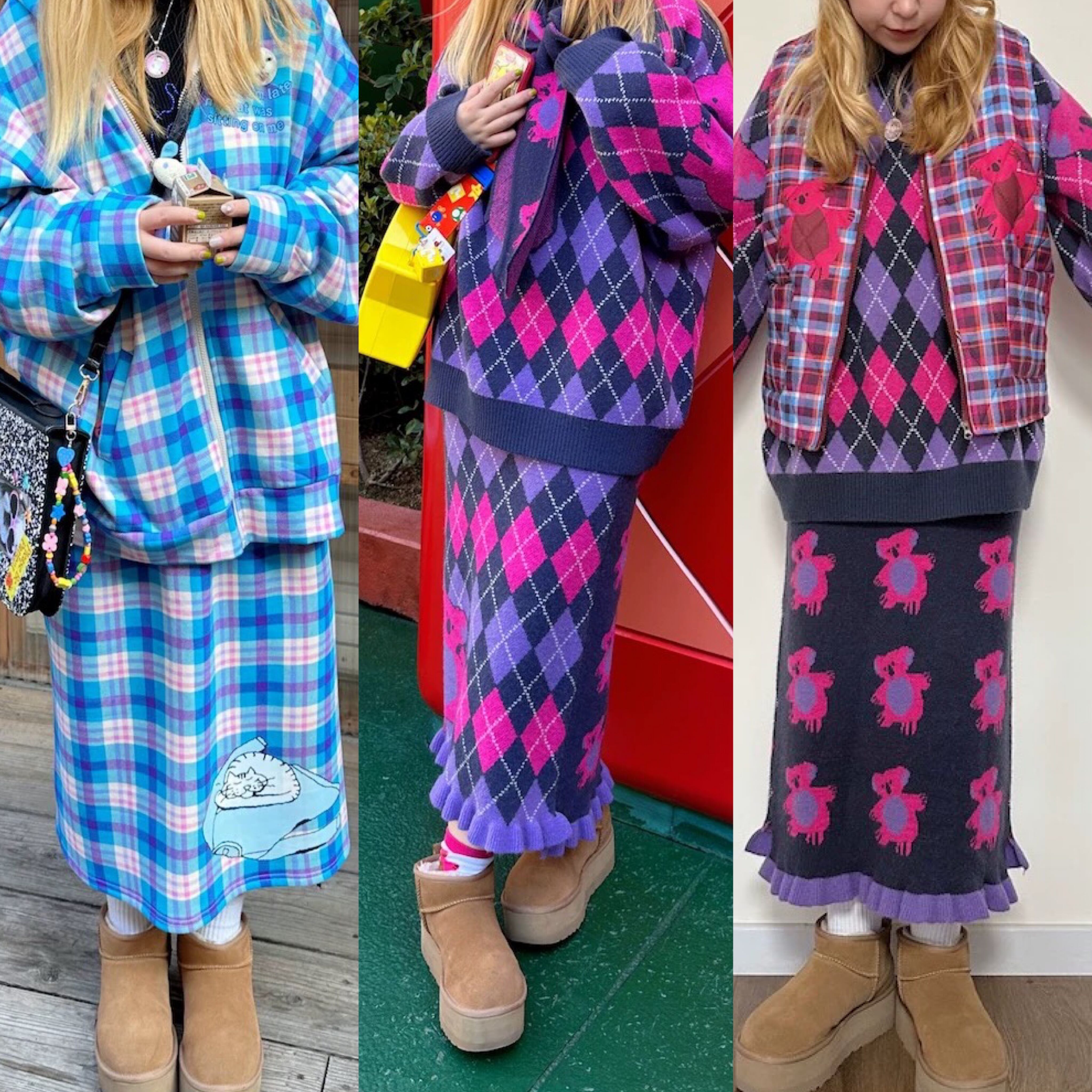 【リバーシブル】紫 チェック 水色 ピンク くま コアラ ボトムス ニット カジュアル スカート