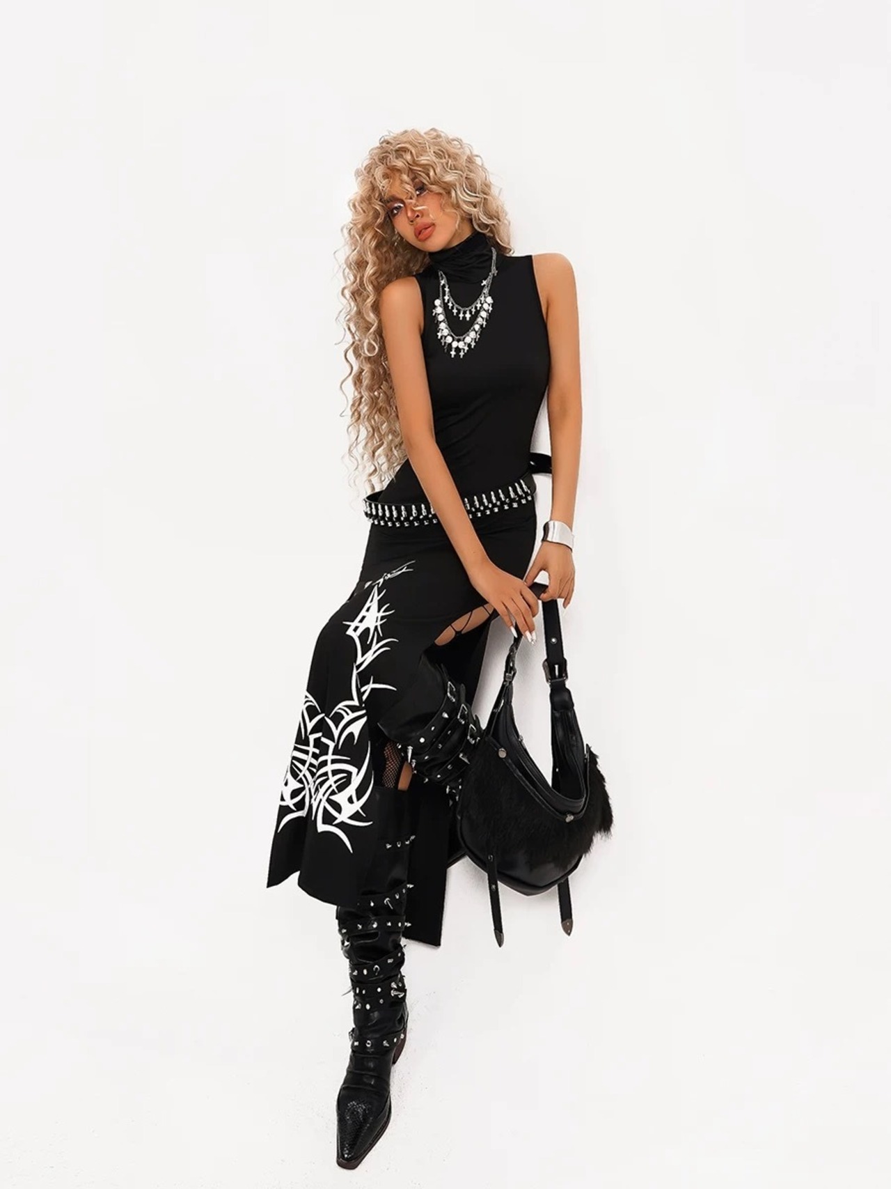 黒 スリット ハイネック セーター スリット ワンピース ストリート セクシー 黒