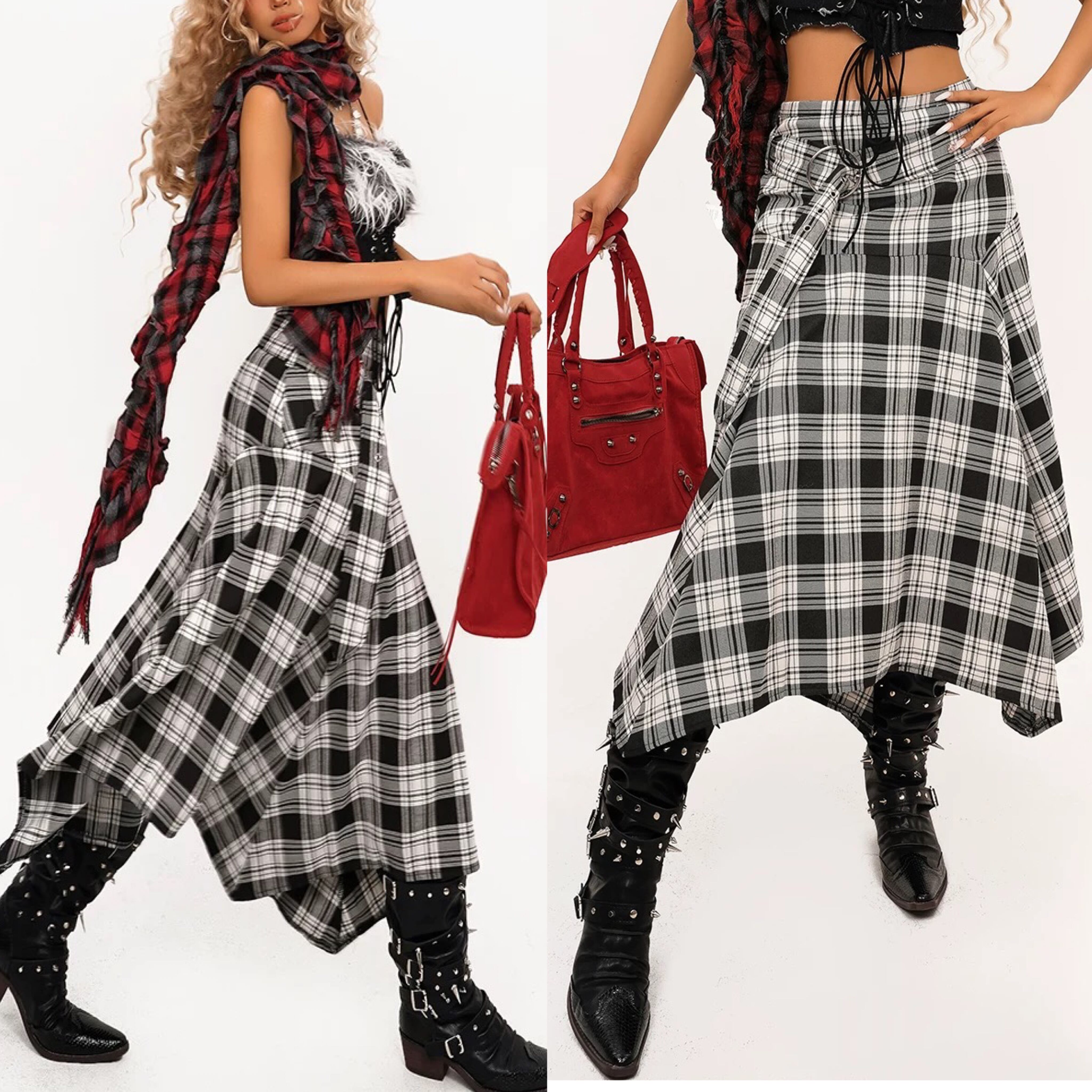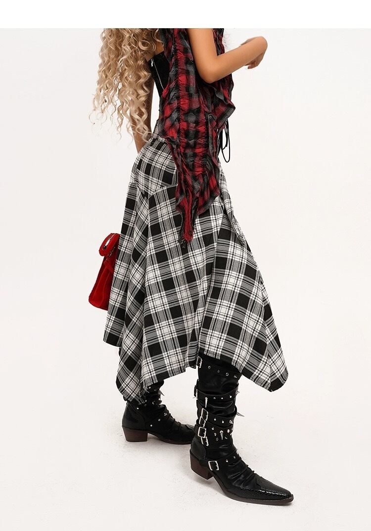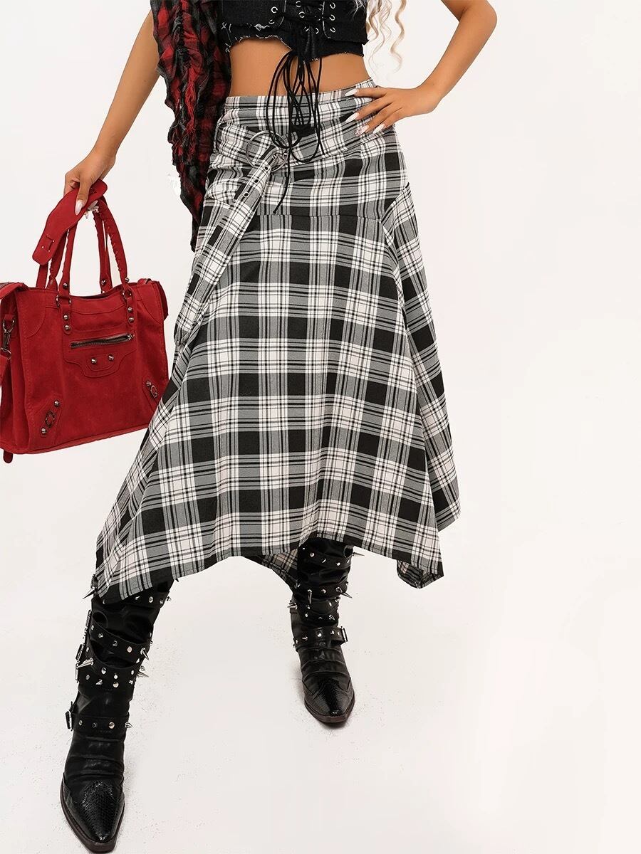 チェック スカート ボトムス 黒 白 カジュアル ネルシャツ スカート ストリート